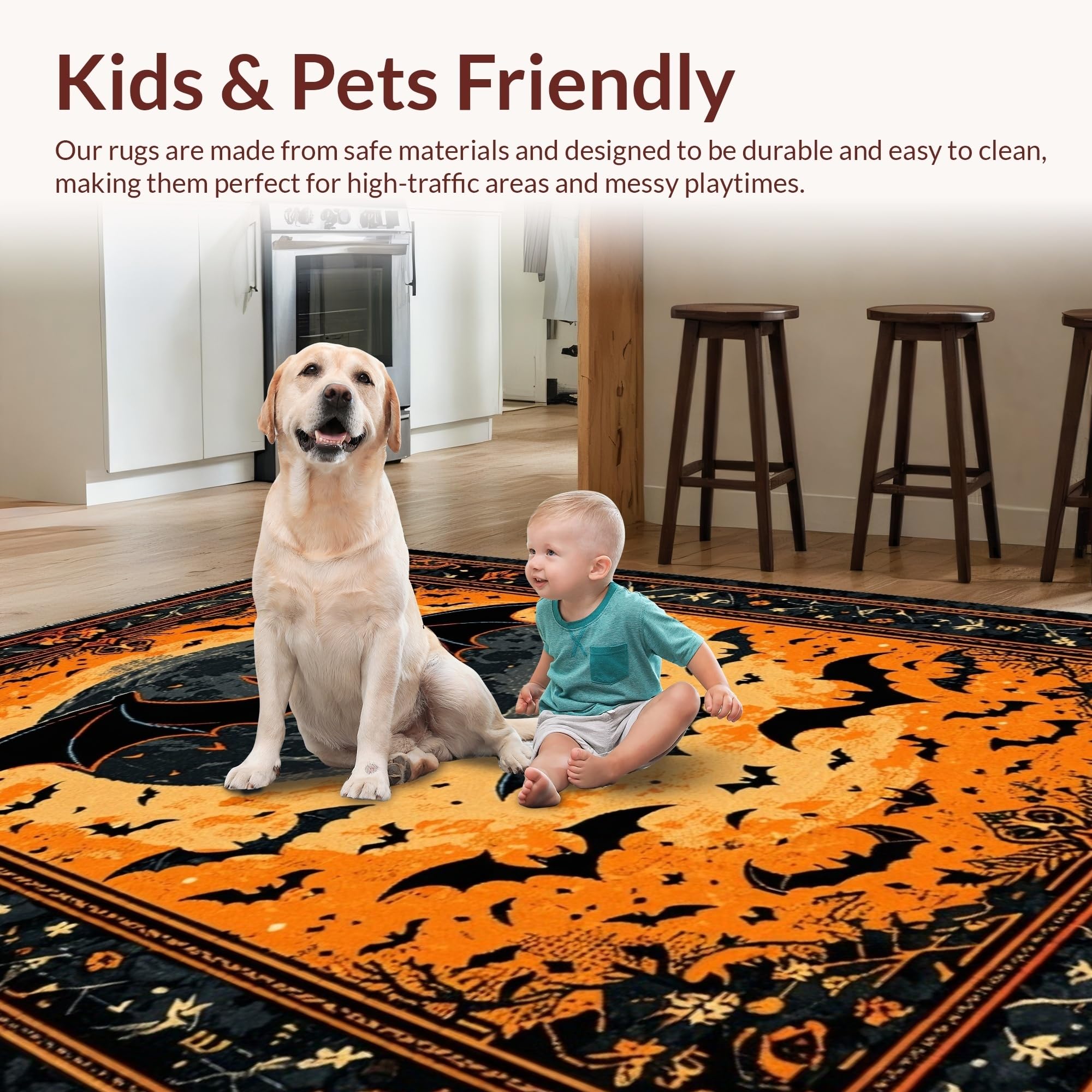 Ultra Soft Area Rug, Non Slip, Stain Resistant, Washable Area Rugs for Living Room, Bedroom, Chic Dark Floral Accent Piece(Black) Overview:
