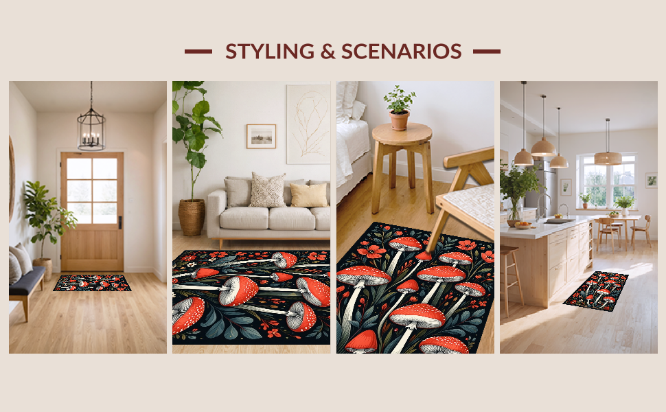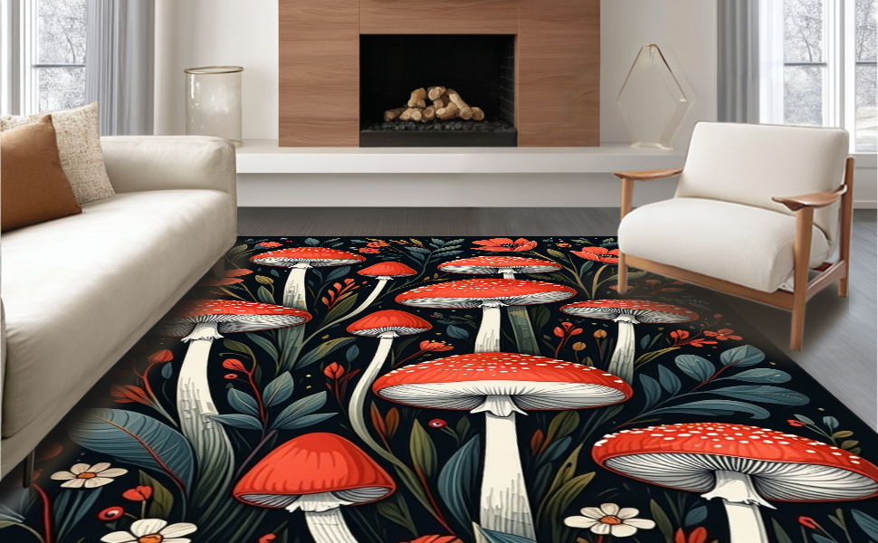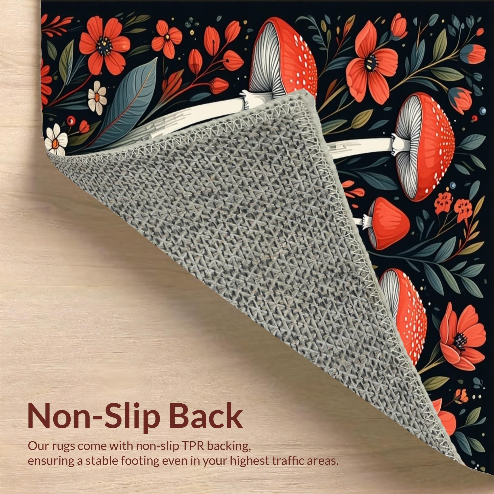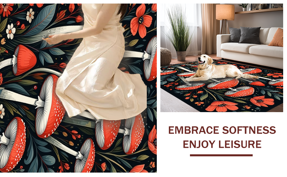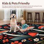 Ultra Soft Area Rug, Non Slip, Stain Resistant, Washable Area Rugs for Living Room, Bedroom, Chic Dark Floral Arrangement(Red) Overview: