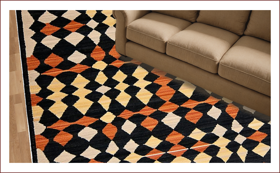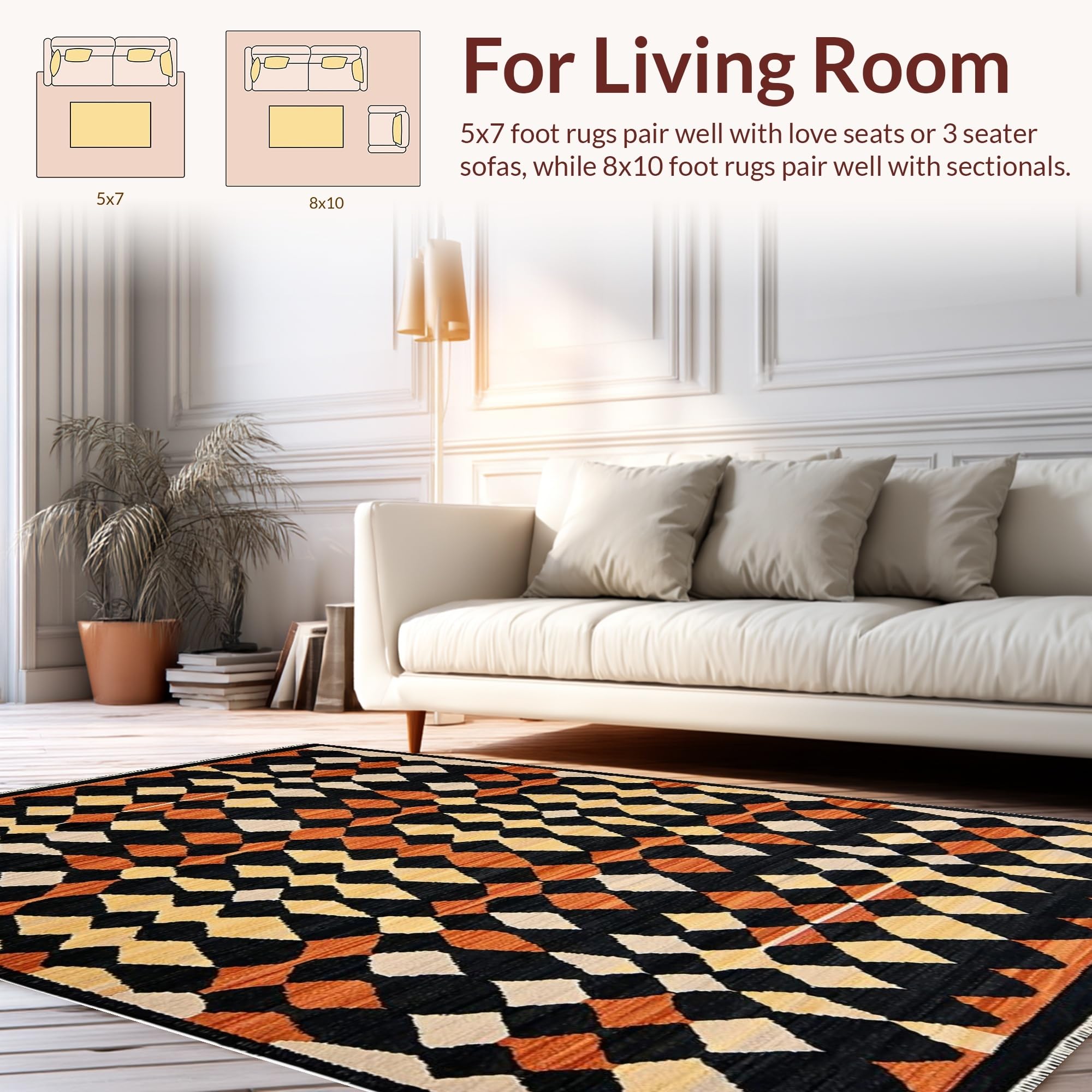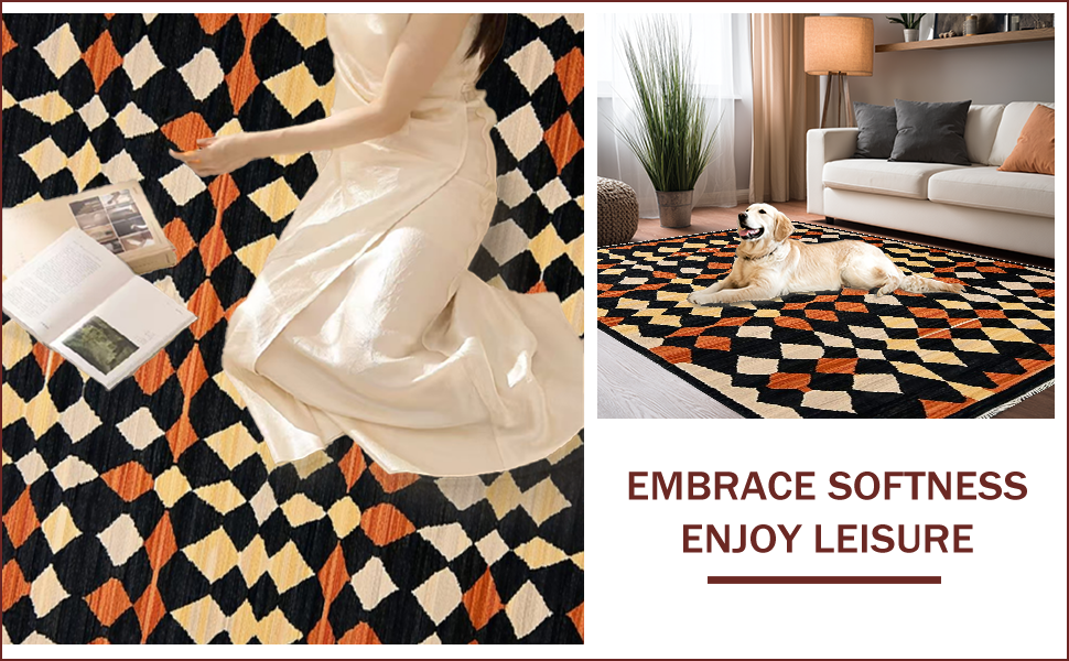 Ultra Soft Area Rug, Non Slip, Stain Resistant, Washable Area Rugs for Living Room, Bedroom, Chic Diamond Geometric Motif(Black) Overview: