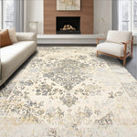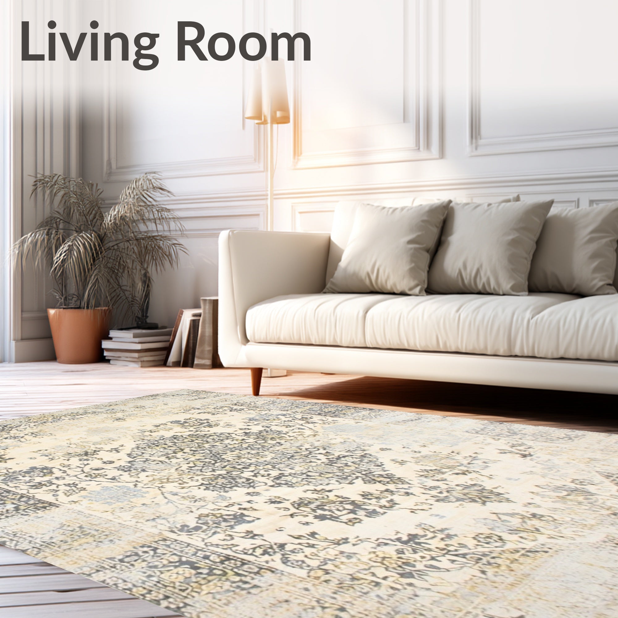 Ultra Soft Area Rug, Non Slip, Stain Resistant, Washable Area Rugs for Living Room, Bedroom, Chic Distressed Area Beige Ivory Shabby Charm Medallion Design(Beige) Overview:
