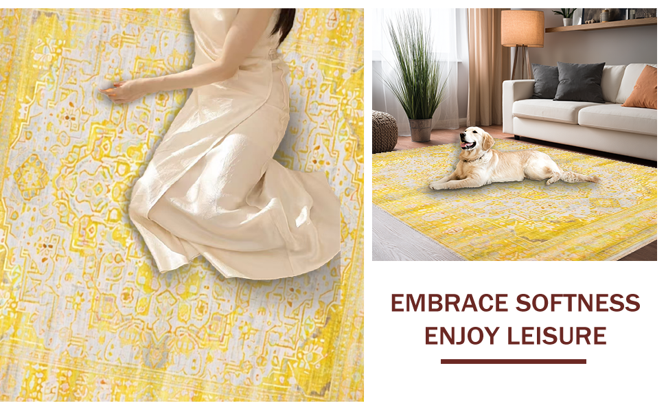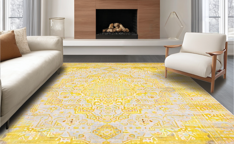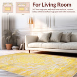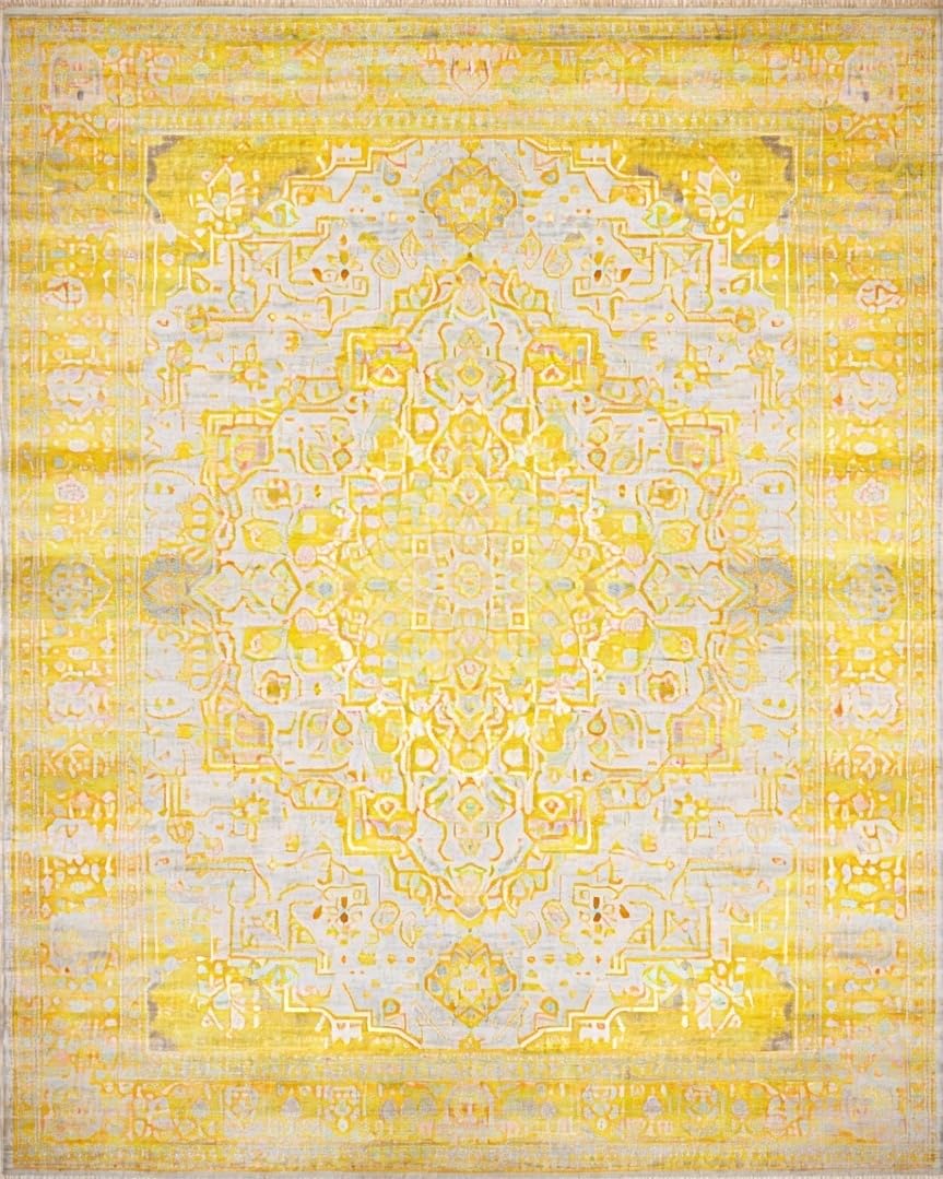 Ultra Soft Area Rug, Non Slip, Stain Resistant, Washable Area Rugs for Living Room, Bedroom, Chic Distressed Medallion Motif(Yellow) Overview: