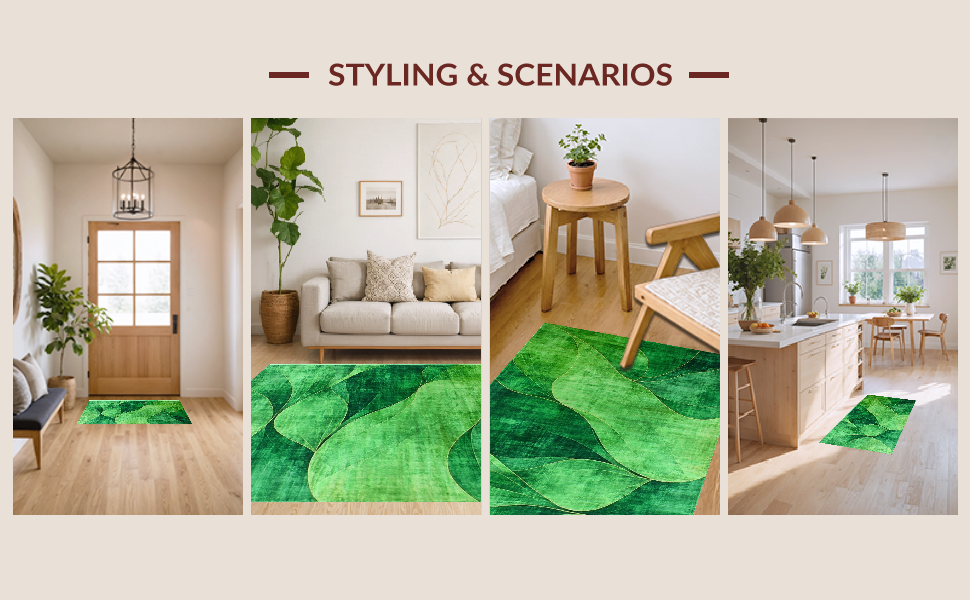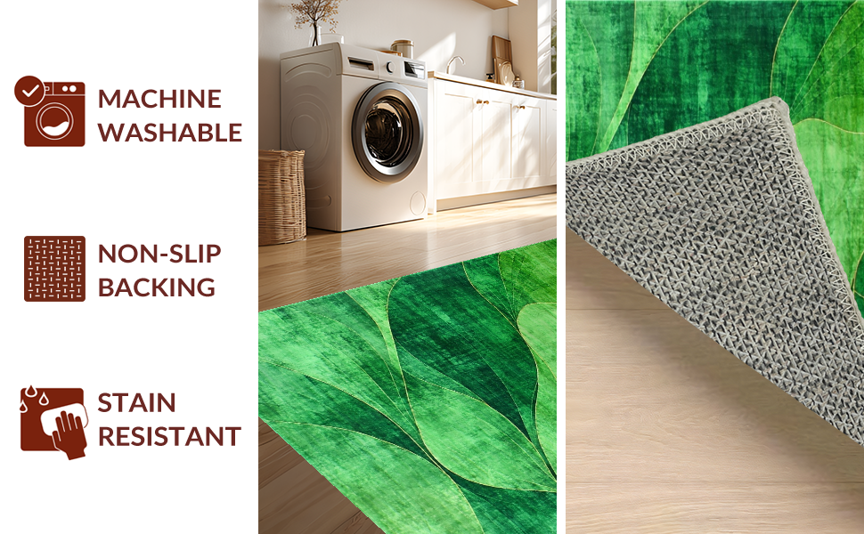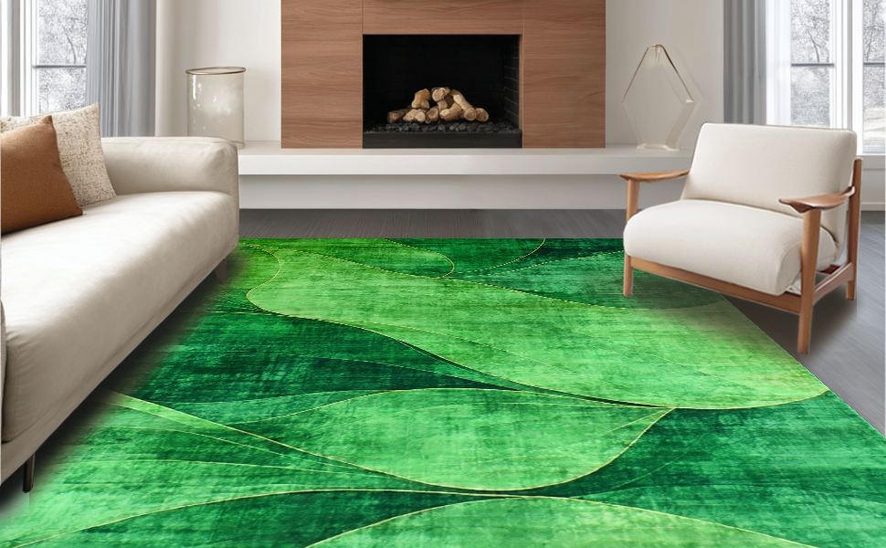 Ultra Soft Area Rug, Non Slip, Stain Resistant, Washable Area Rugs for Living Room, Bedroom, Chic Distressed Modern Color Wash(Green) Overview:
