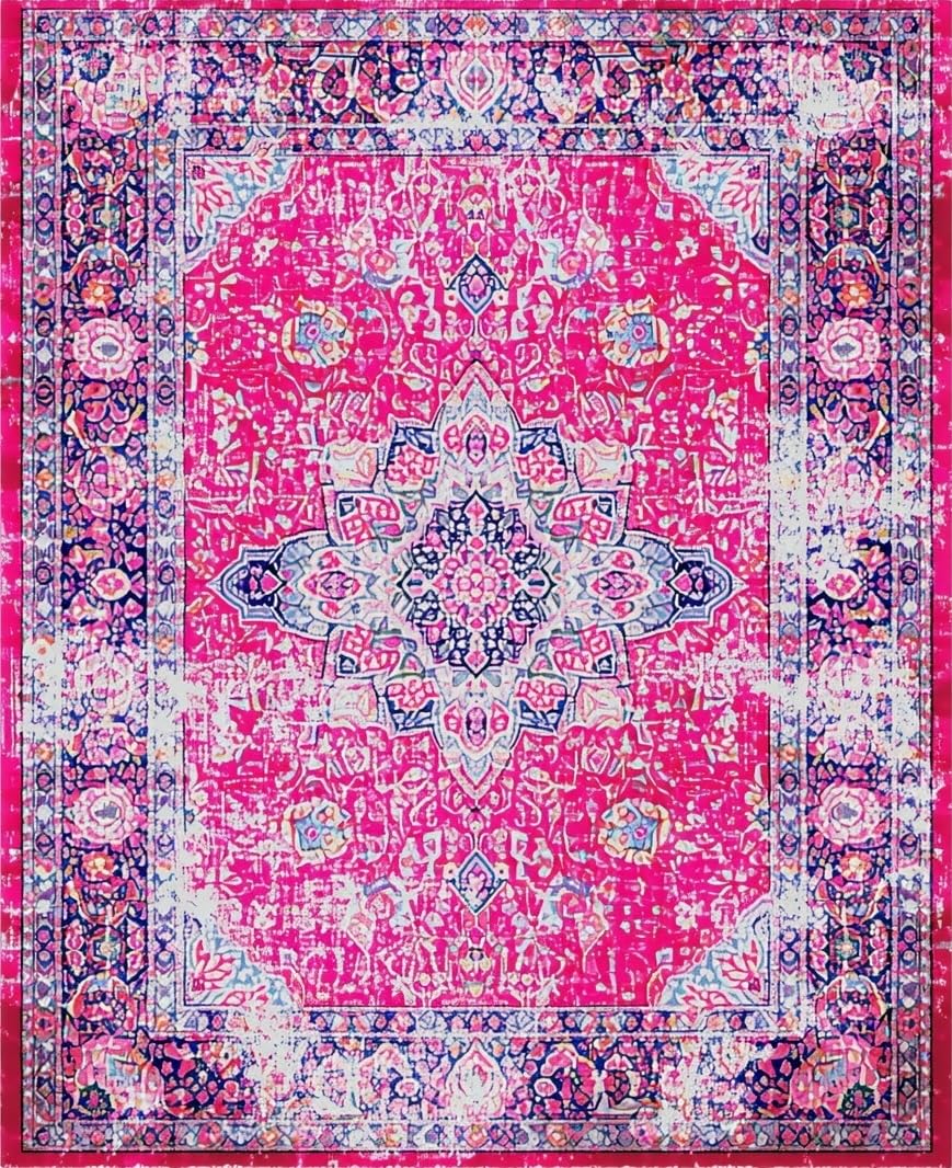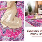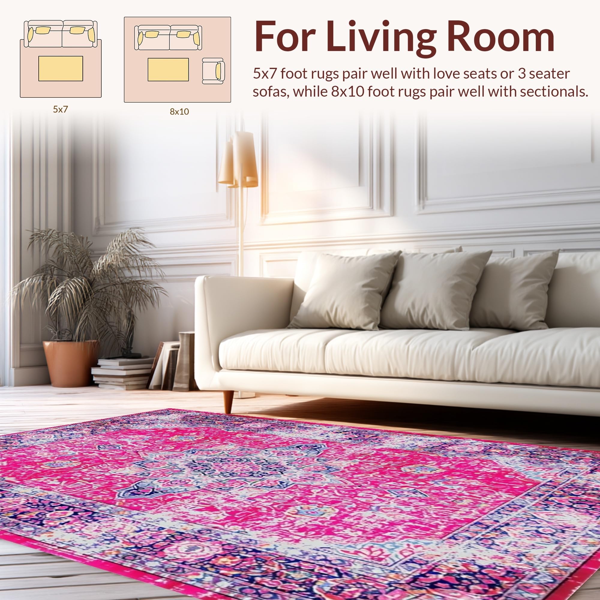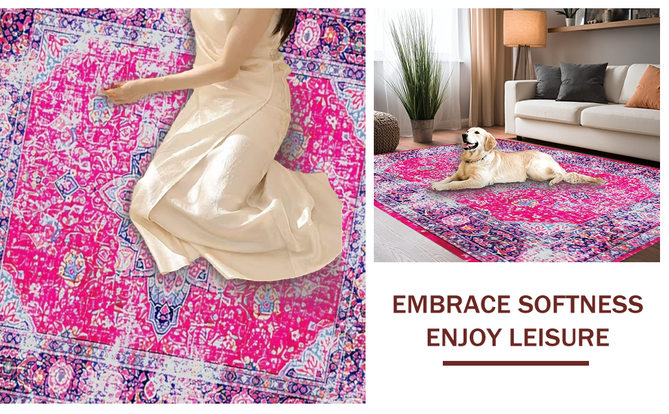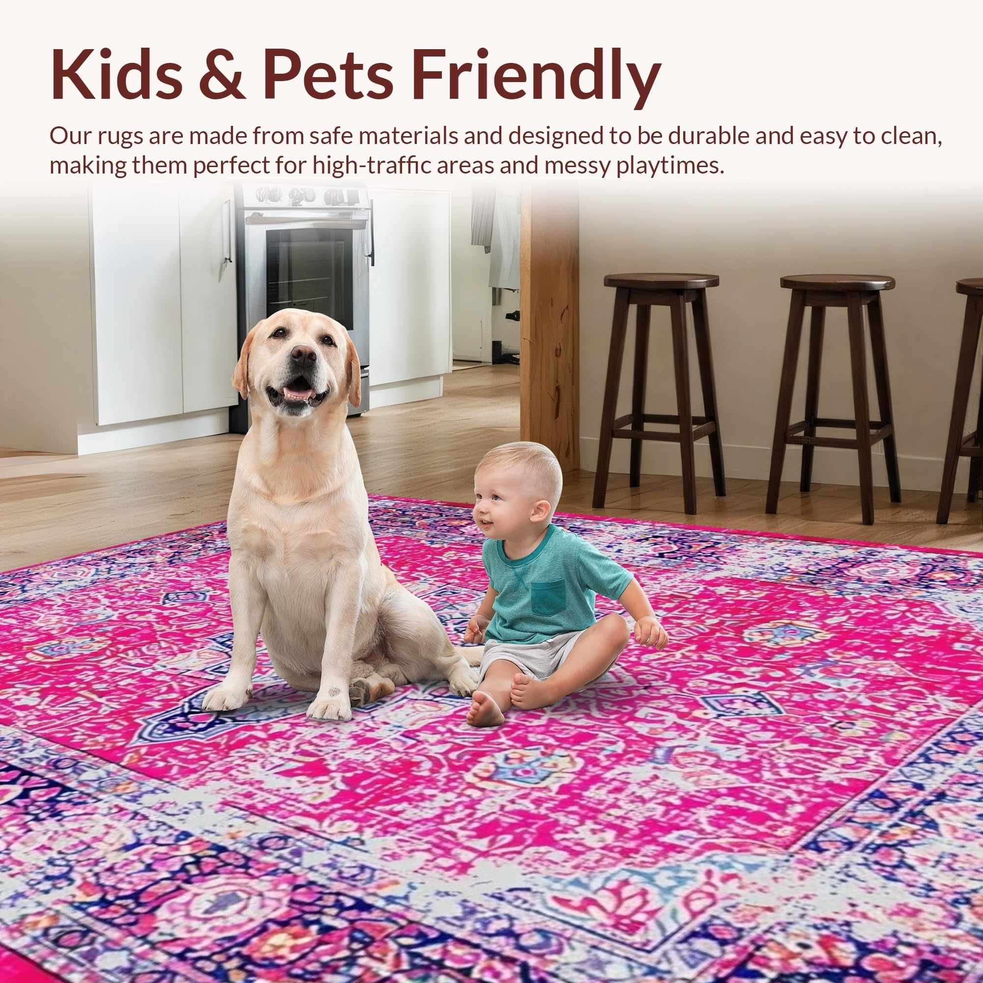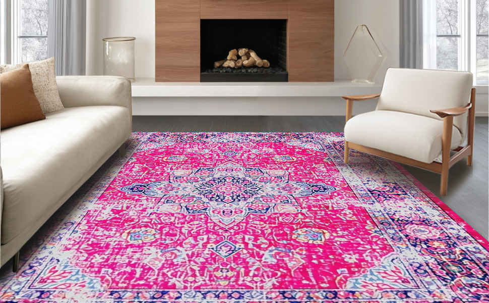 Ultra Soft Area Rug, Non Slip, Stain Resistant, Washable Area Rugs for Living Room, Bedroom, Chic Distressed Ogee Aesthetic(Pink) Overview: