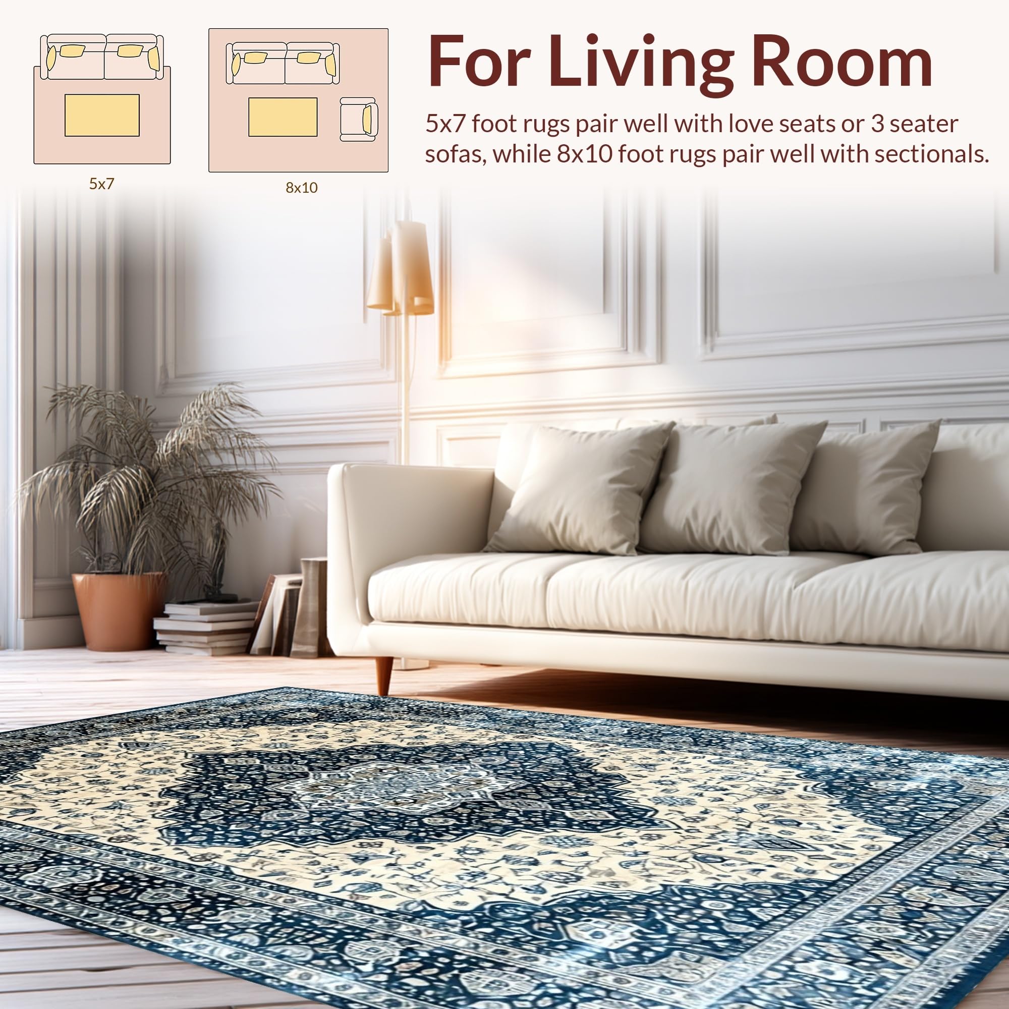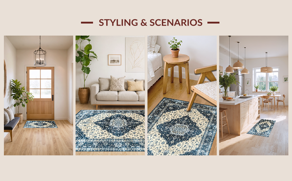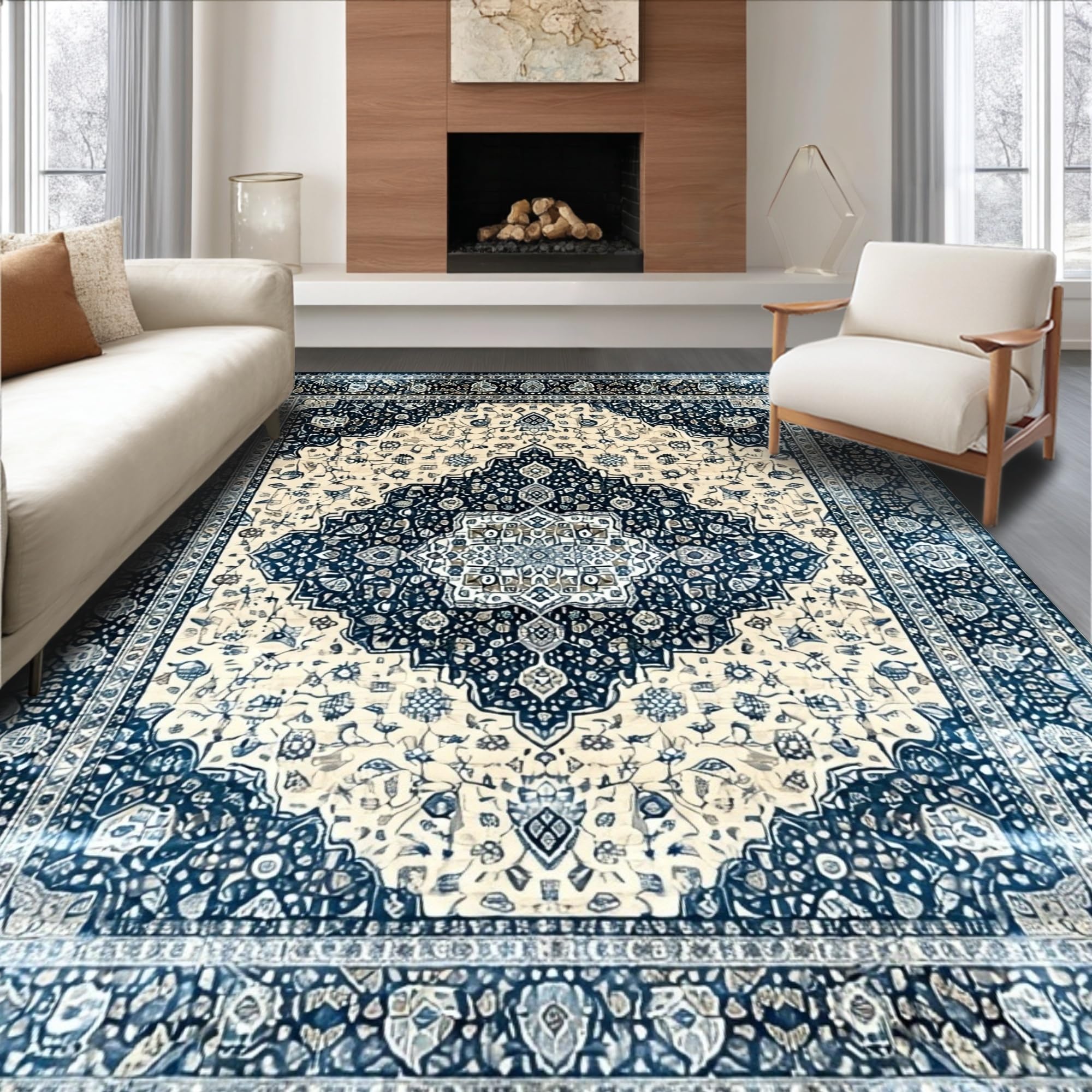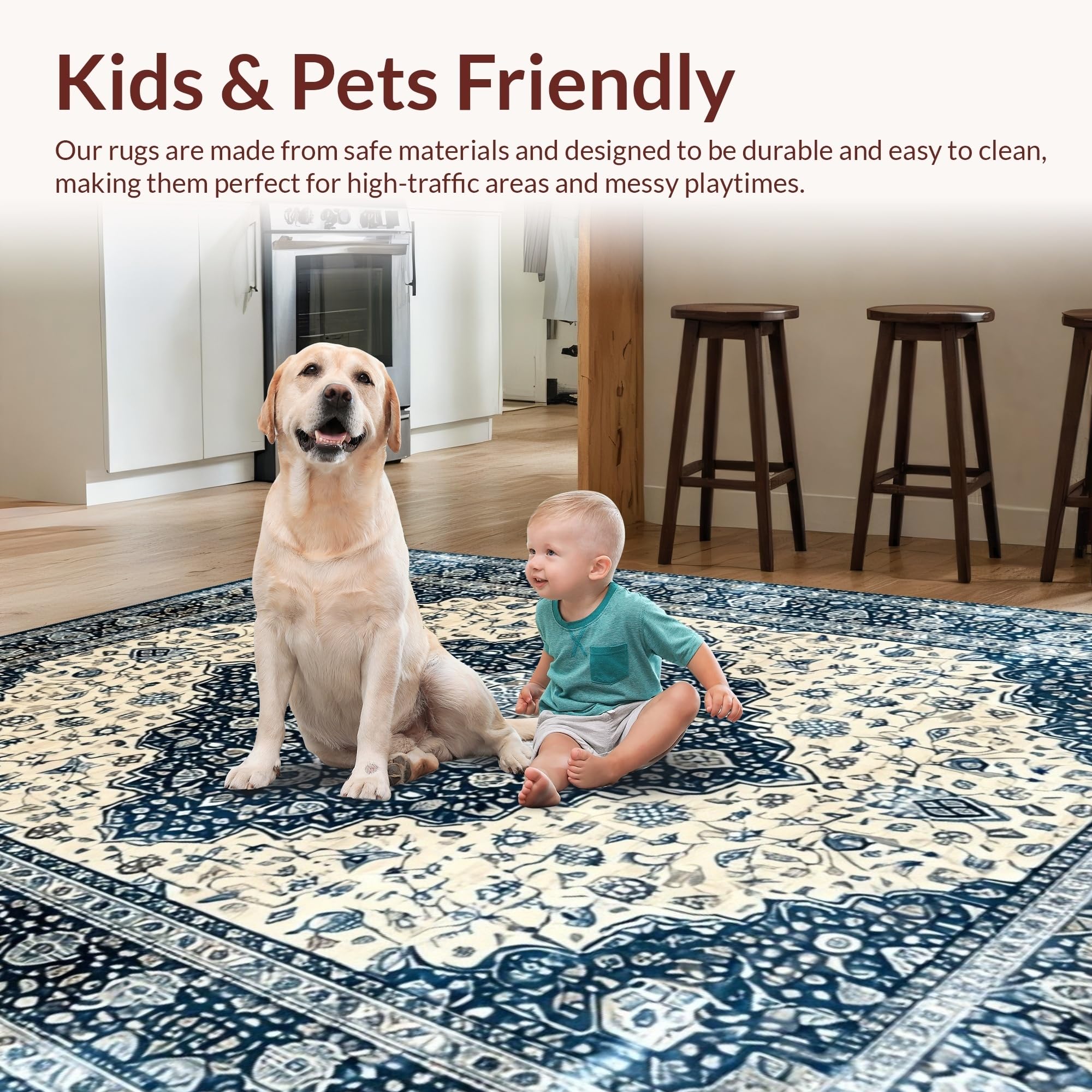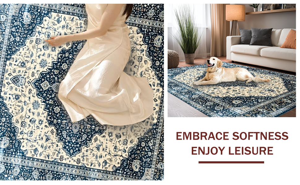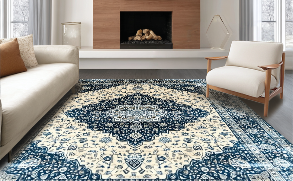 Ultra Soft Area Rug, Non Slip, Stain Resistant, Washable Area Rugs for Living Room, Bedroom, Chic Distressed Textured Pattern(Ivory) Overview: