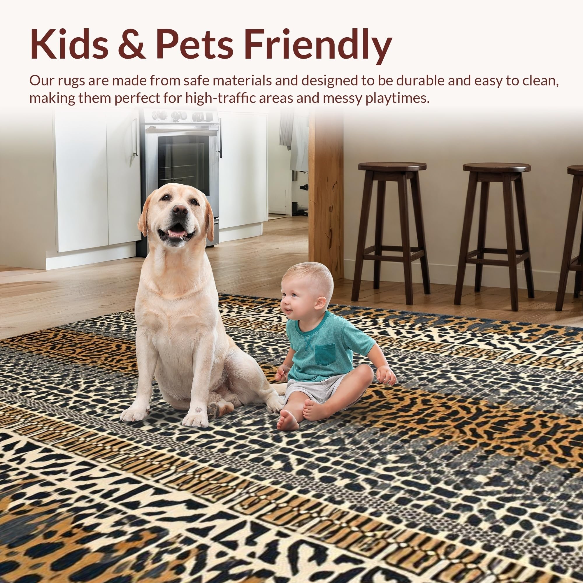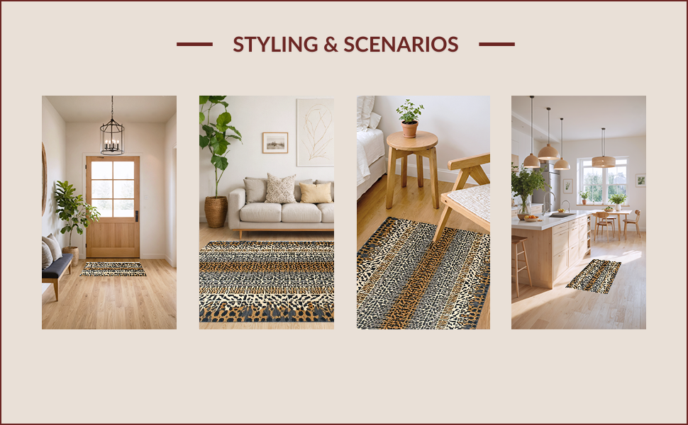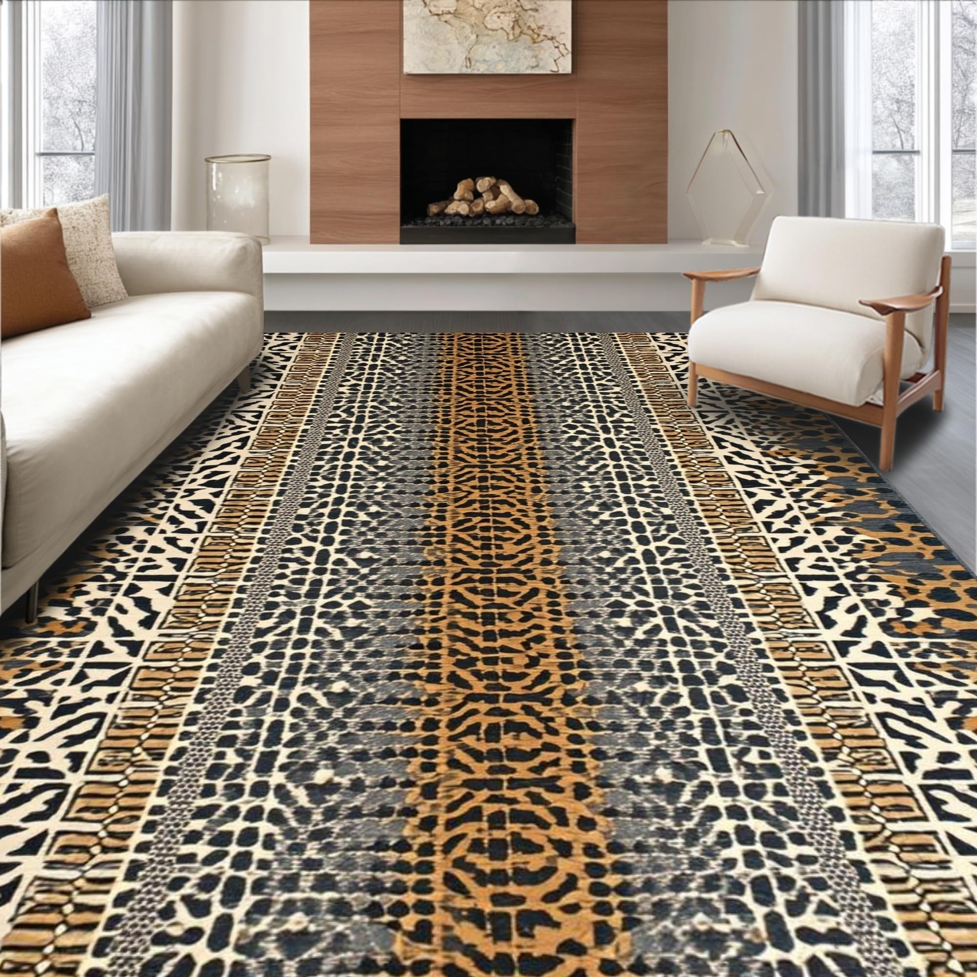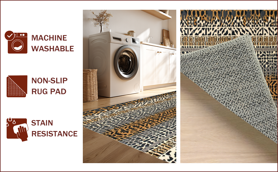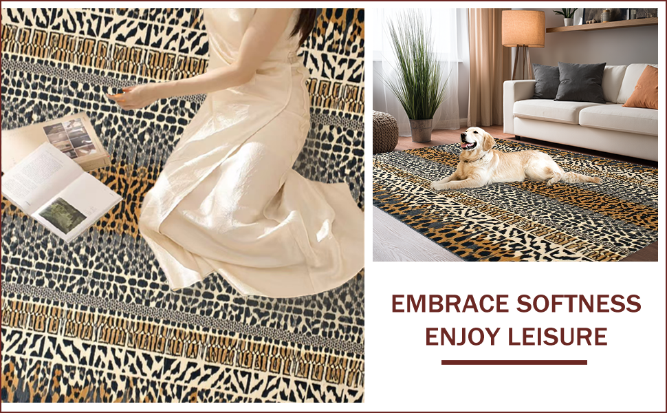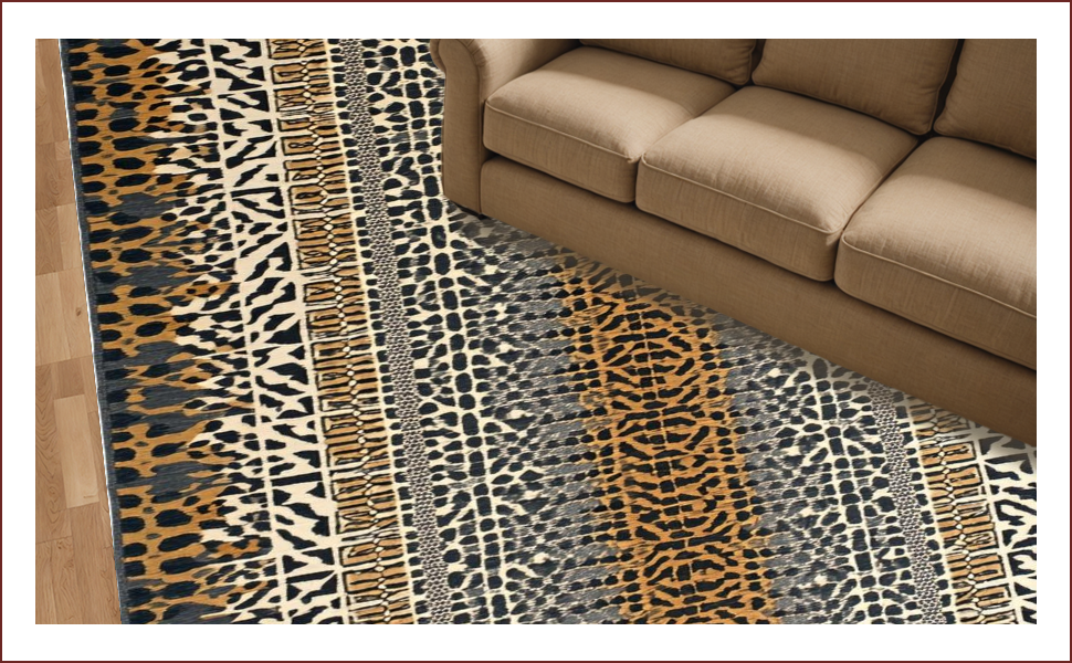 Ultra Soft Area Rug, Non Slip, Stain Resistant, Washable Area Rugs for Living Room, Bedroom, Chic Earthy Animal Motif(Brown) Overview: