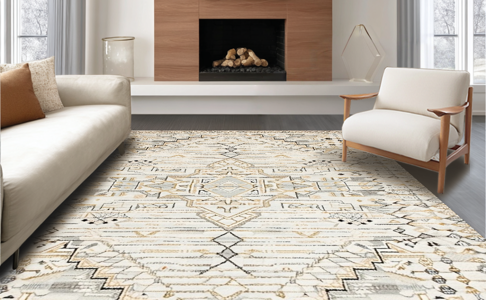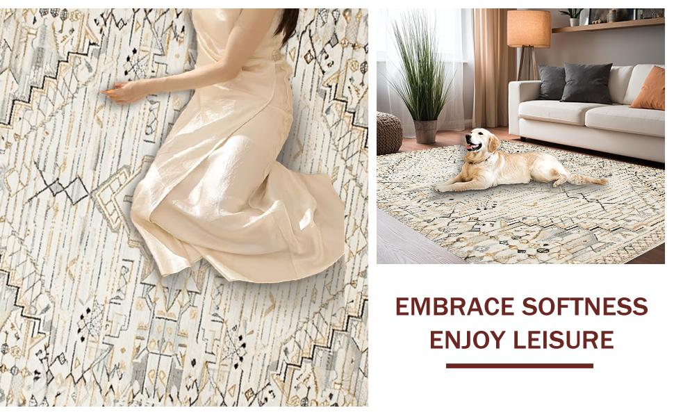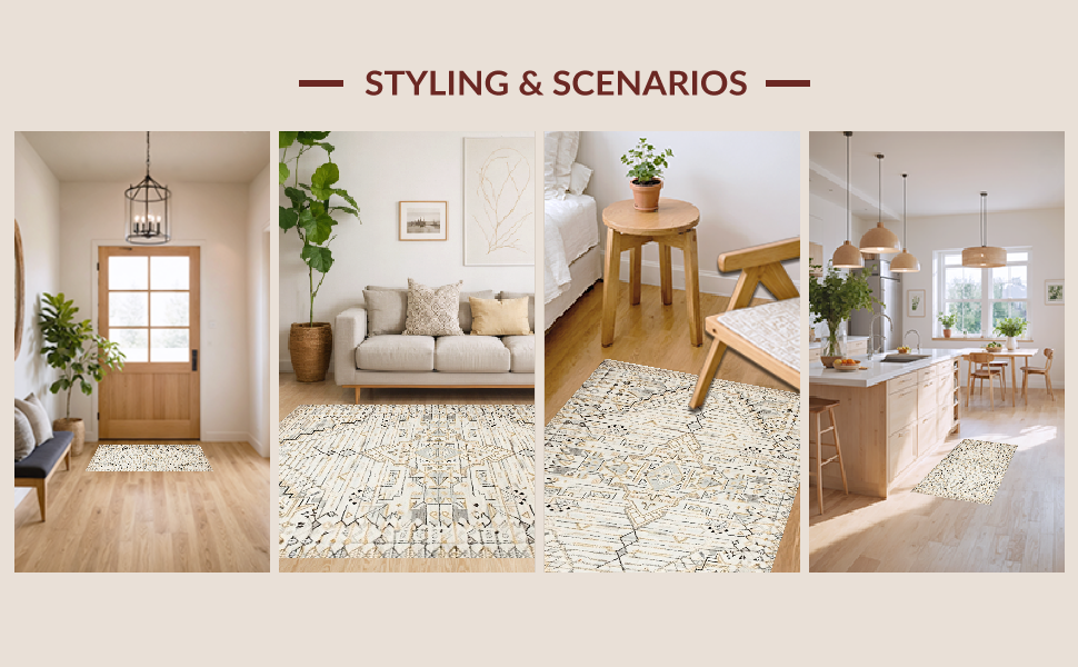 Ultra Soft Area Rug, Non Slip, Stain Resistant, Washable Area Rugs for Living Room, Bedroom, Chic Earthy Braided Texture(Beige) Overview: