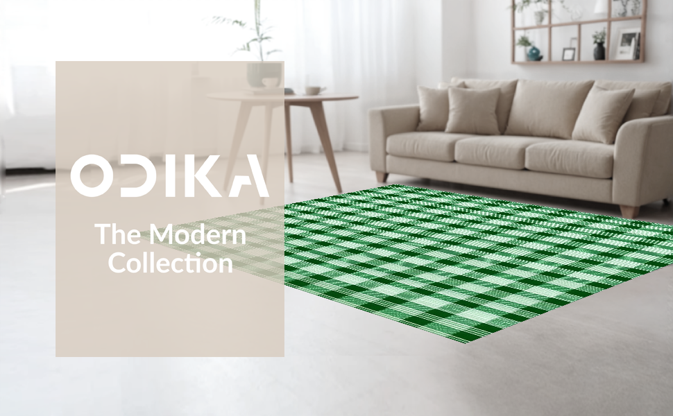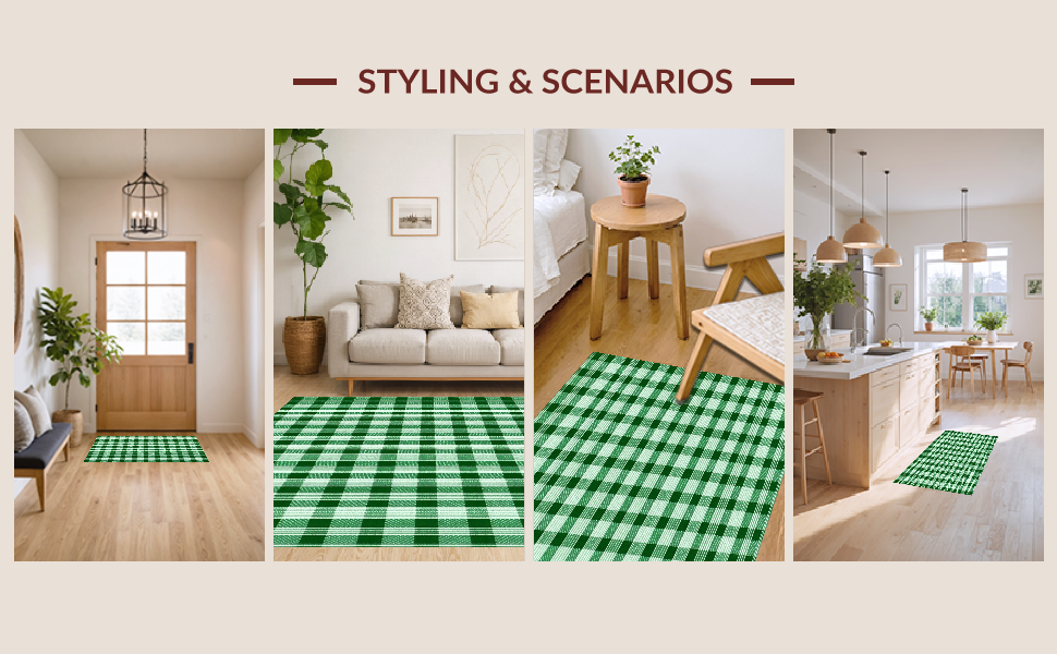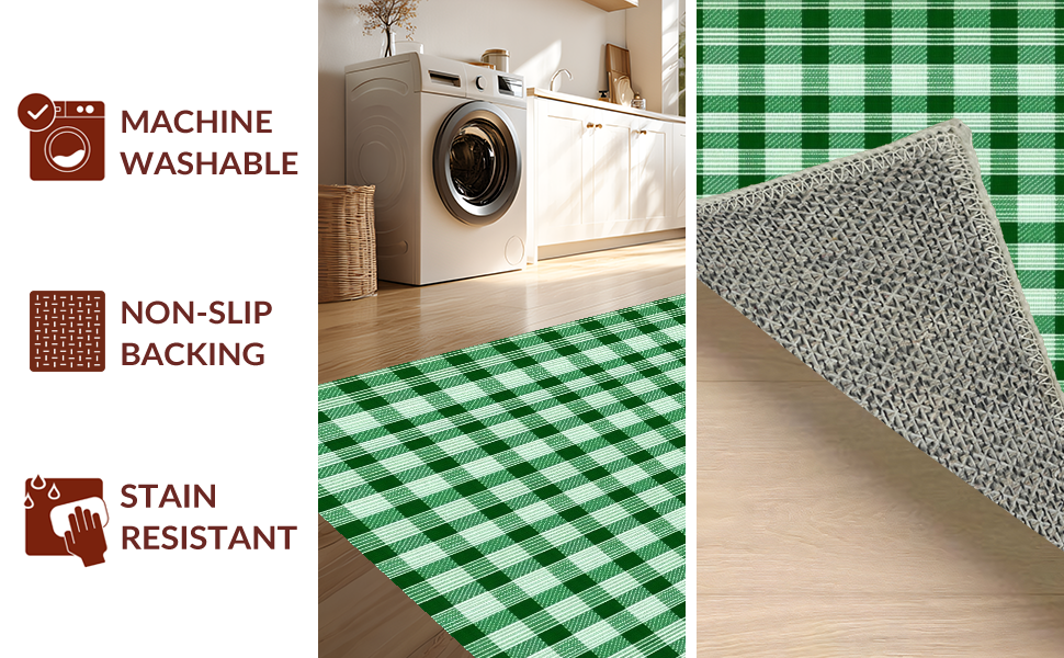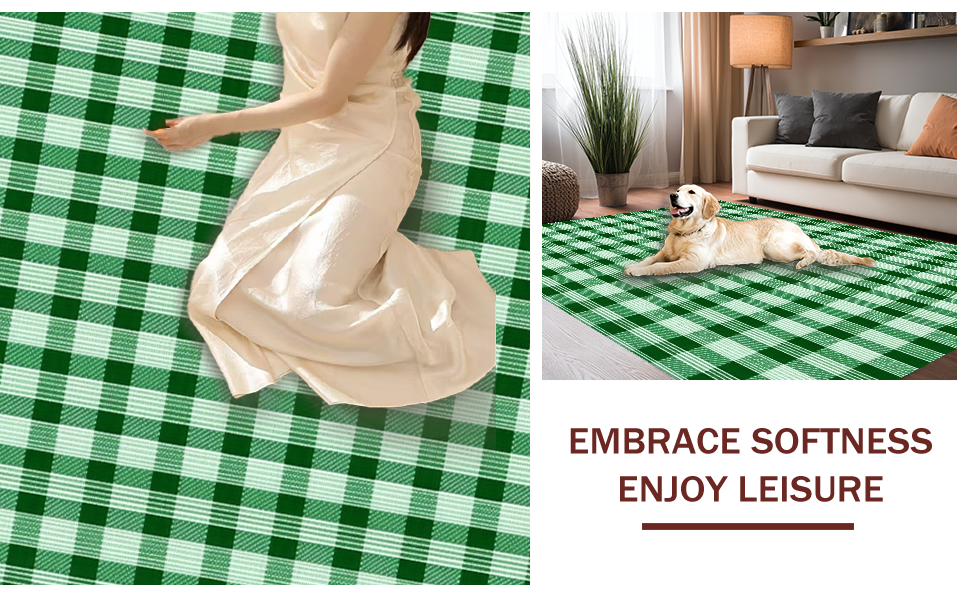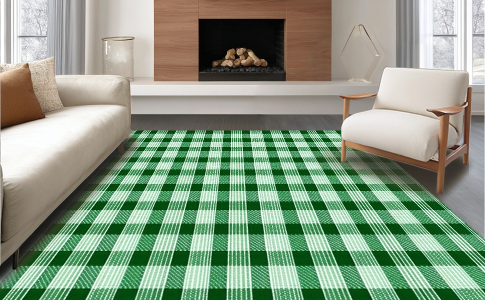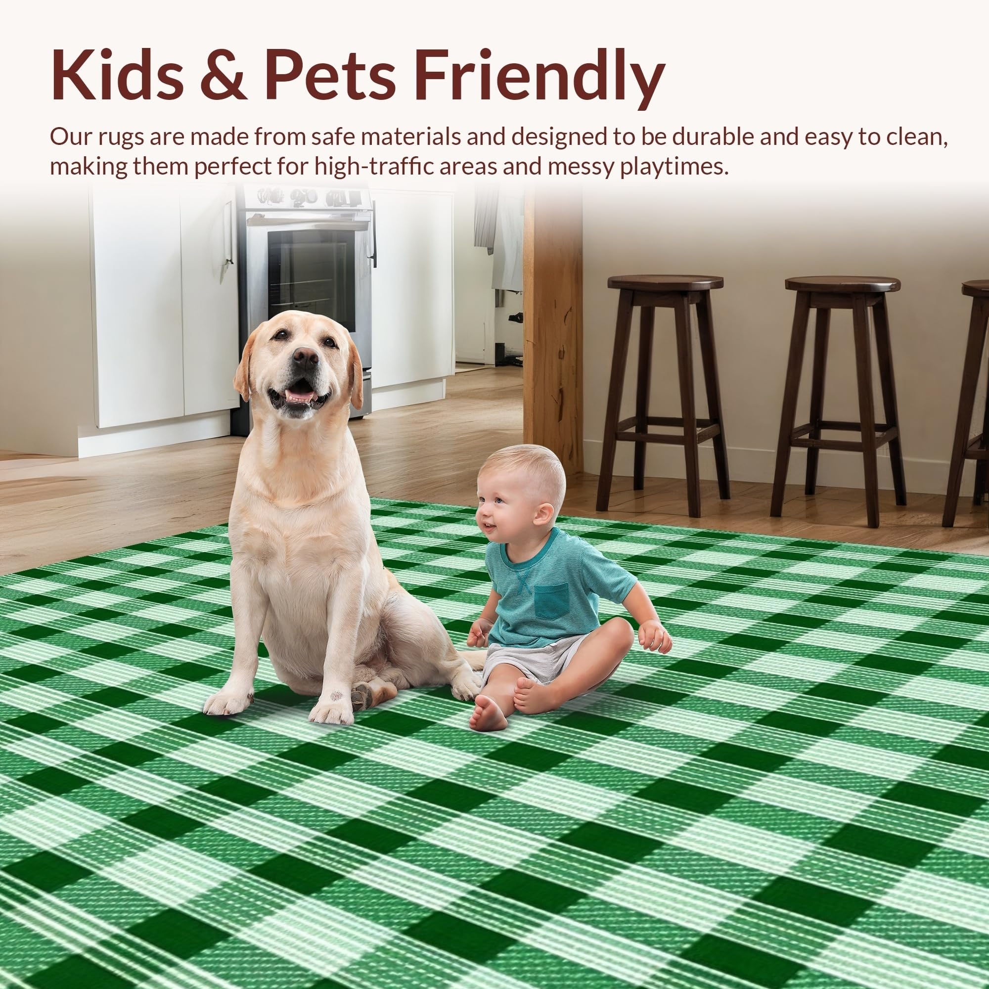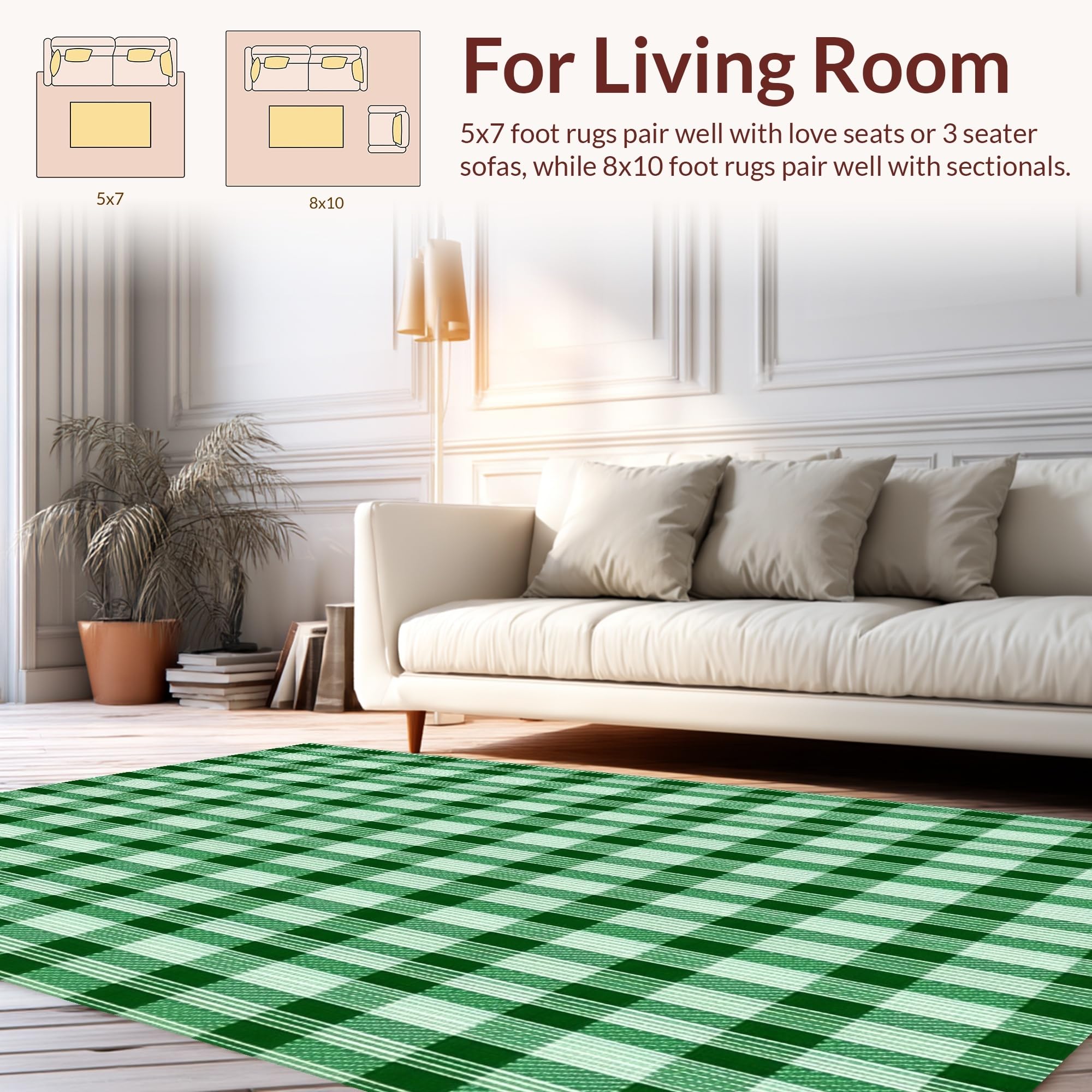 Ultra Soft Area Rug, Non Slip, Stain Resistant, Washable Area Rugs for Living Room, Bedroom, Chic Earthy Checkered Textures(Green) Overview: