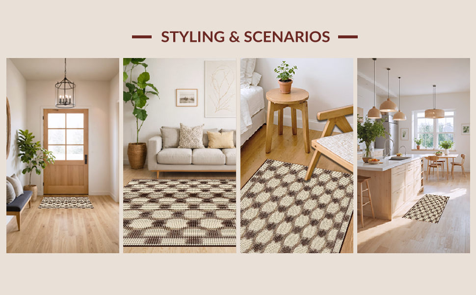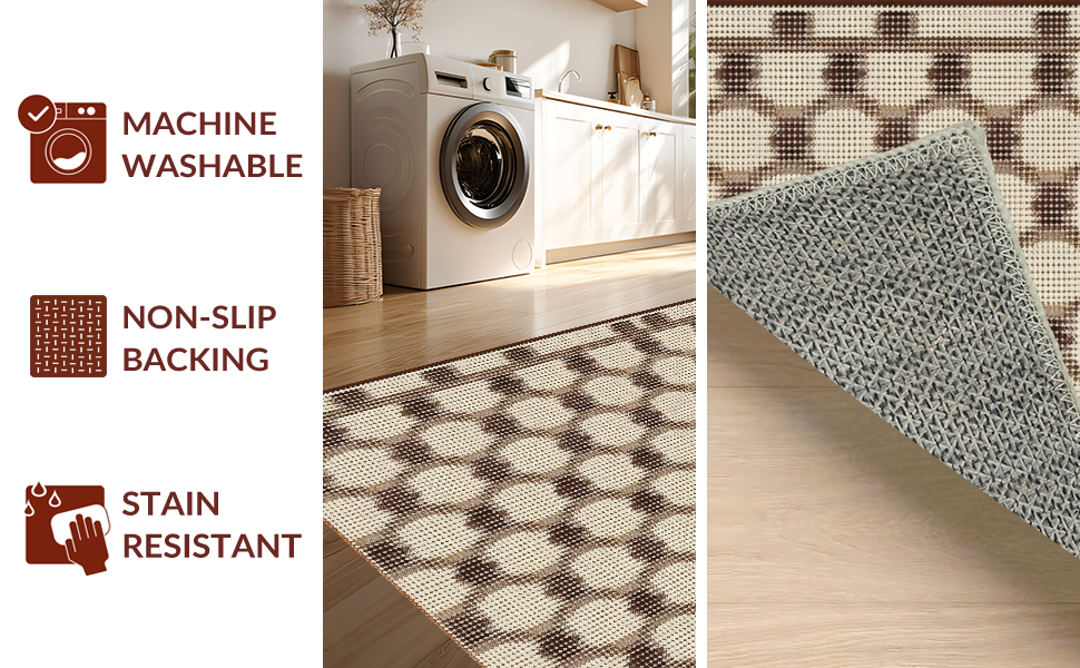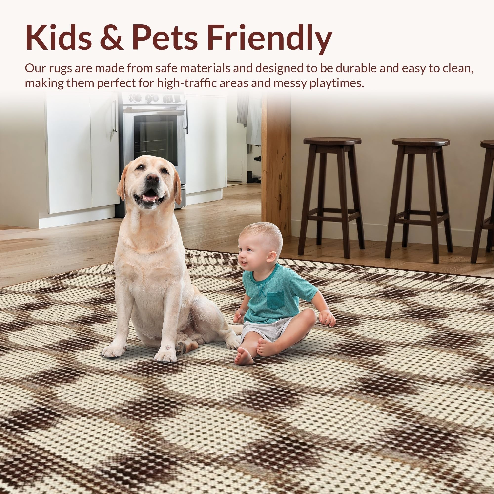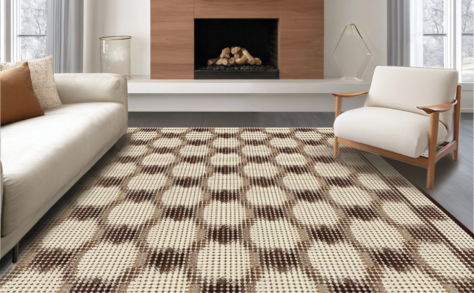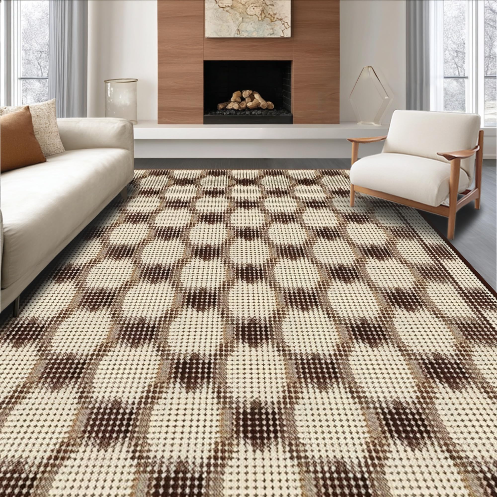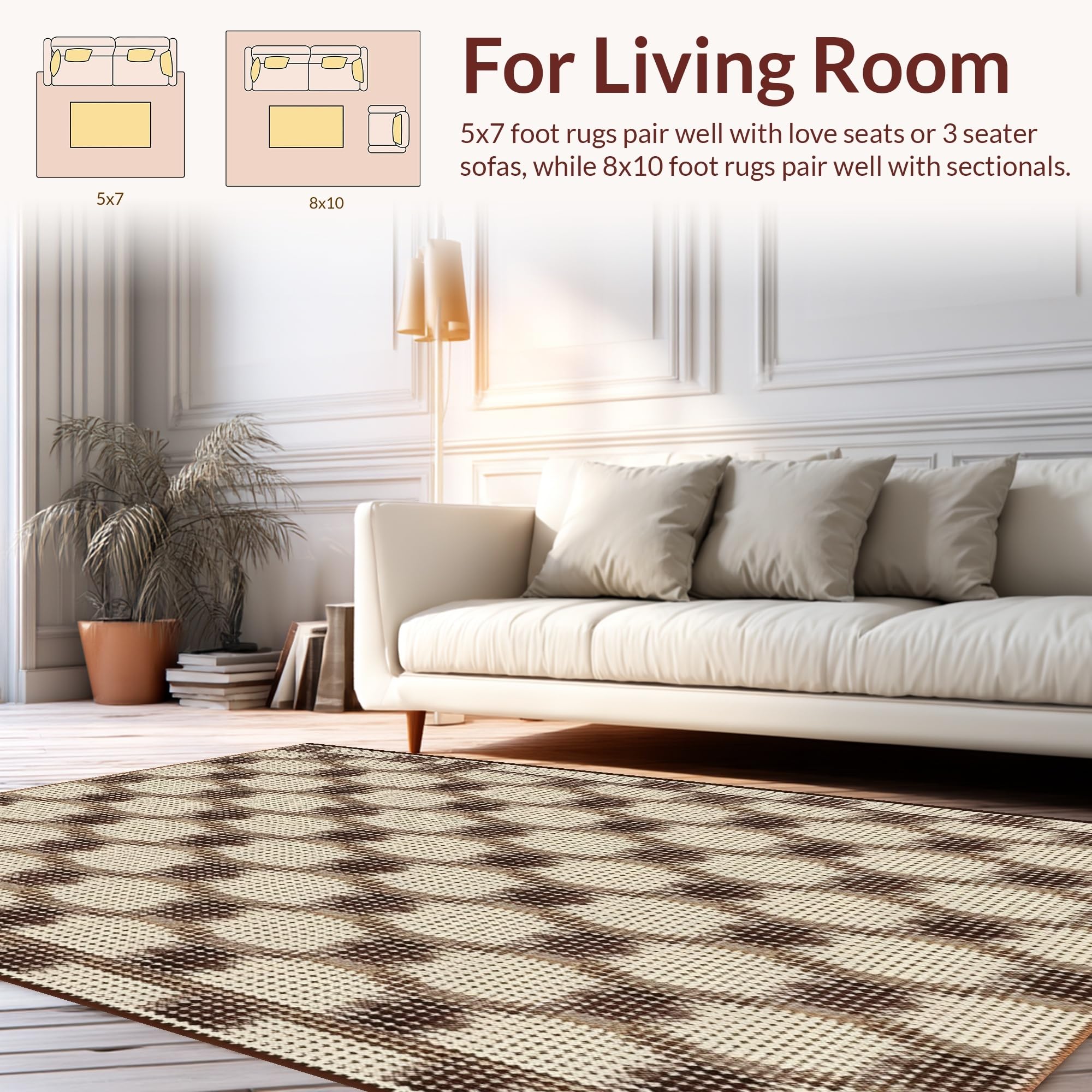Ultra Soft Area Rug, Non Slip, Stain Resistant, Washable Area Rugs for Living Room, Bedroom, Chic Earthy Diamond Motif(Beige) Overview: