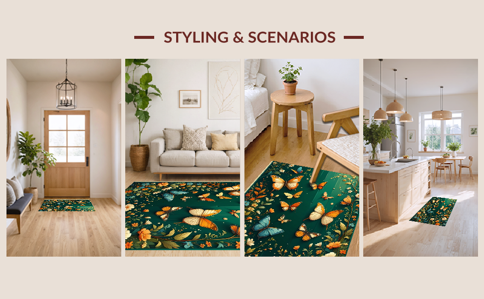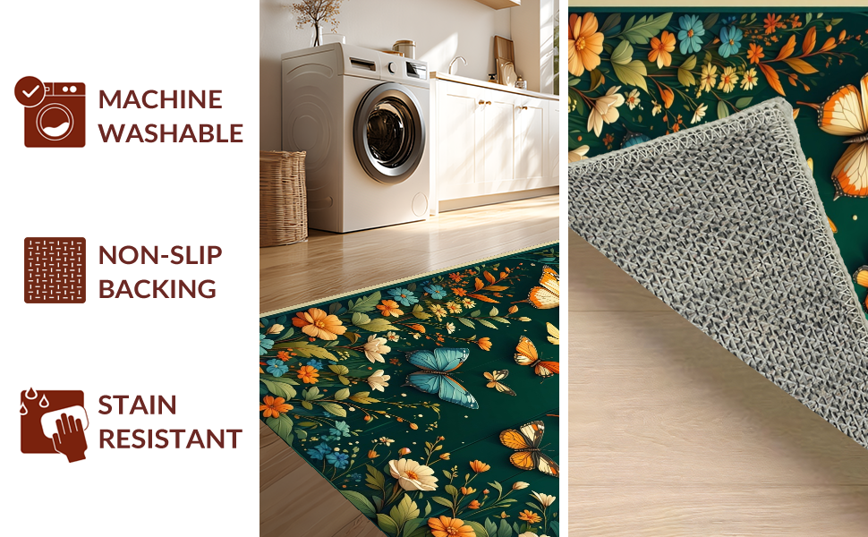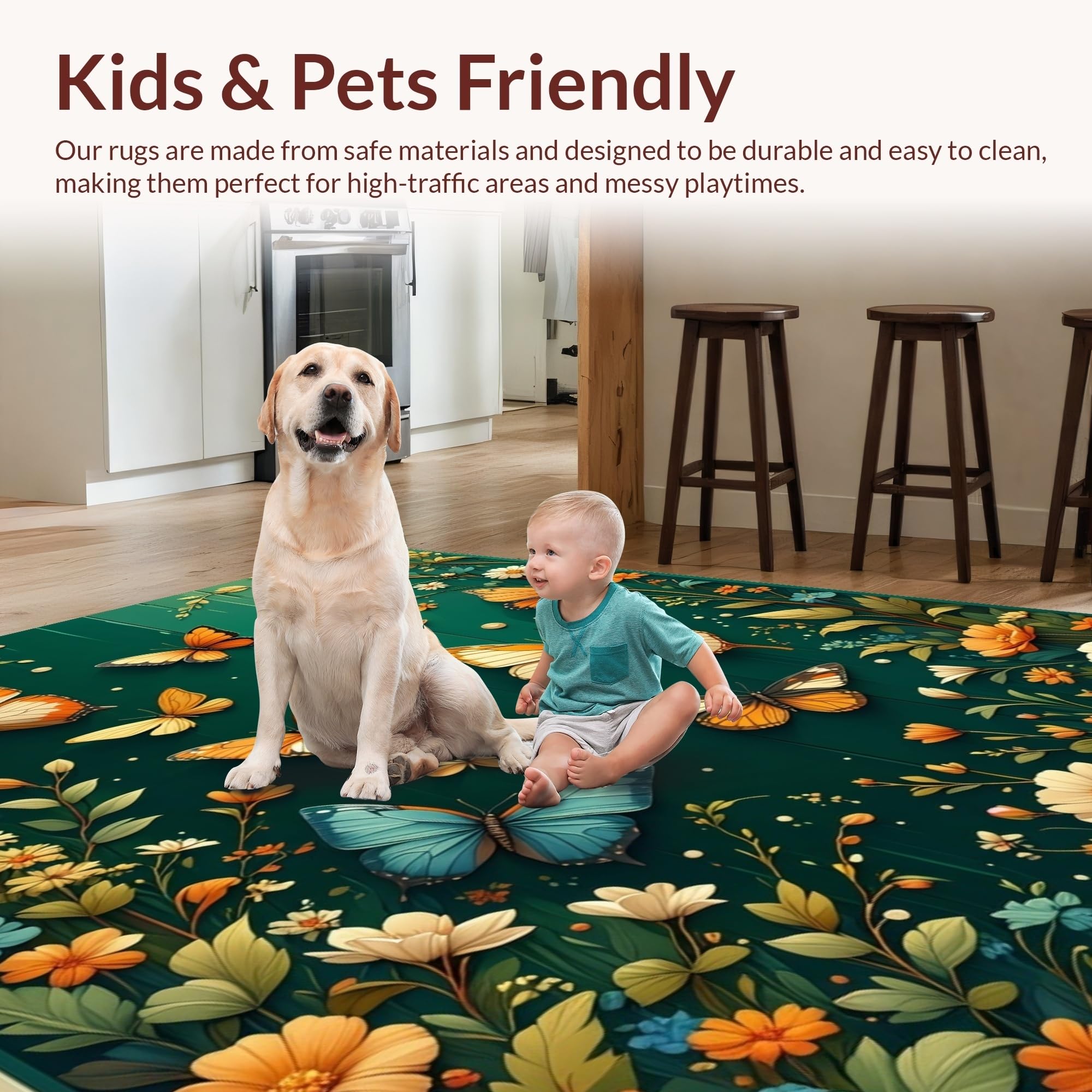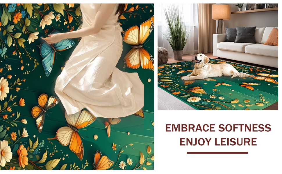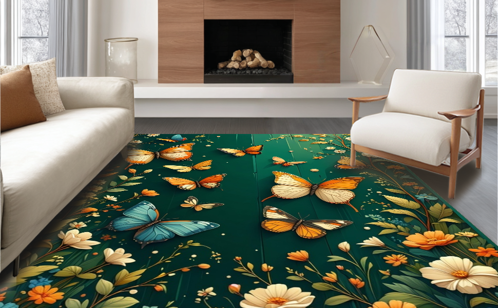 Ultra Soft Area Rug, Non Slip, Stain Resistant, Washable Area Rugs for Living Room, Bedroom, Chic Earthy Flora Inspiration(Green) Overview: