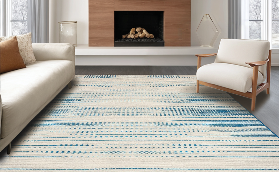 Ultra Soft Area Rug, Non Slip, Stain Resistant, Washable Area Rugs for Living Room, Bedroom, Chic Earthy Geometric Layering(Beige) Overview: