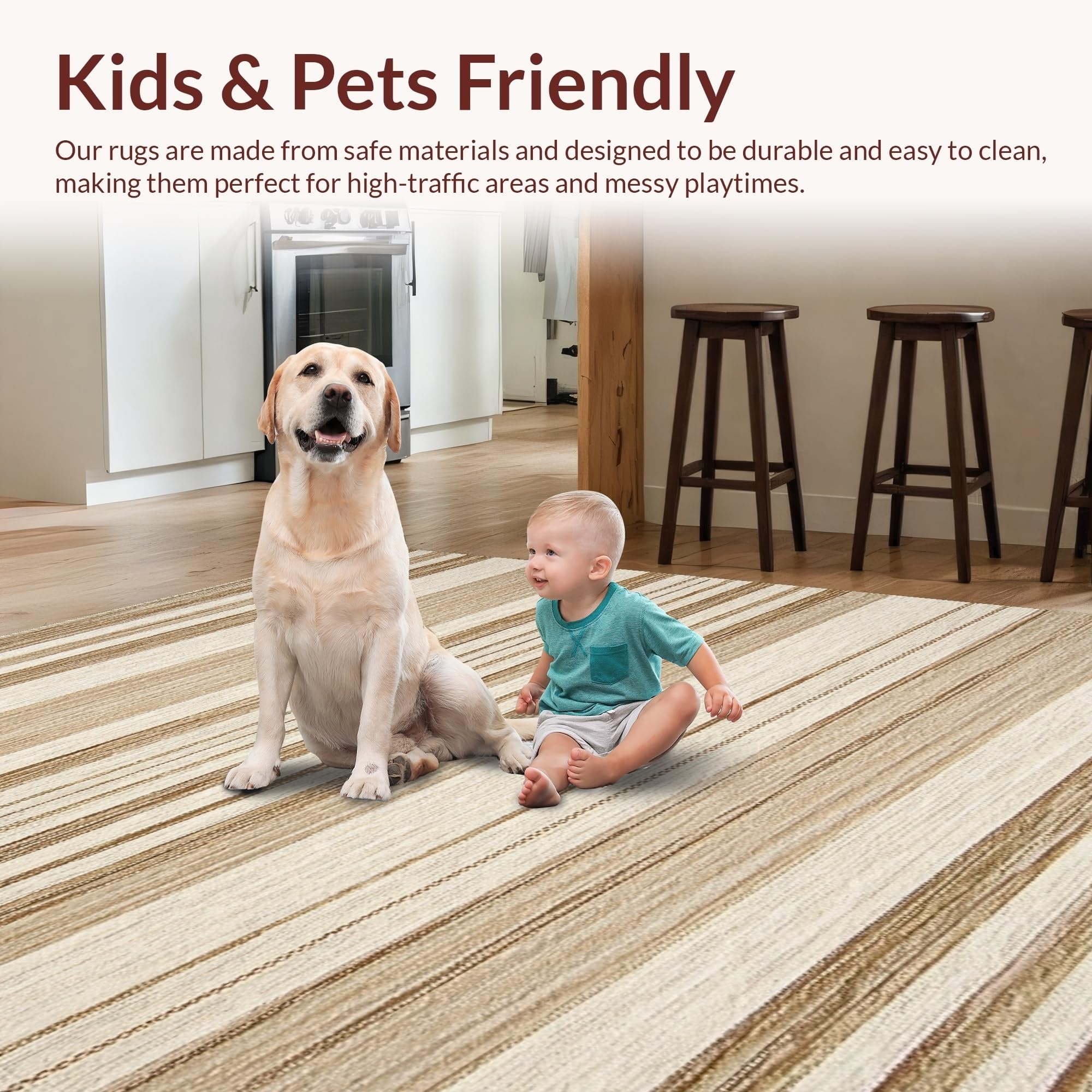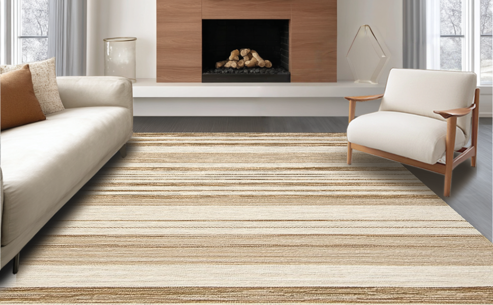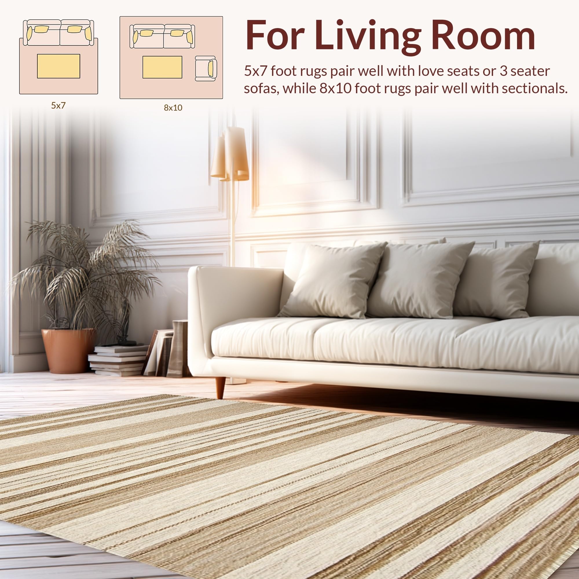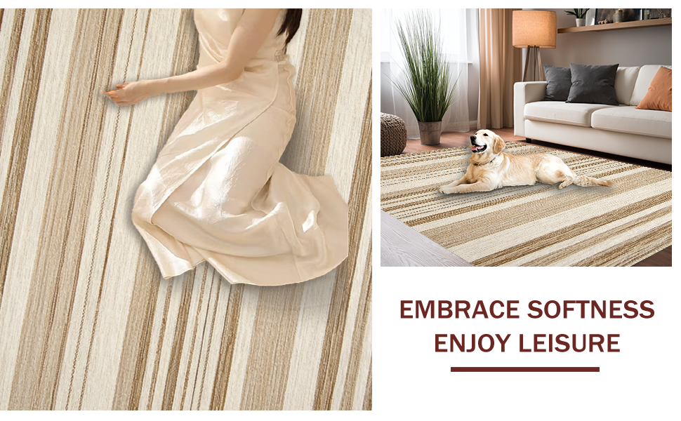 Ultra Soft Area Rug, Non Slip, Stain Resistant, Washable Area Rugs for Living Room, Bedroom, Chic Earthy Herringbone Aesthetic(Beige) Overview: