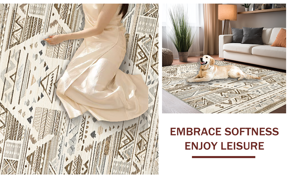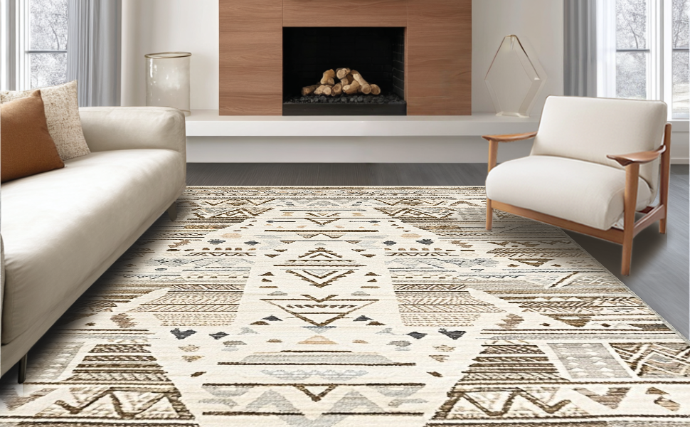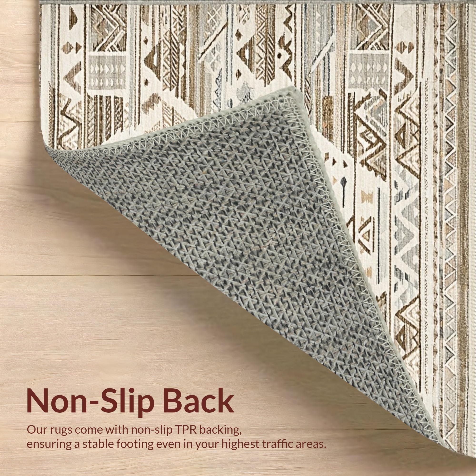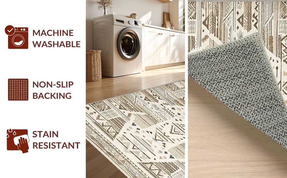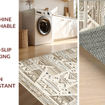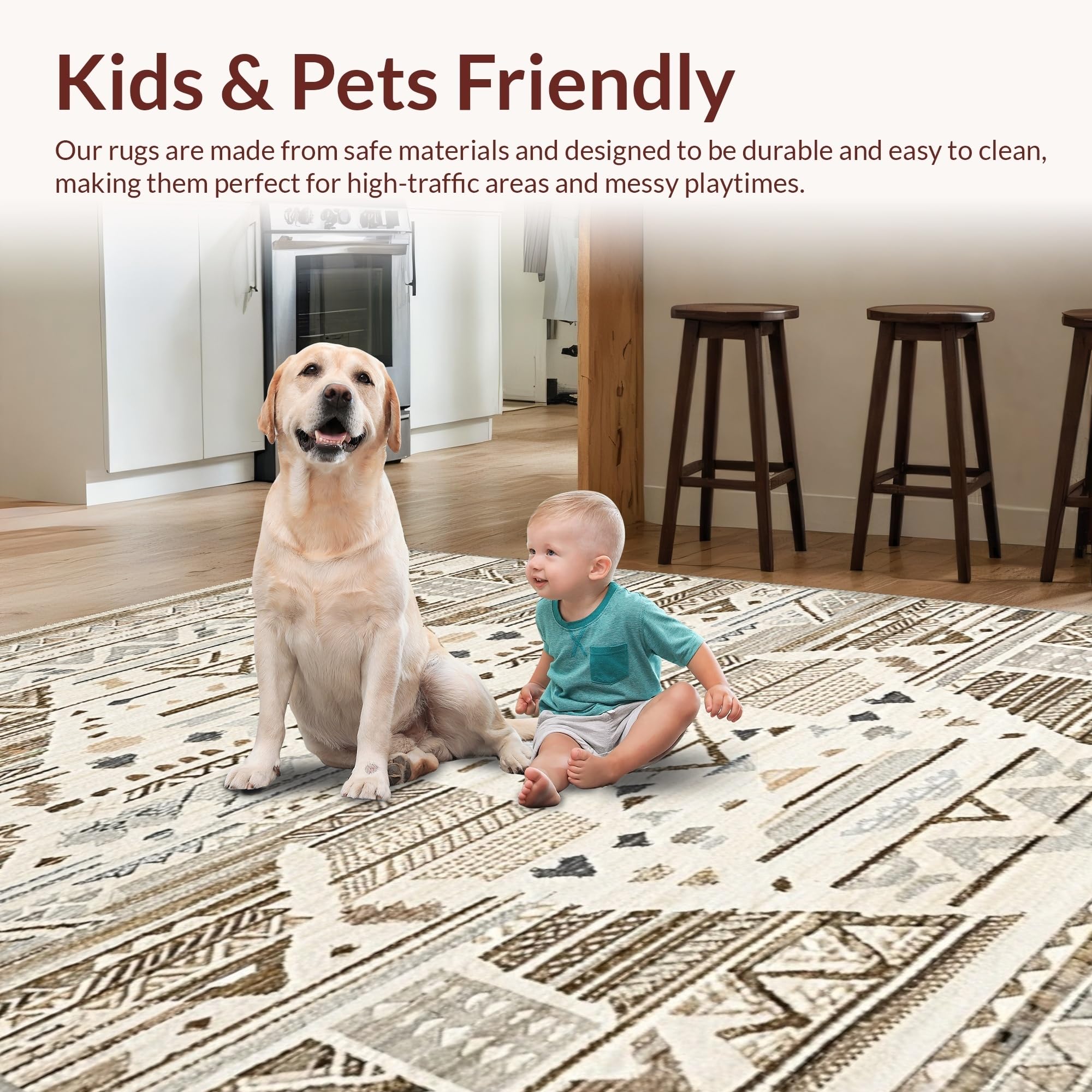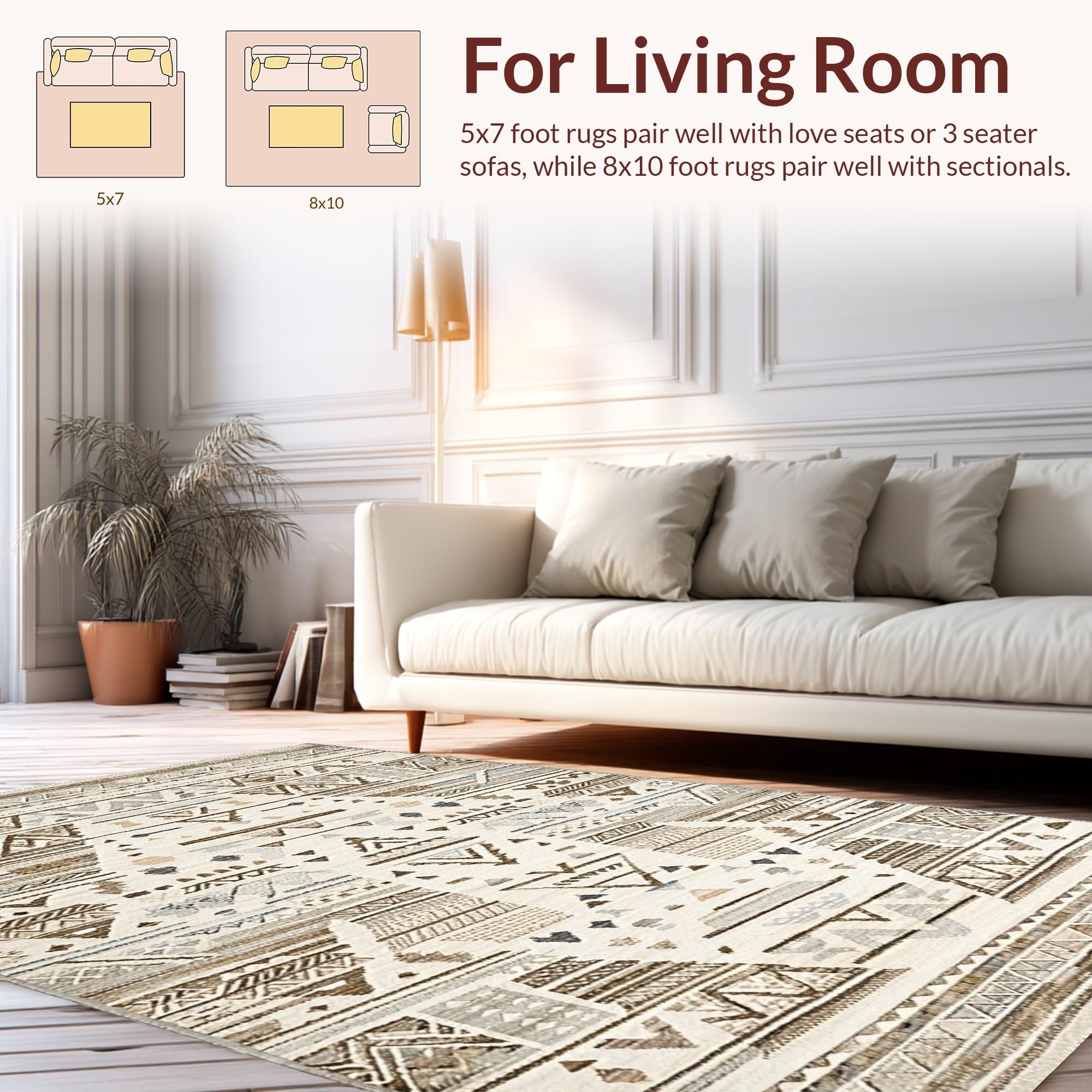Ultra Soft Area Rug, Non Slip, Stain Resistant, Washable Area Rugs for Living Room, Bedroom, Chic Earthy Medallion Motif(Beige) Overview: