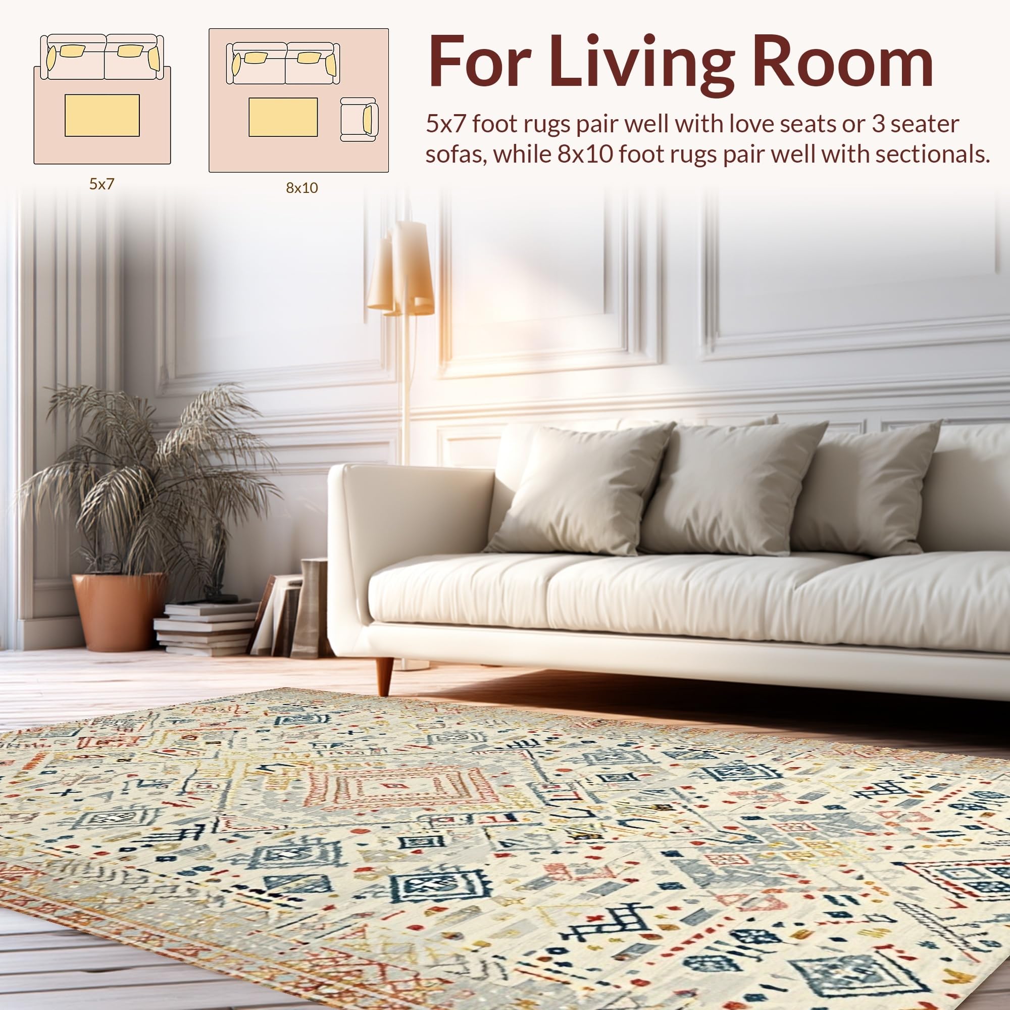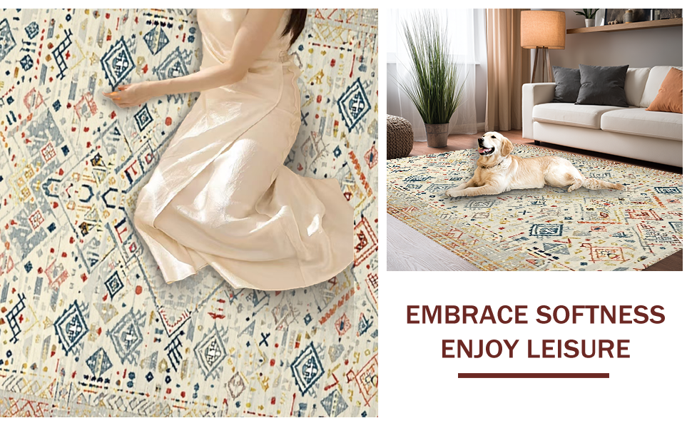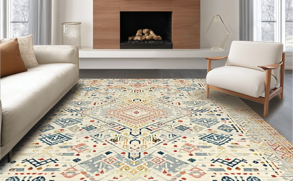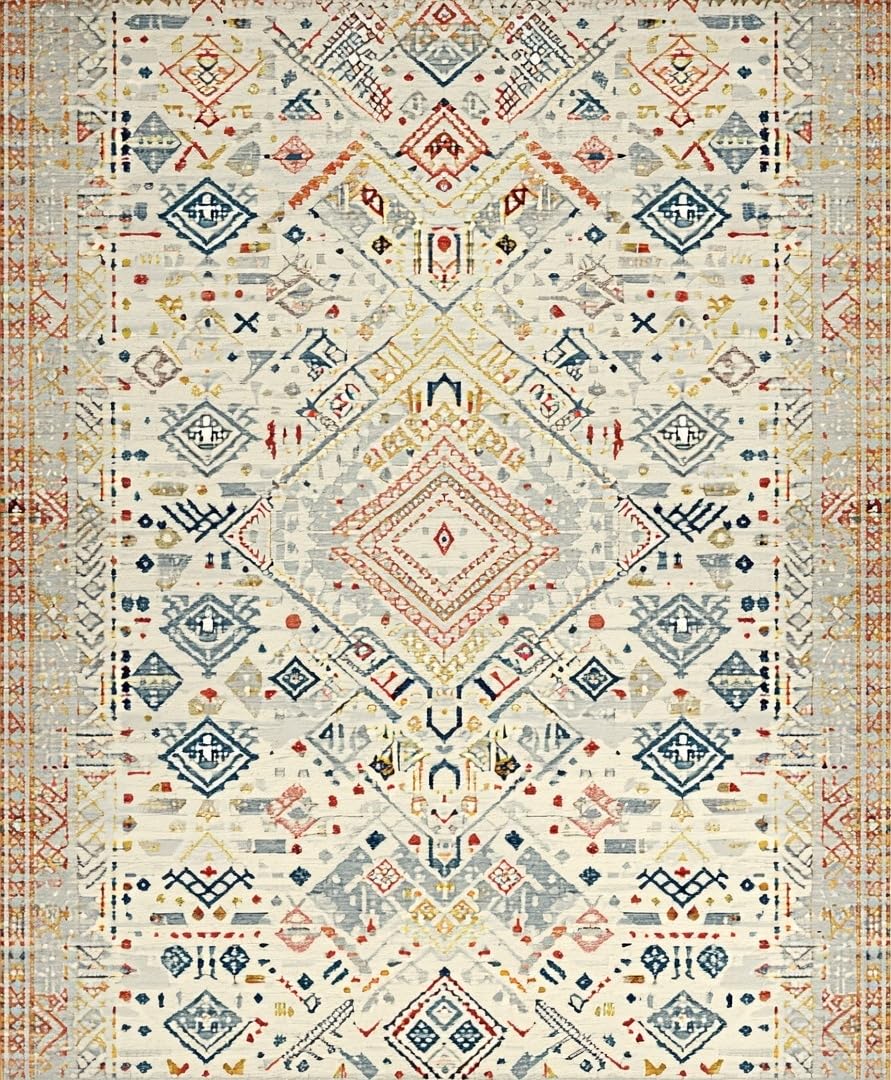 Ultra Soft Area Rug, Non Slip, Stain Resistant, Washable Area Rugs for Living Room, Bedroom, Chic Earthy Ogee Texture(Beige) Overview: