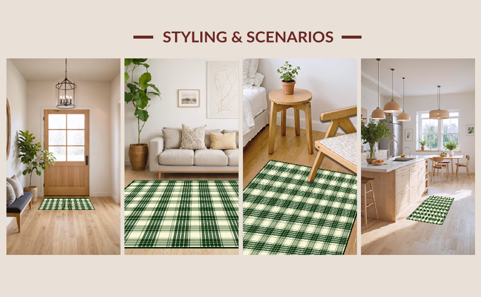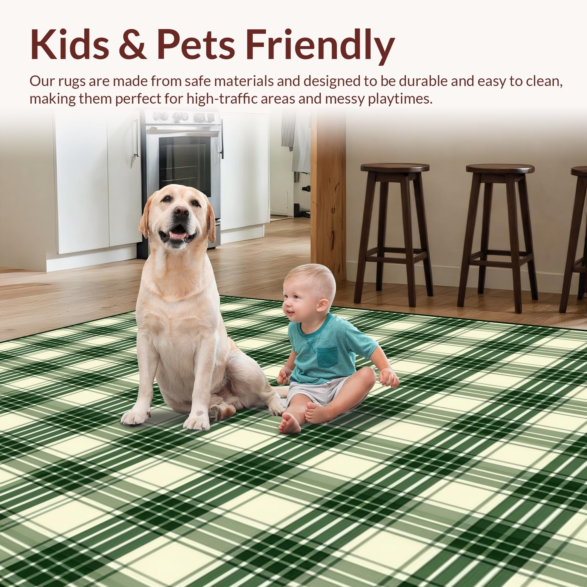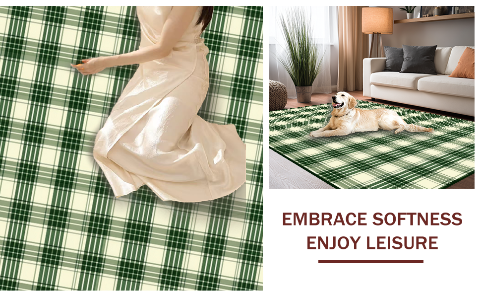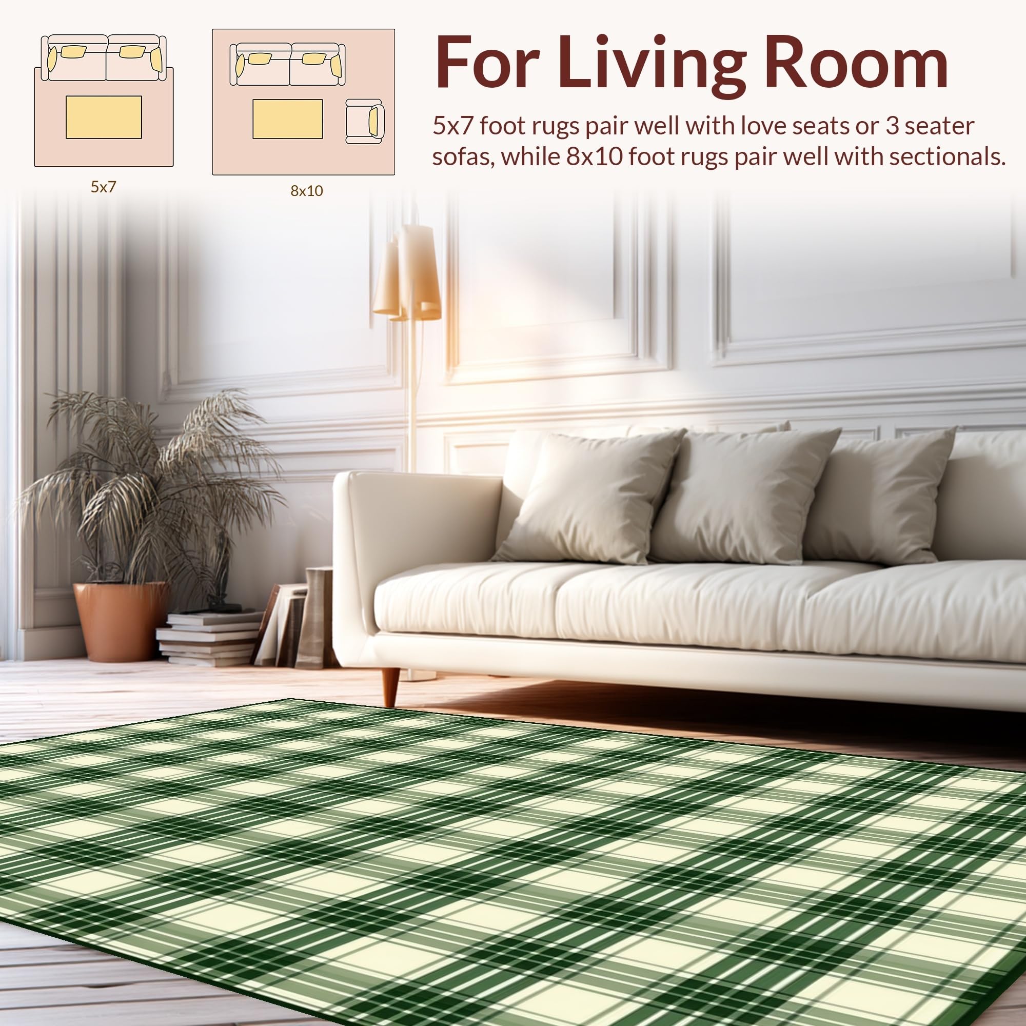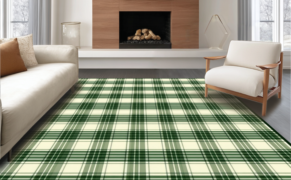 Ultra Soft Area Rug, Non Slip, Stain Resistant, Washable Area Rugs for Living Room, Bedroom, Chic Earthy Plaid Aesthetic(Beige) Overview: