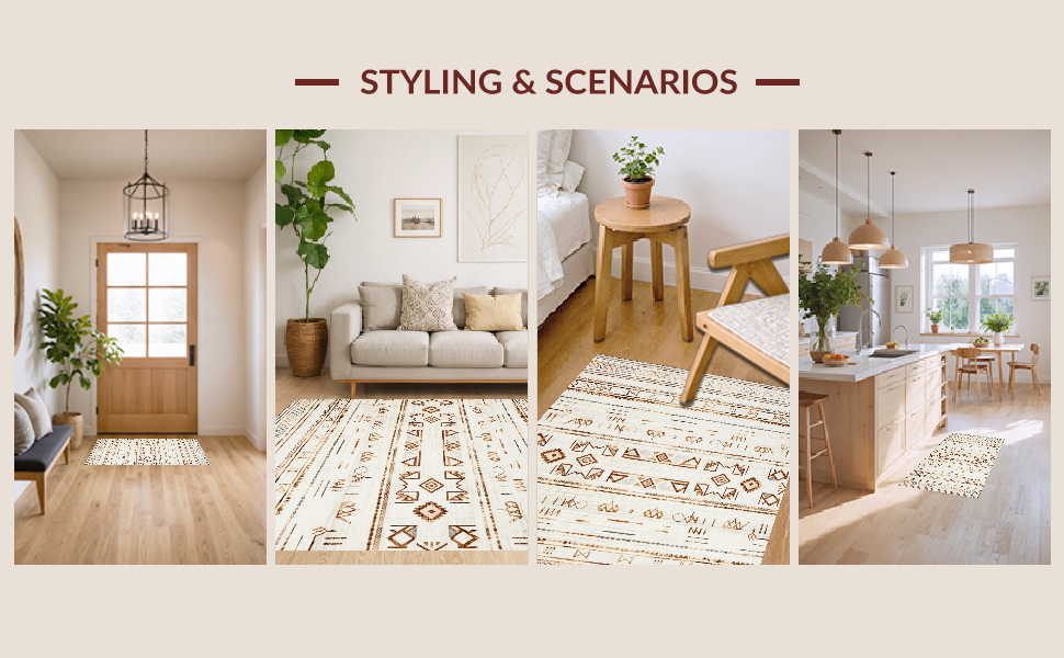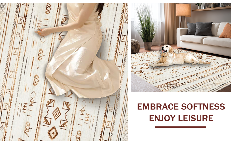 Ultra Soft Area Rug, Non Slip, Stain Resistant, Washable Area Rugs for Living Room, Bedroom, Chic Earthy Tassel Decor(Beige) Overview: