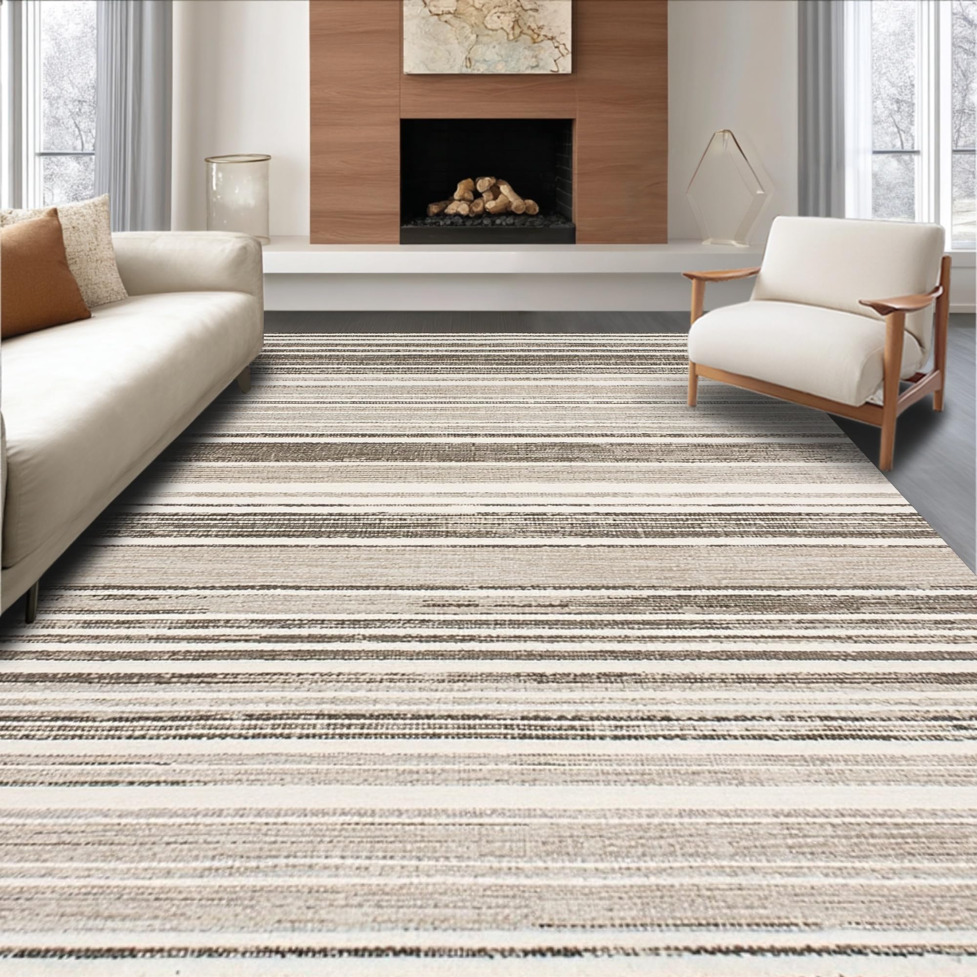 Ultra Soft Area Rug, Non Slip, Stain Resistant, Washable Area Rugs for Living Room, Bedroom, Chic Earthy Textured Visual(Gray) Overview:
