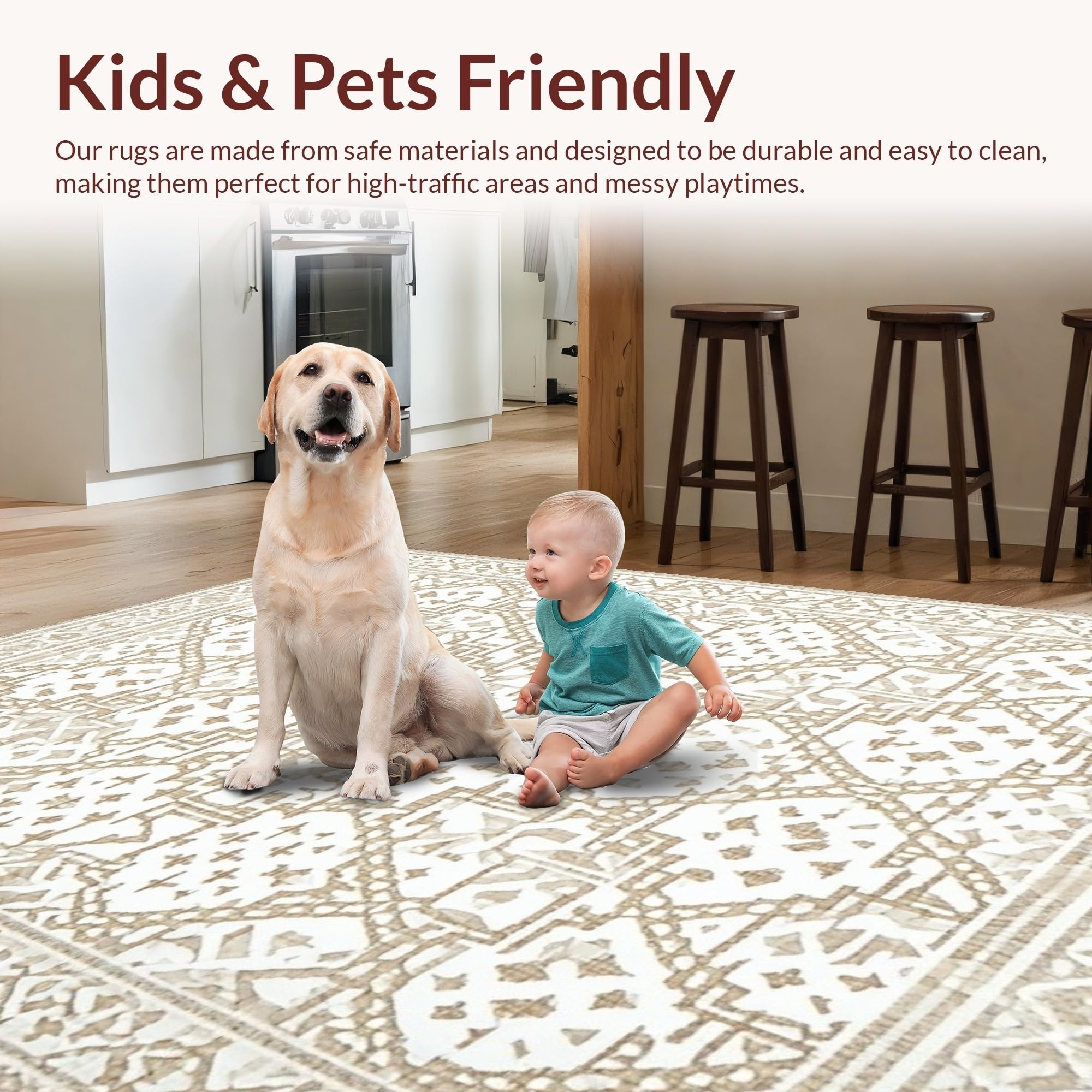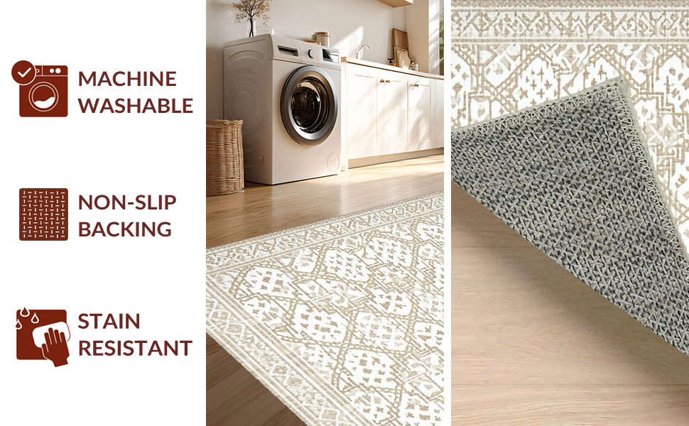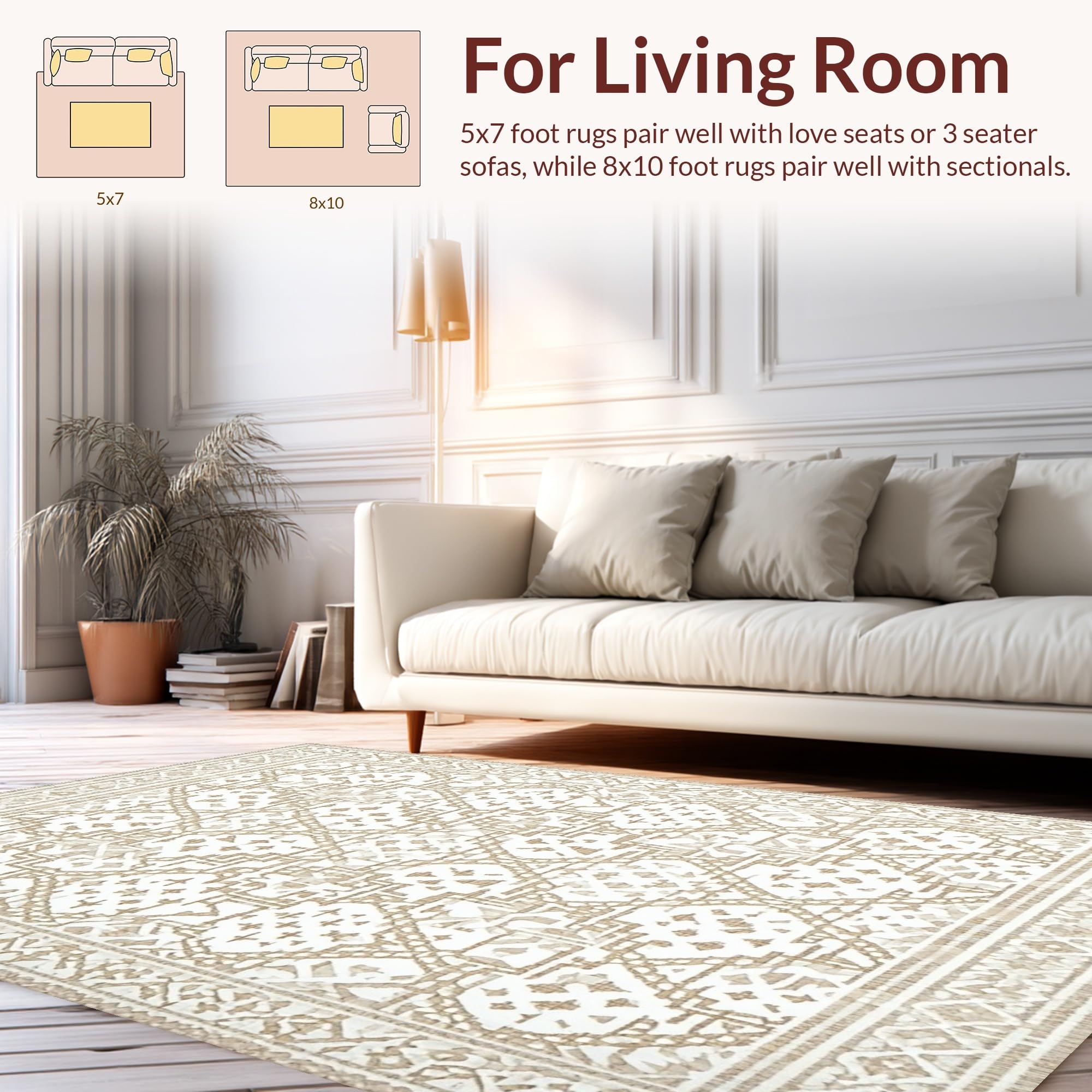 Ultra Soft Area Rug, Non Slip, Stain Resistant, Washable Area Rugs for Living Room, Bedroom, Chic Earthy Toned Abstract Style(Beige) Overview:
