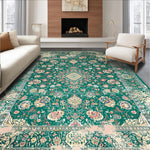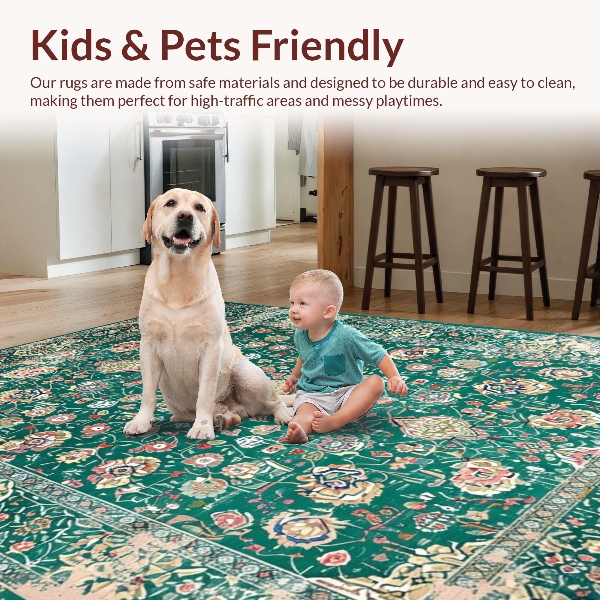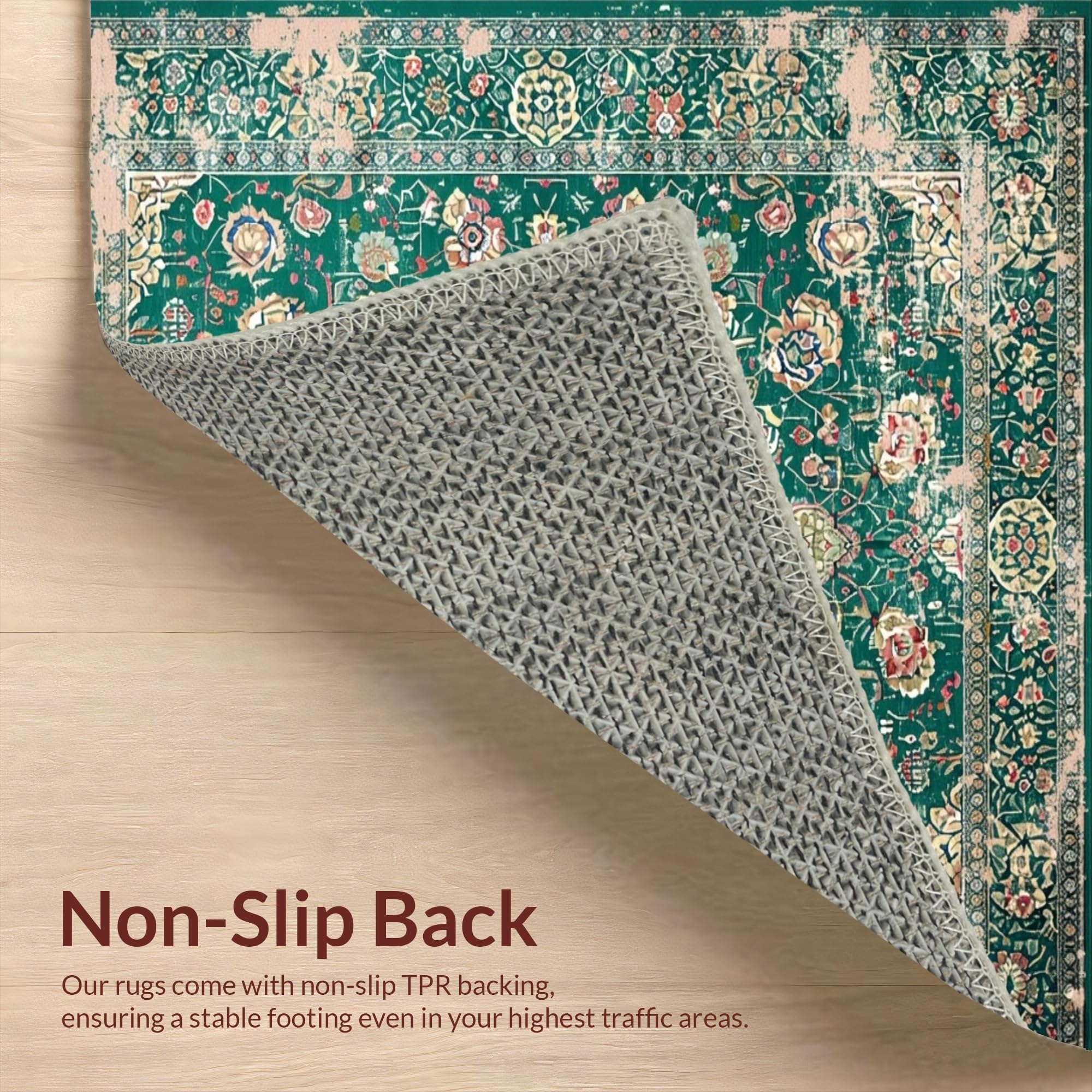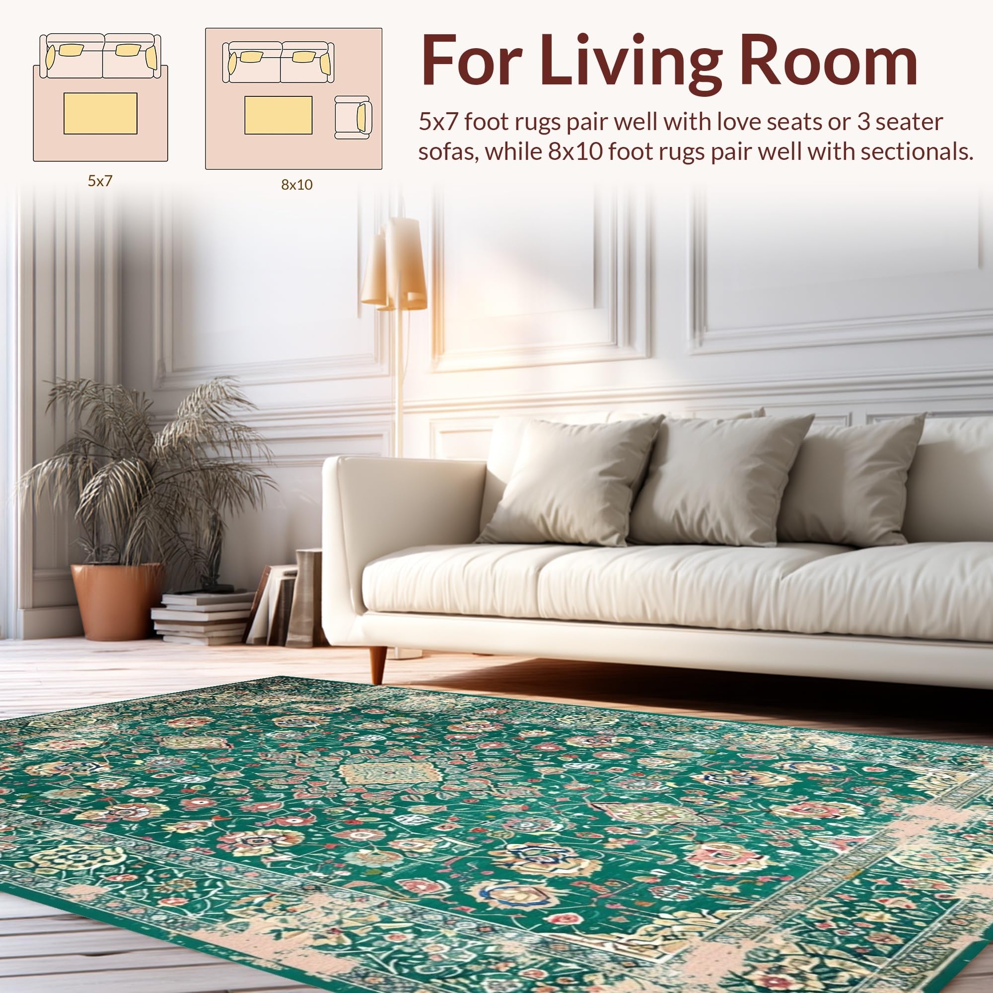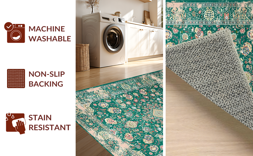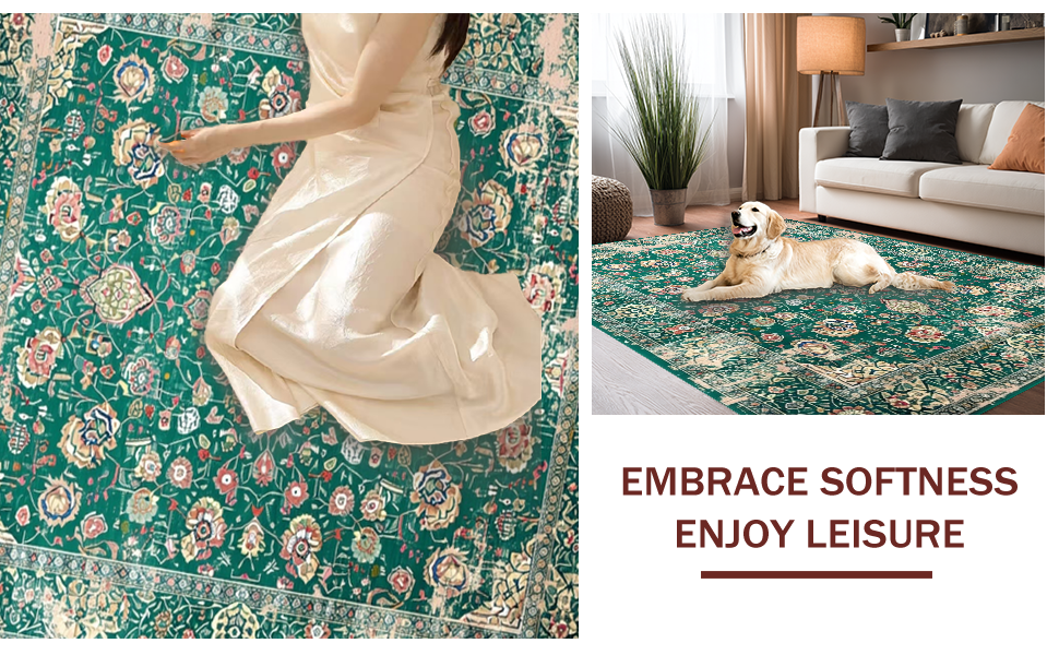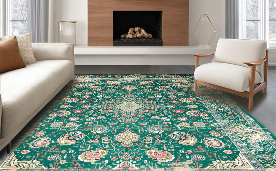 Ultra Soft Area Rug, Non Slip, Stain Resistant, Washable Area Rugs for Living Room, Bedroom, Chic Earthy Toned Floral Style(Green) Overview: