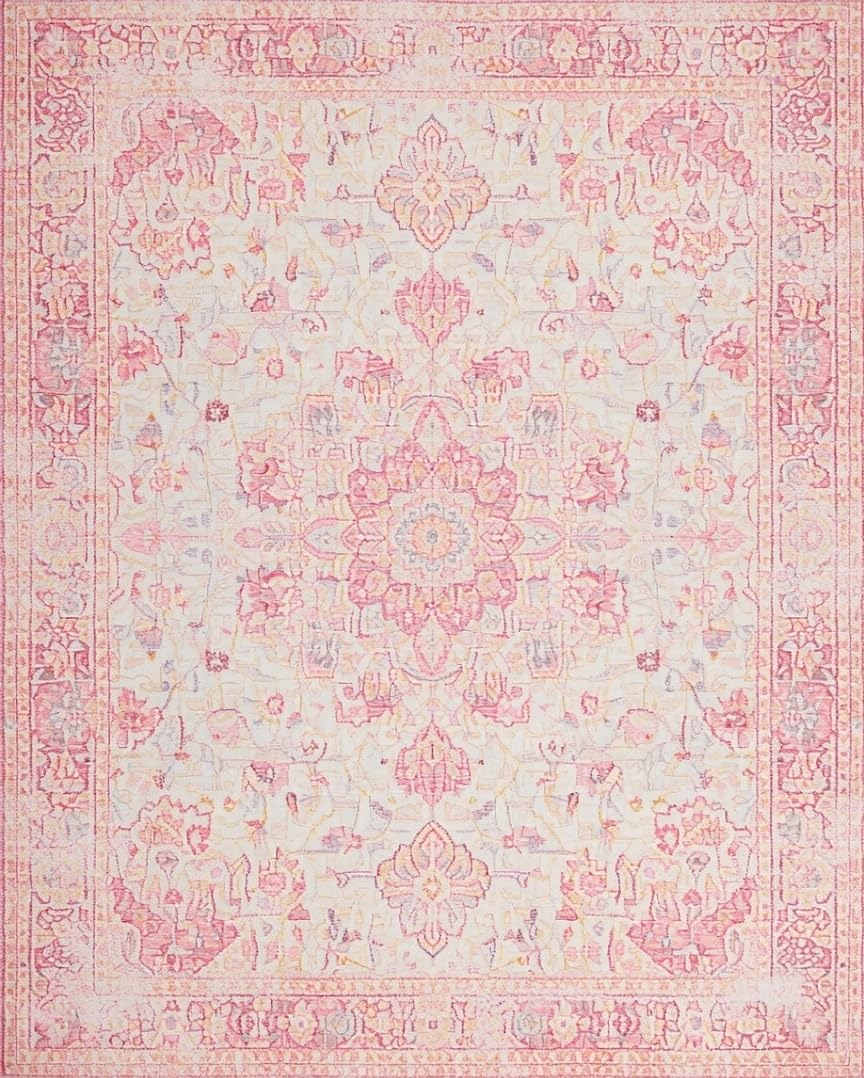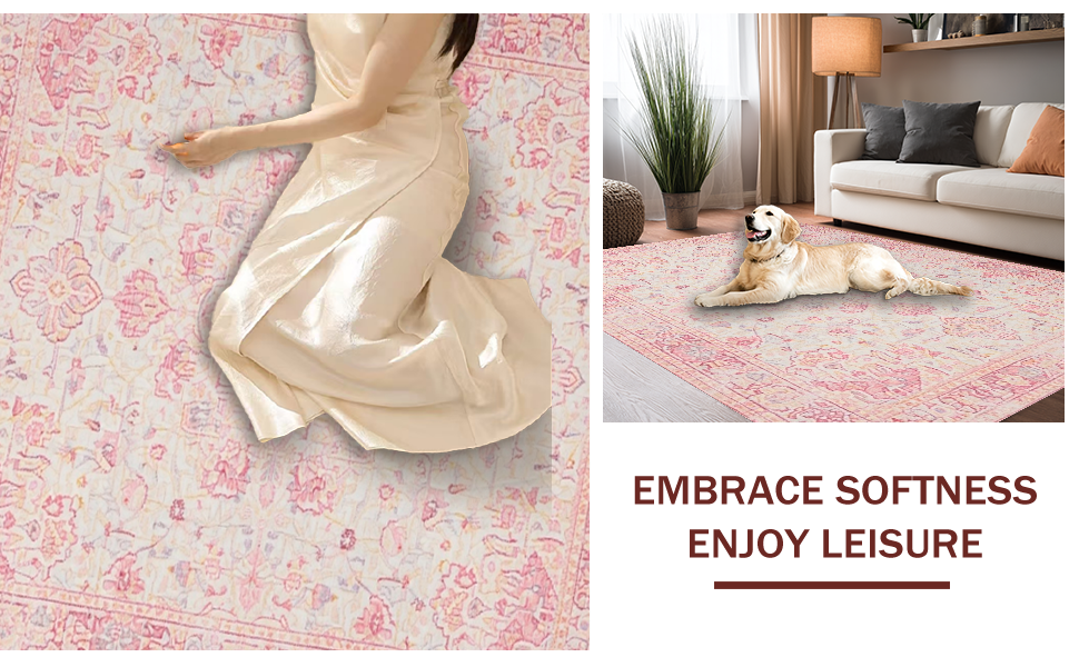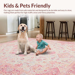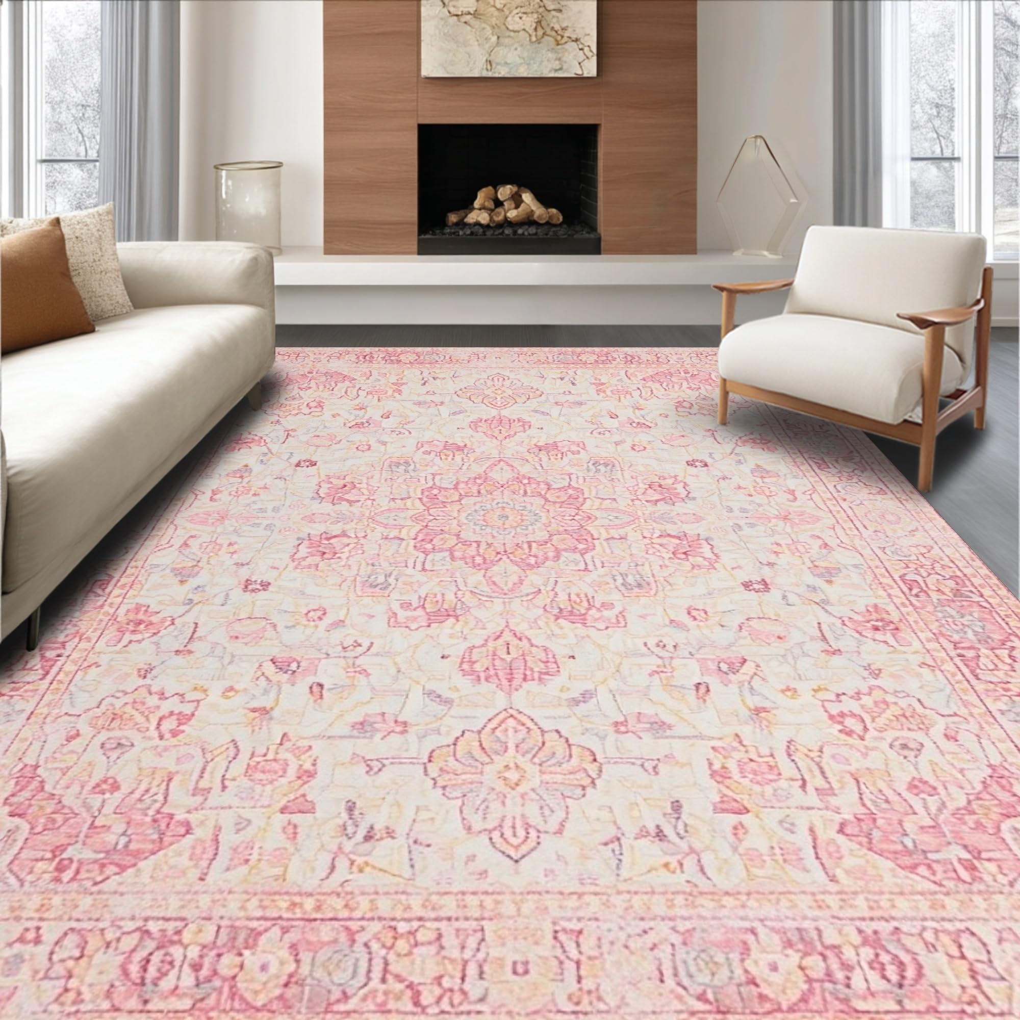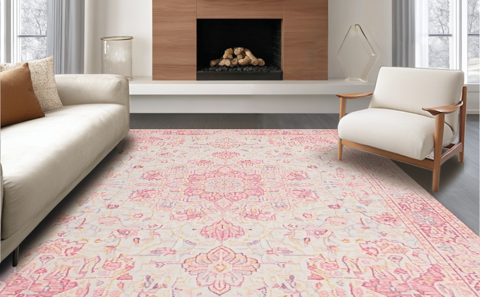 Ultra Soft Area Rug, Non Slip, Stain Resistant, Washable Area Rugs for Living Room, Bedroom, Chic Earthy Toned Garden Motif(Pink) Overview: