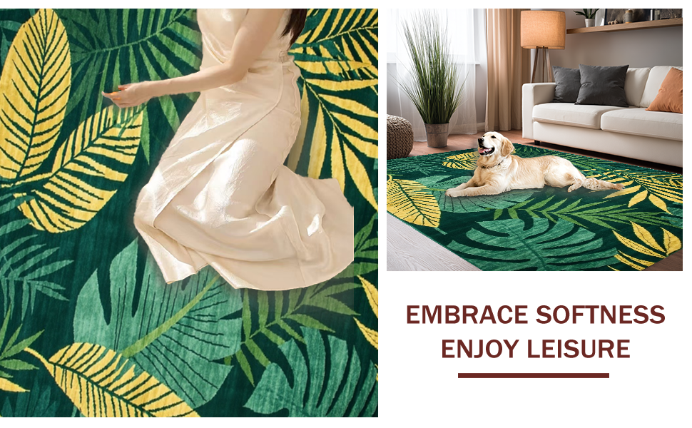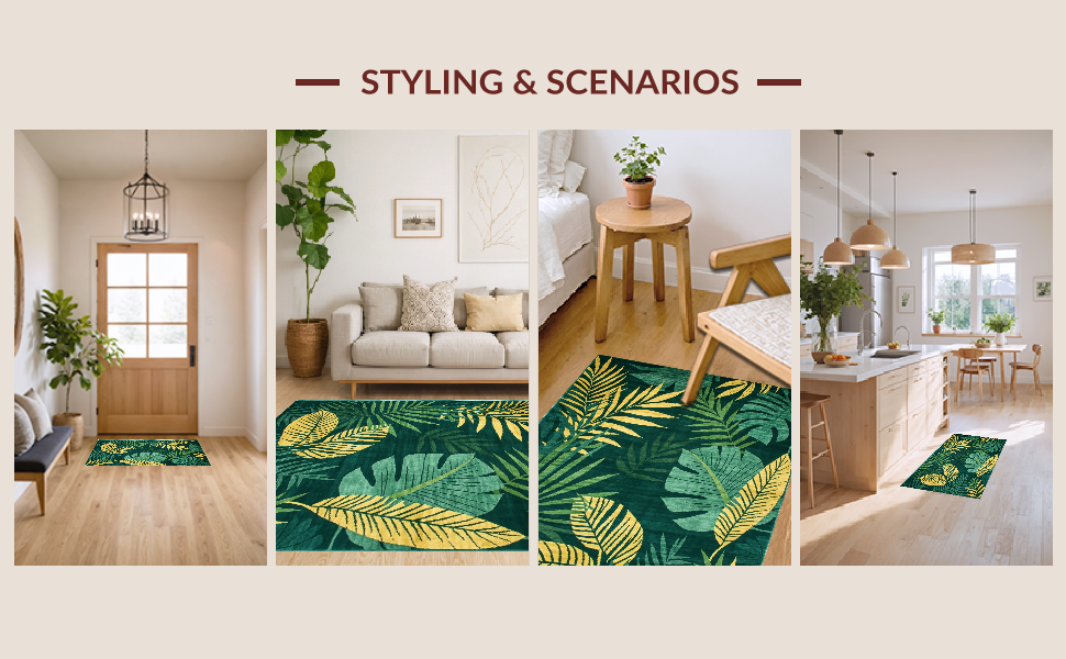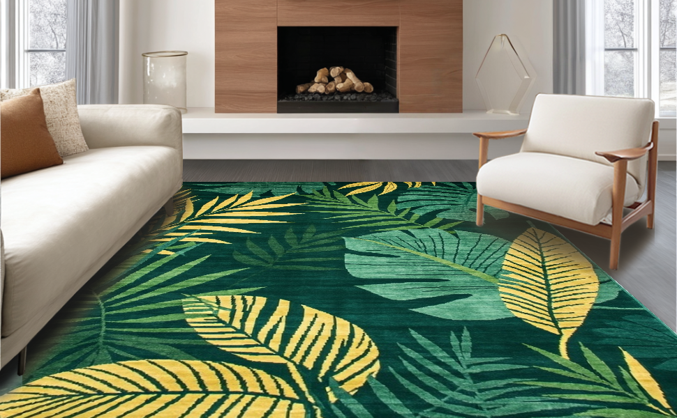 Ultra Soft Area Rug, Non Slip, Stain Resistant, Washable Area Rugs for Living Room, Bedroom, Chic Earthy Toned Pattern(Green) Overview:
