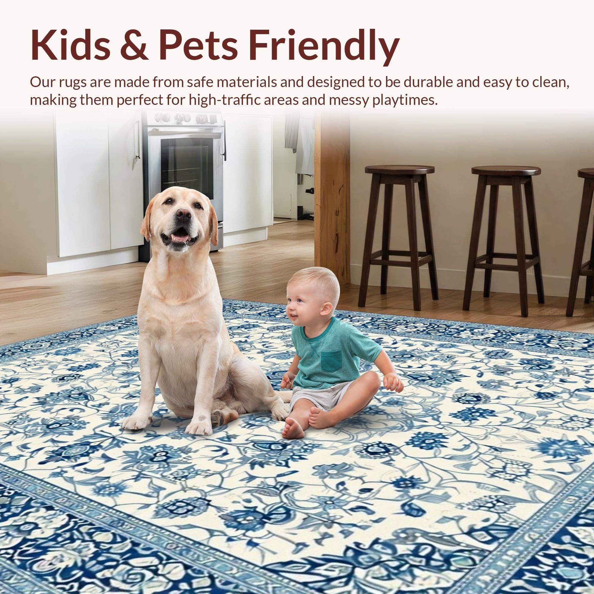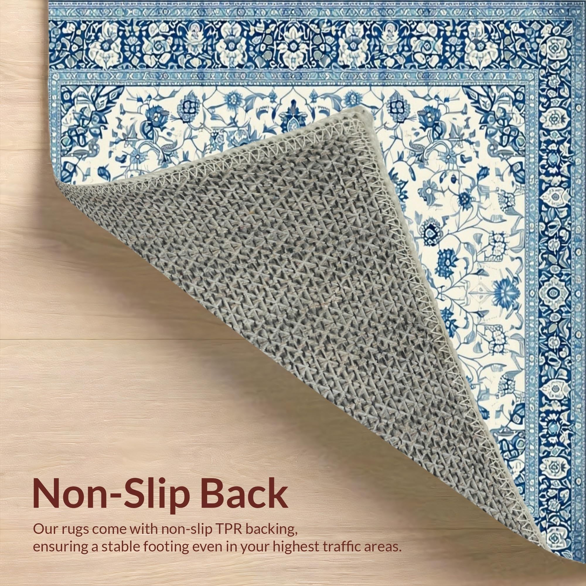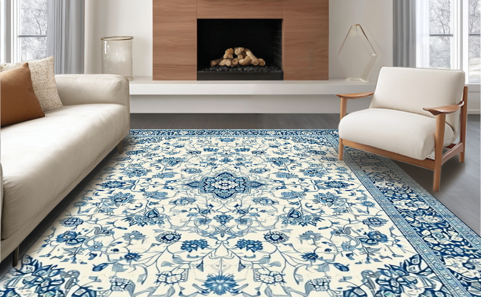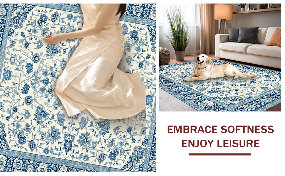 Ultra Soft Area Rug, Non Slip, Stain Resistant, Washable Area Rugs for Living Room, Bedroom, Chic Earthy Tones Blossom Style(Blue) Overview: