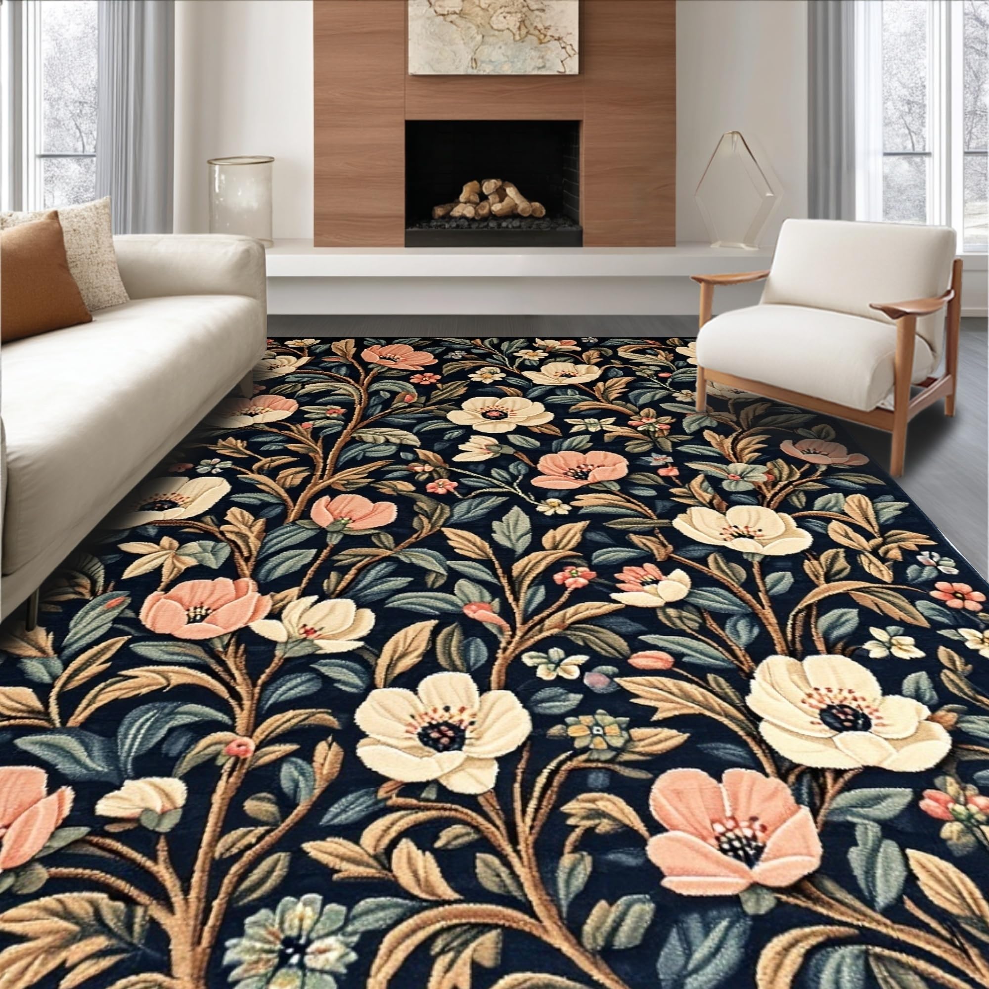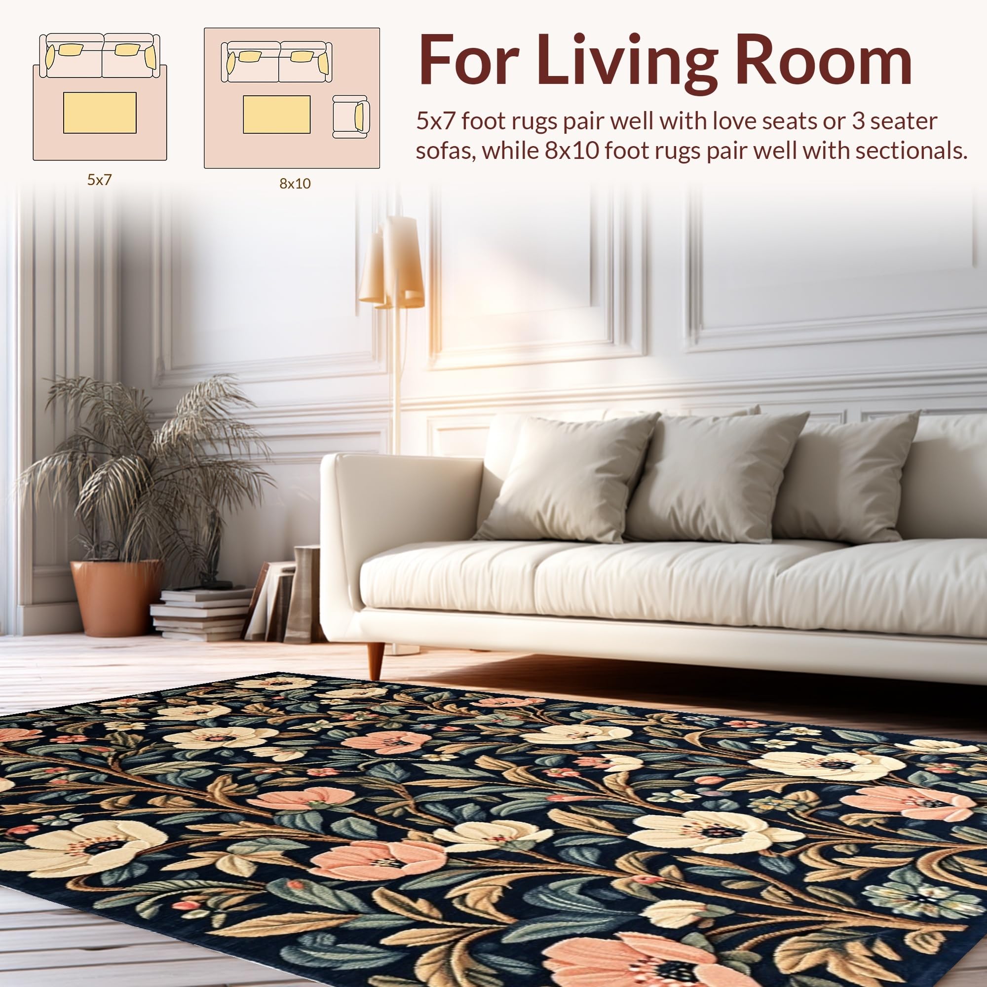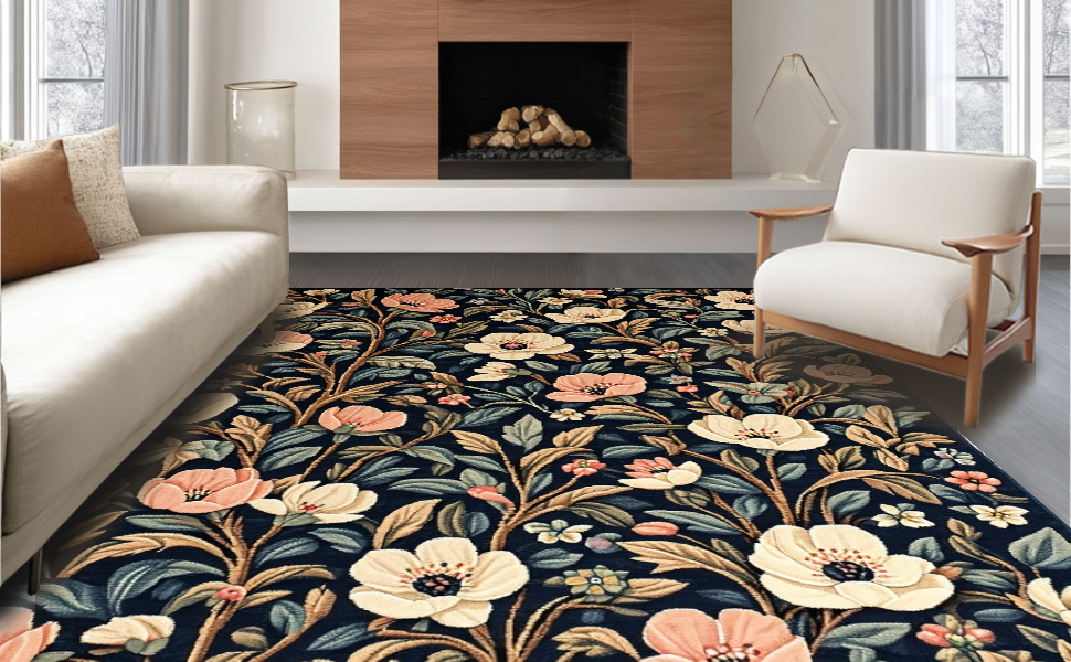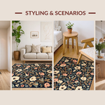 Ultra Soft Area Rug, Non Slip, Stain Resistant, Washable Area Rugs for Living Room, Bedroom, Chic Earthy Tones Floral Arrangement(Black) Overview: