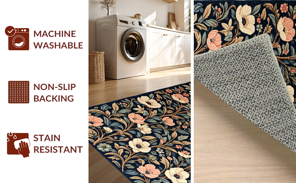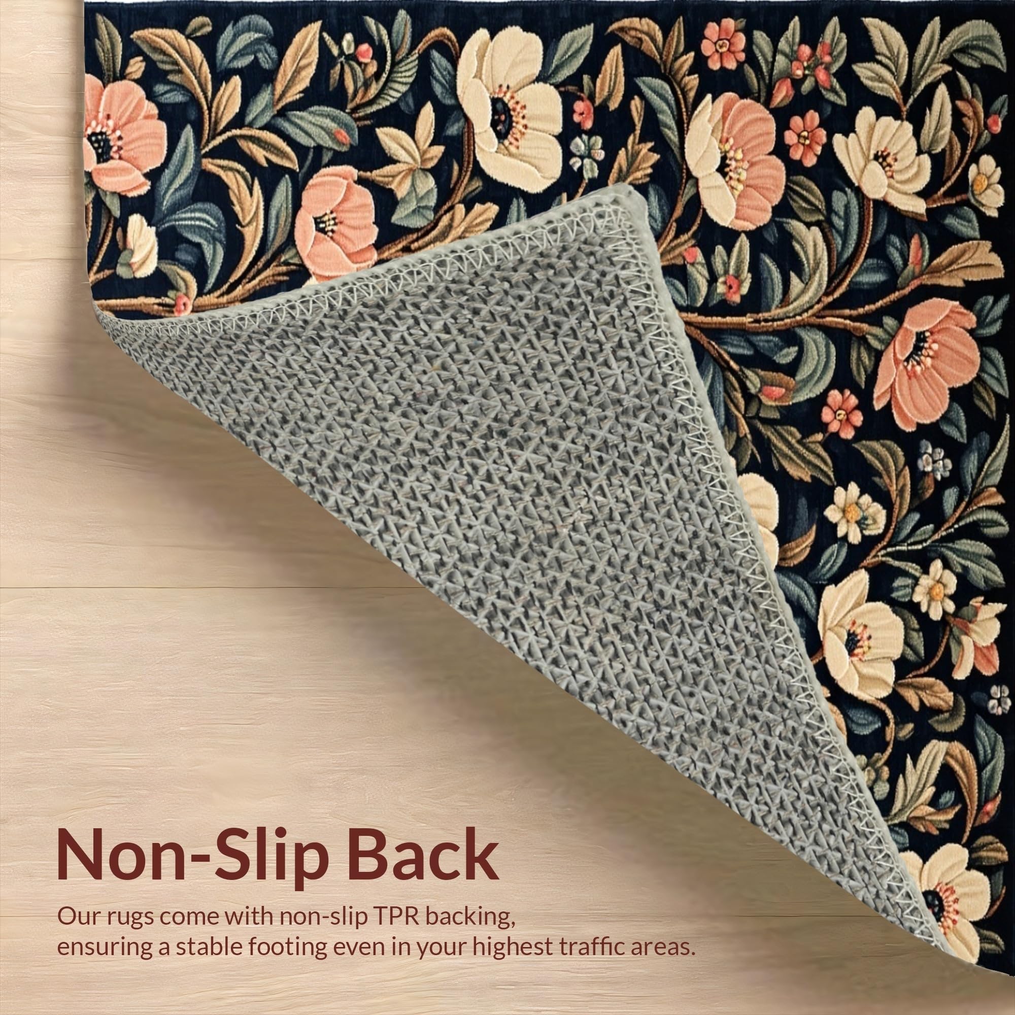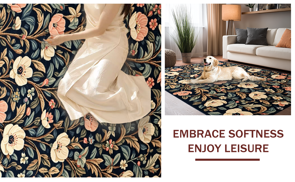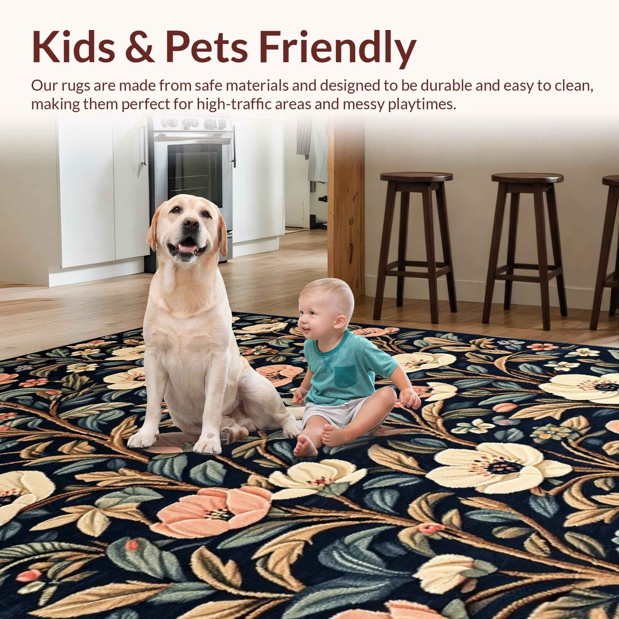 Ultra Soft Area Rug, Non Slip, Stain Resistant, Washable Area Rugs for Living Room, Bedroom, Chic Earthy Tones Floral Arrangement(Black) Overview: