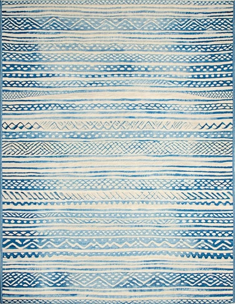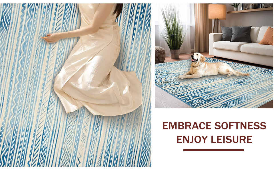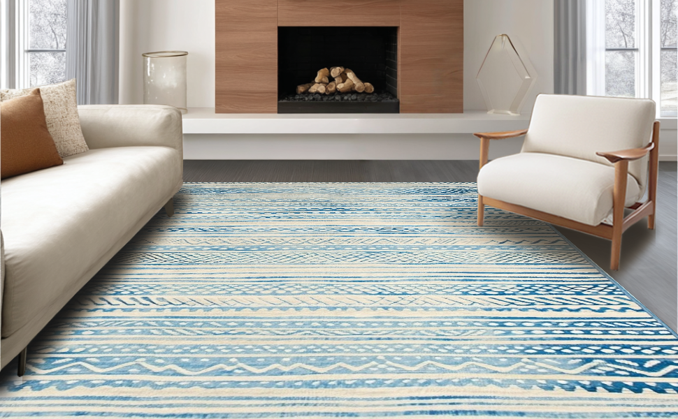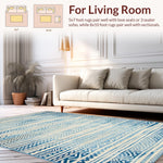 Ultra Soft Area Rug, Non Slip, Stain Resistant, Washable Area Rugs for Living Room, Bedroom, Chic Earthy Wave Scallop Style(Blue) Overview: