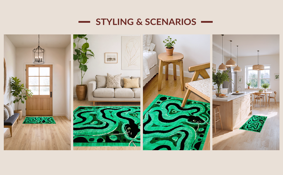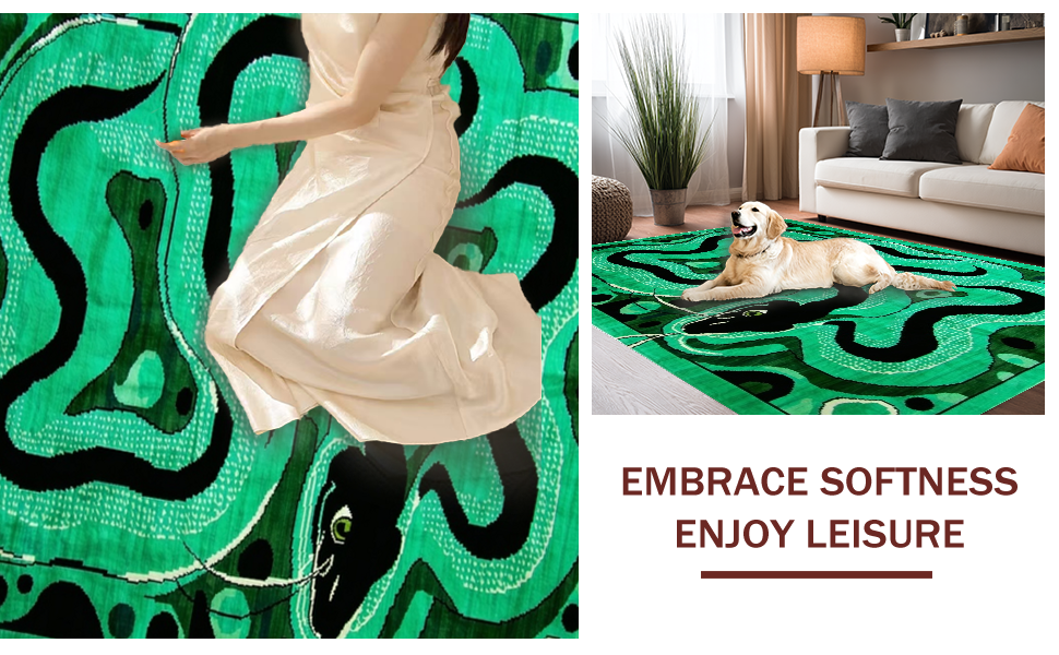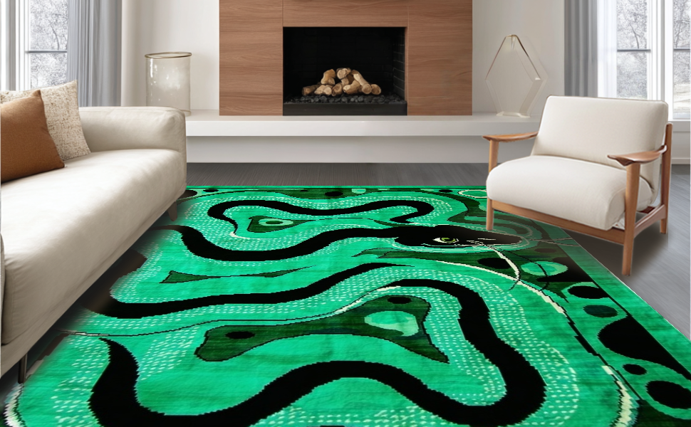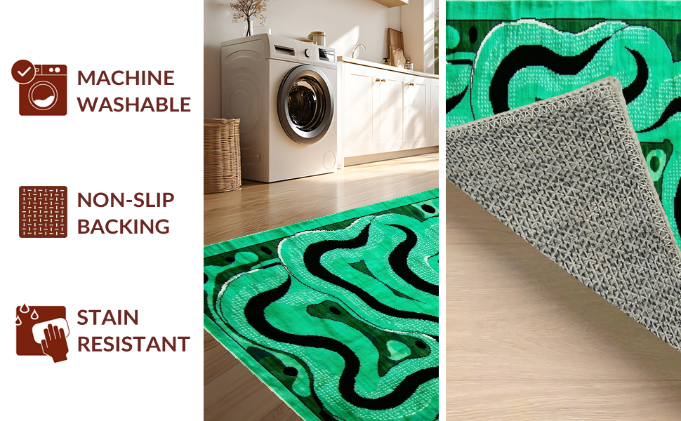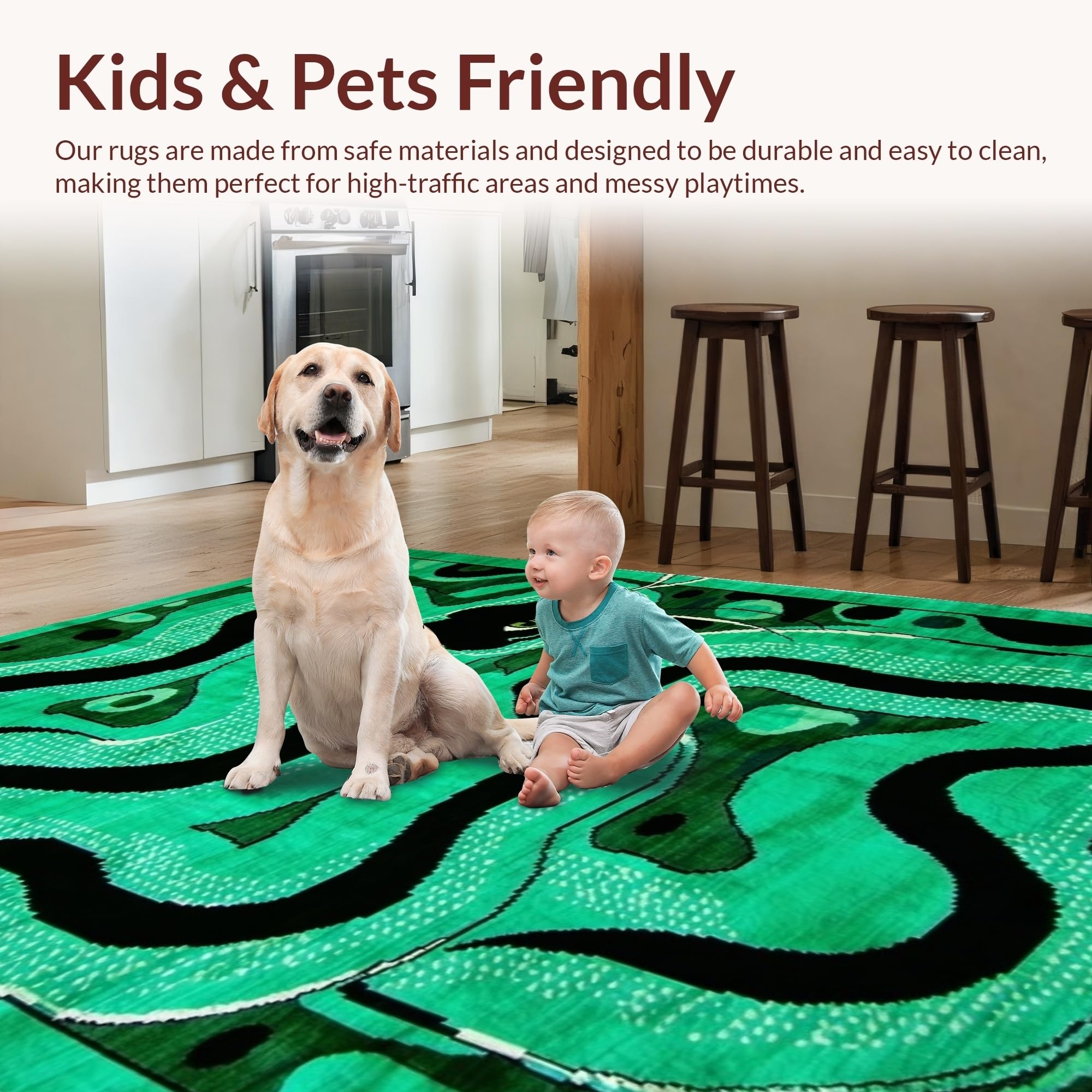 Ultra Soft Area Rug, Non Slip, Stain Resistant, Washable Area Rugs for Living Room, Bedroom, Chic Emerald Minimalist Pattern(Green) Overview:
