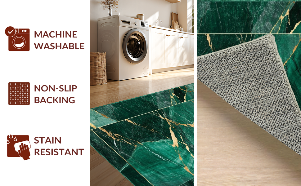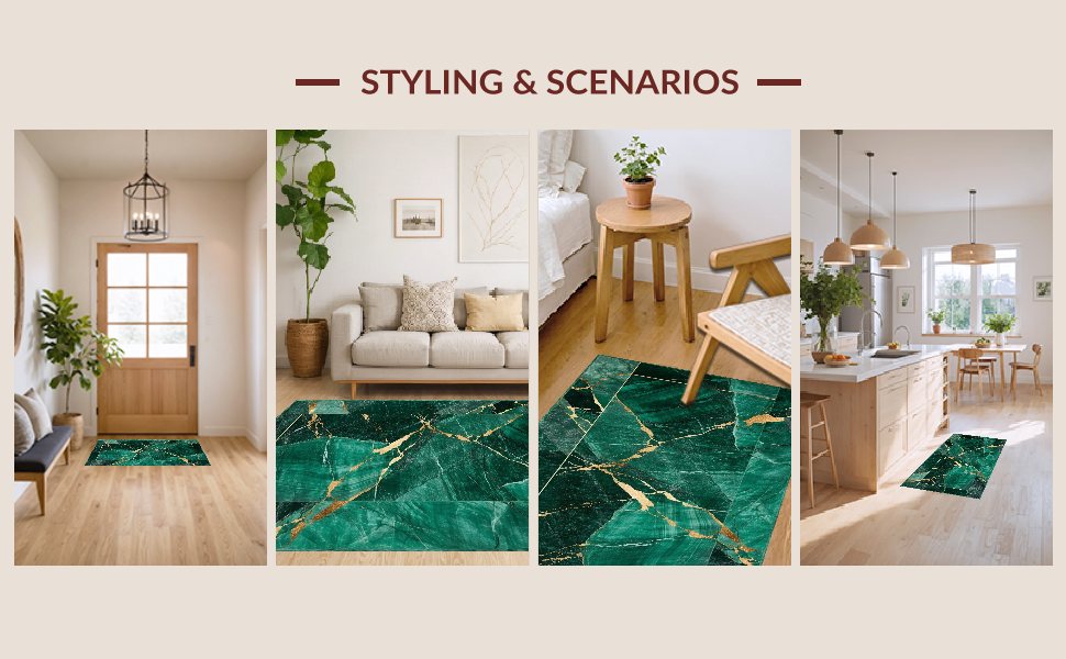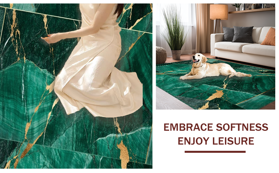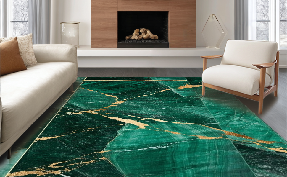 Ultra Soft Area Rug, Non Slip, Stain Resistant, Washable Area Rugs for Living Room, Bedroom, Chic Emerald Swirl Design(Green) Overview: