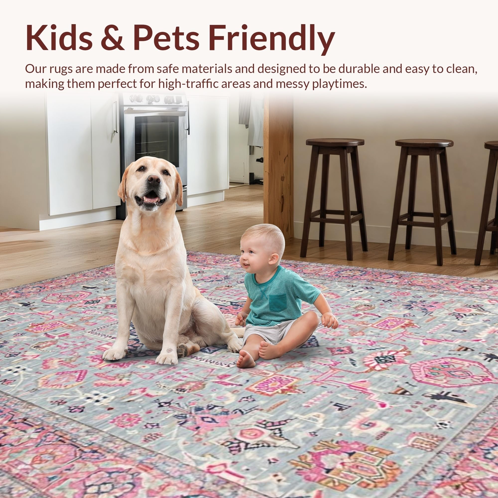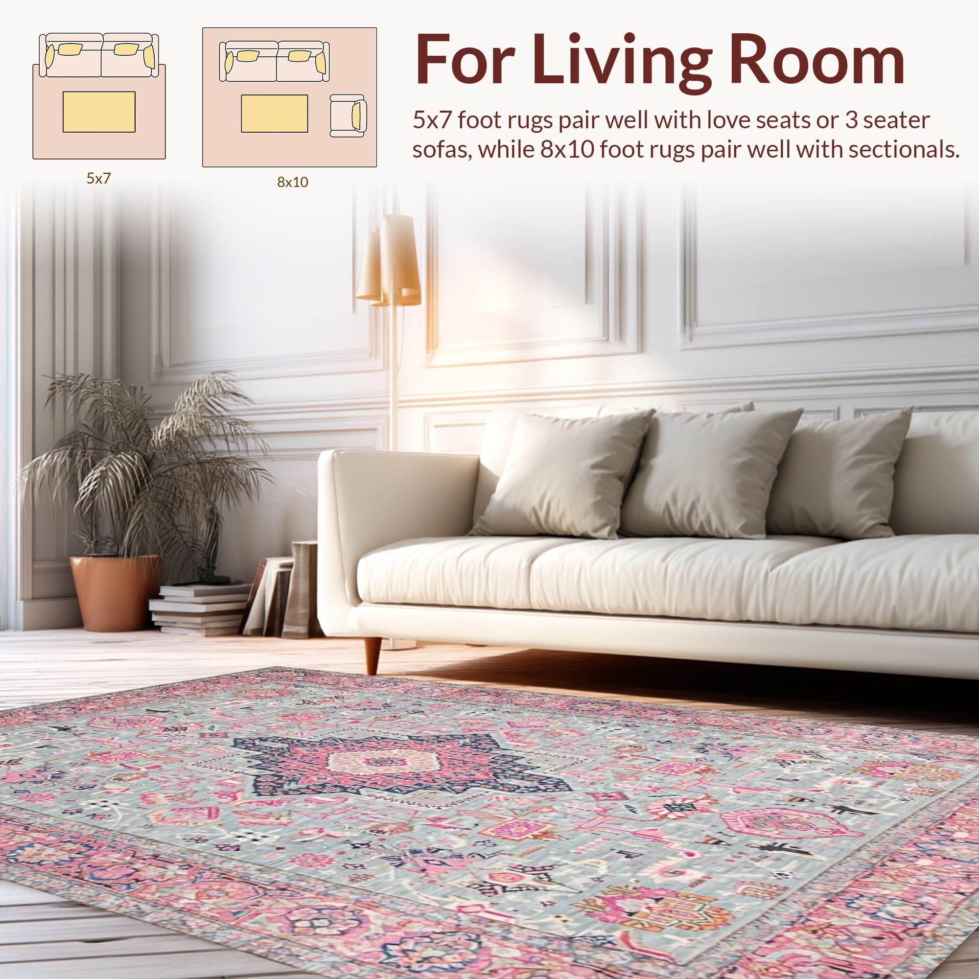 Ultra Soft Area Rug, Non Slip, Stain Resistant, Washable Area Rugs for Living Room, Bedroom, Chic Ethnic Diamond Texture(Gray) Overview: