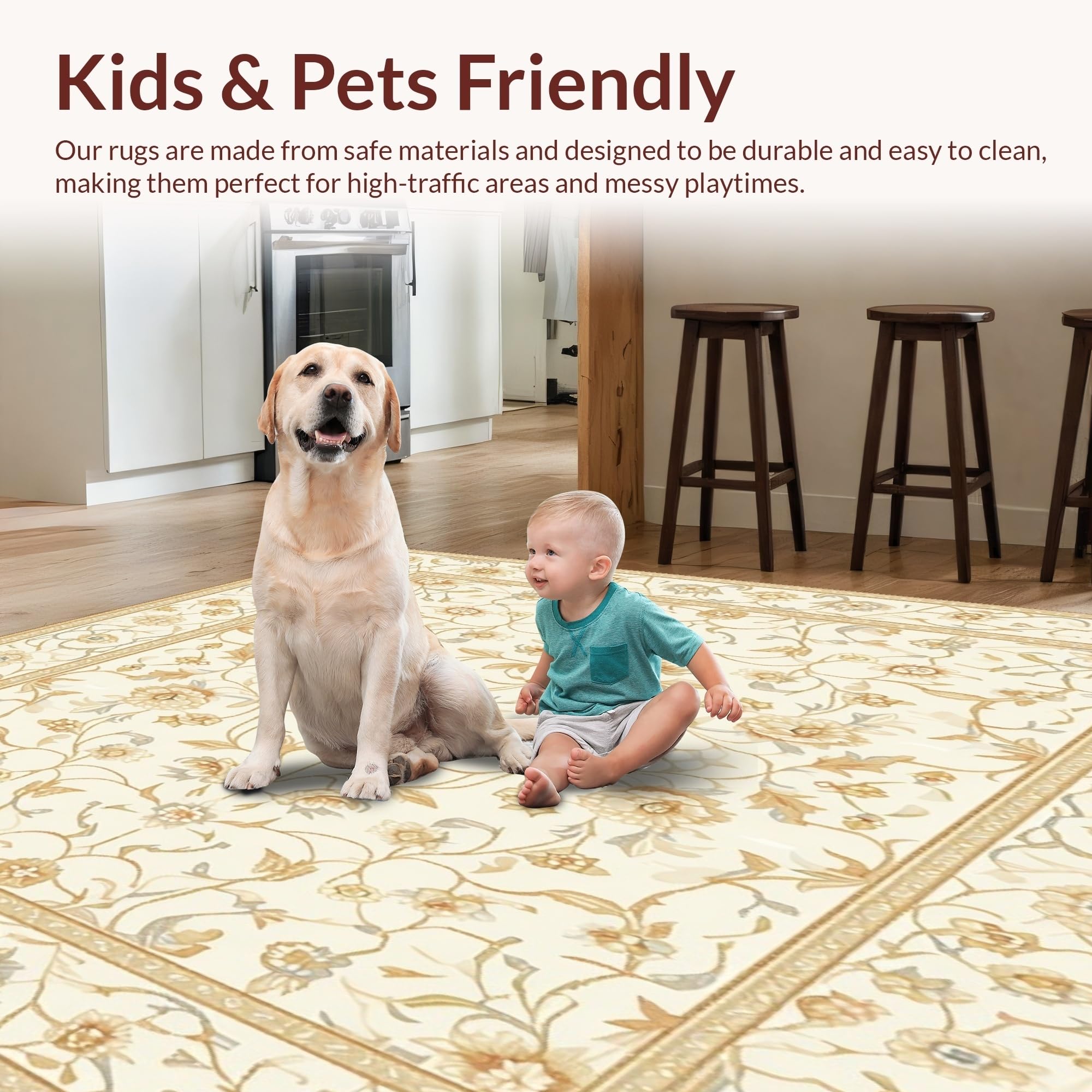 Ultra Soft Area Rug, Non Slip, Stain Resistant, Washable Area Rugs for Living Room, Bedroom, Chic Floral Area With Non Slip Backing for Stylish Home Decor(Beige) Overview:
