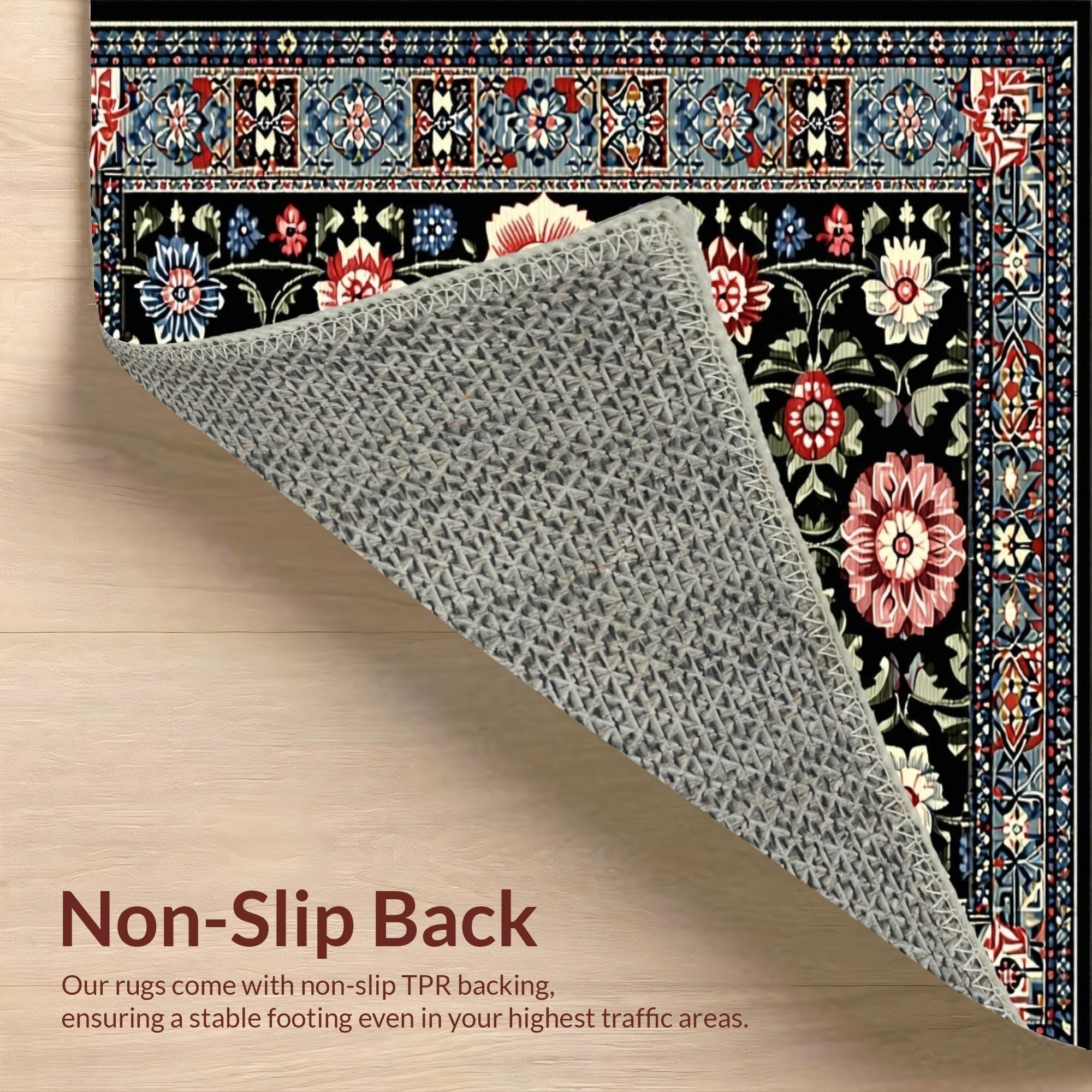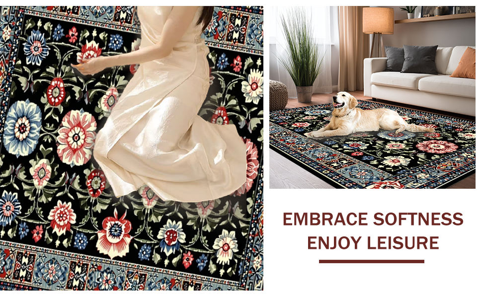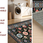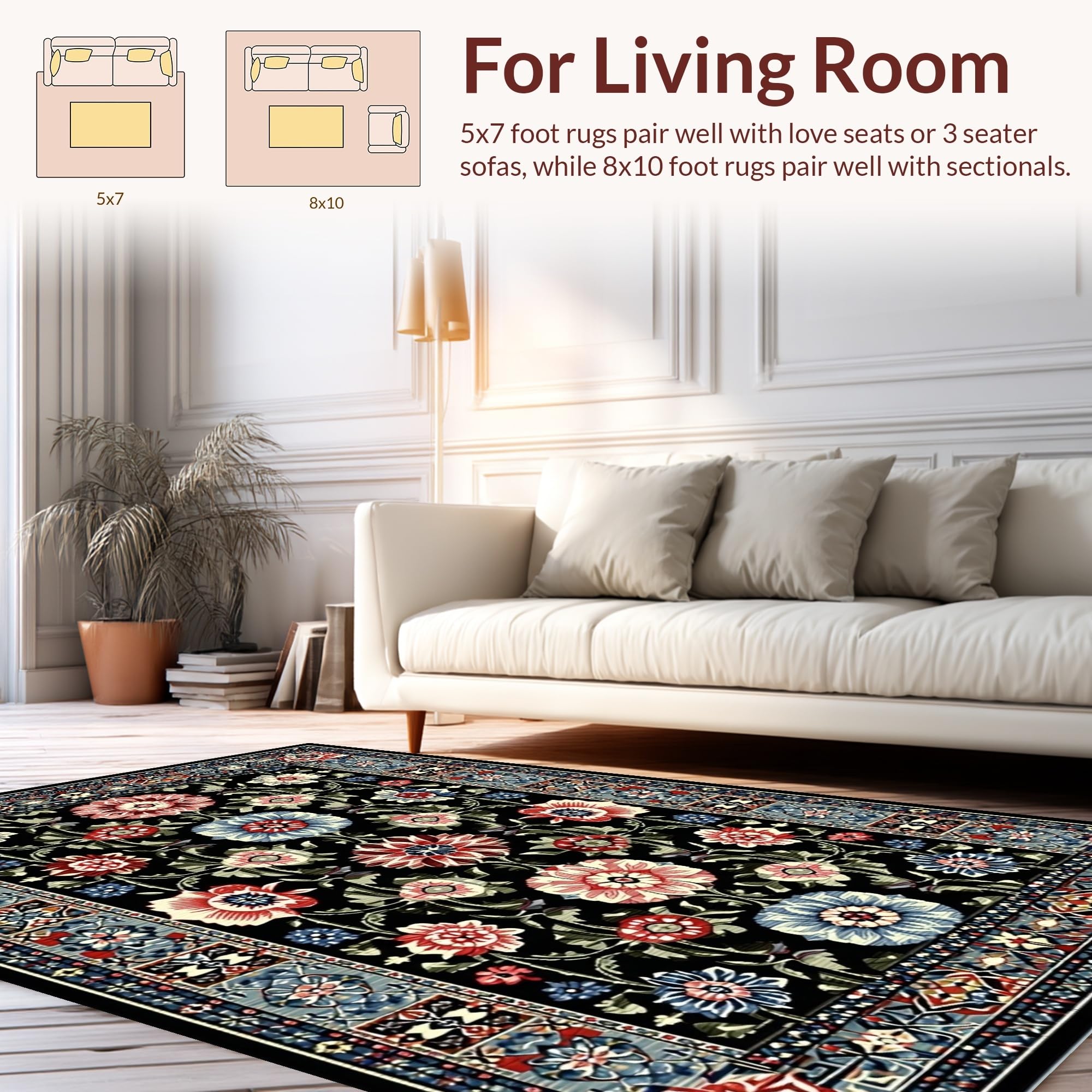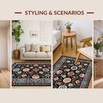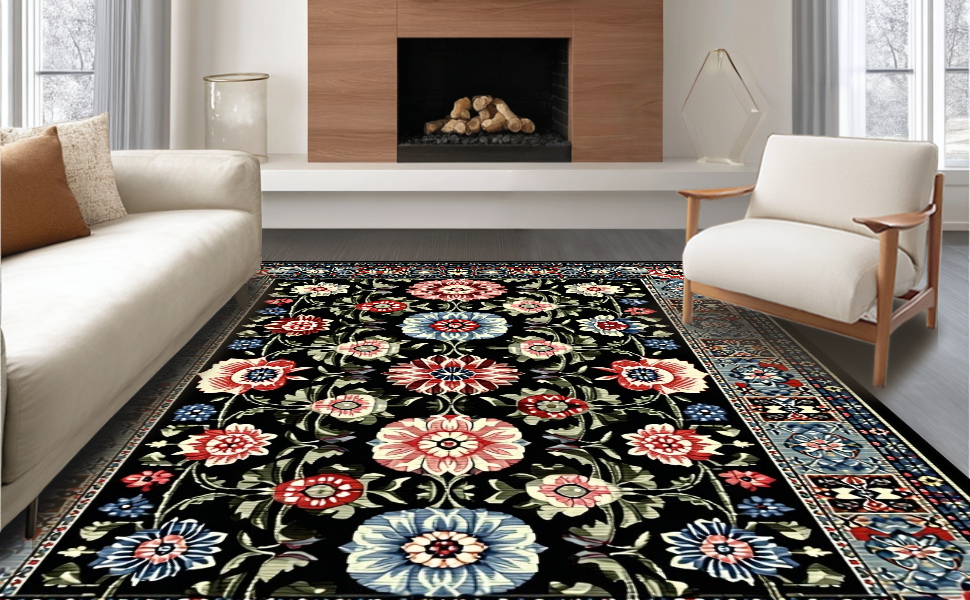Ultra Soft Area Rug, Non Slip, Stain Resistant, Washable Area Rugs for Living Room, Bedroom, Chic Floral Coastal Aesthetic(Black) Overview:
