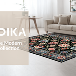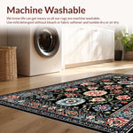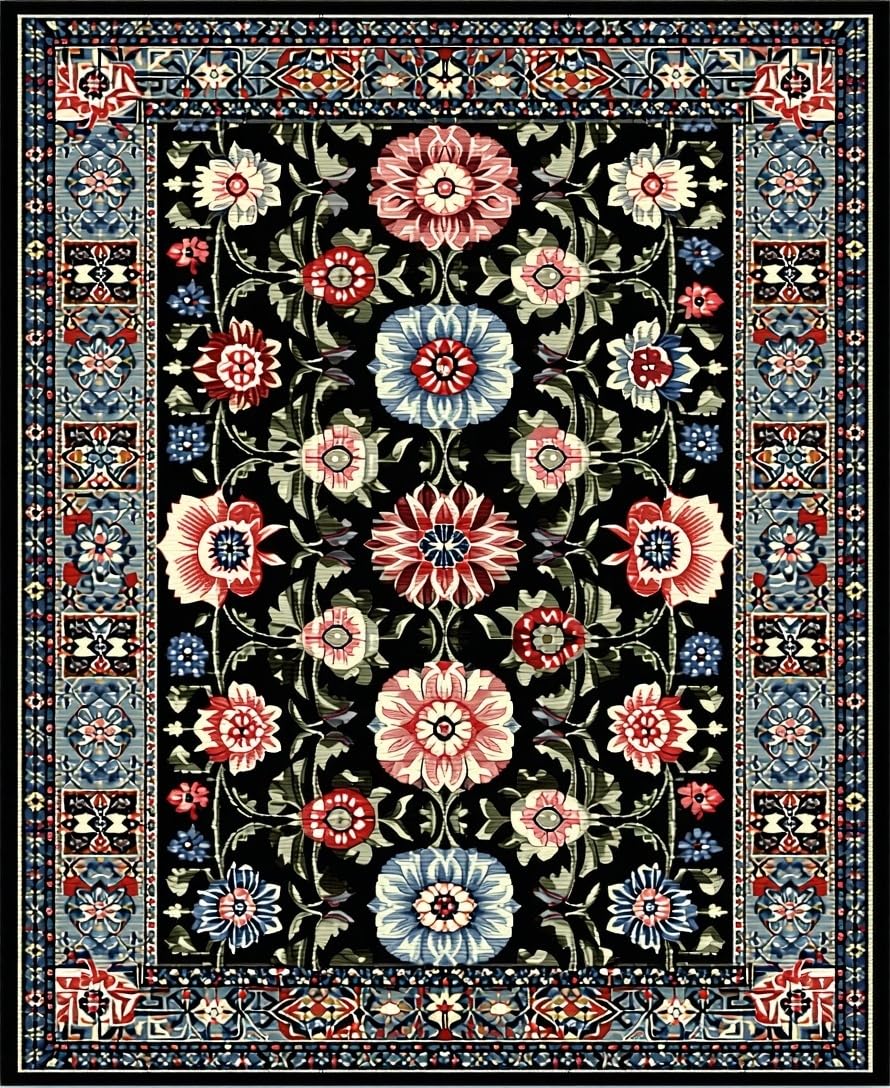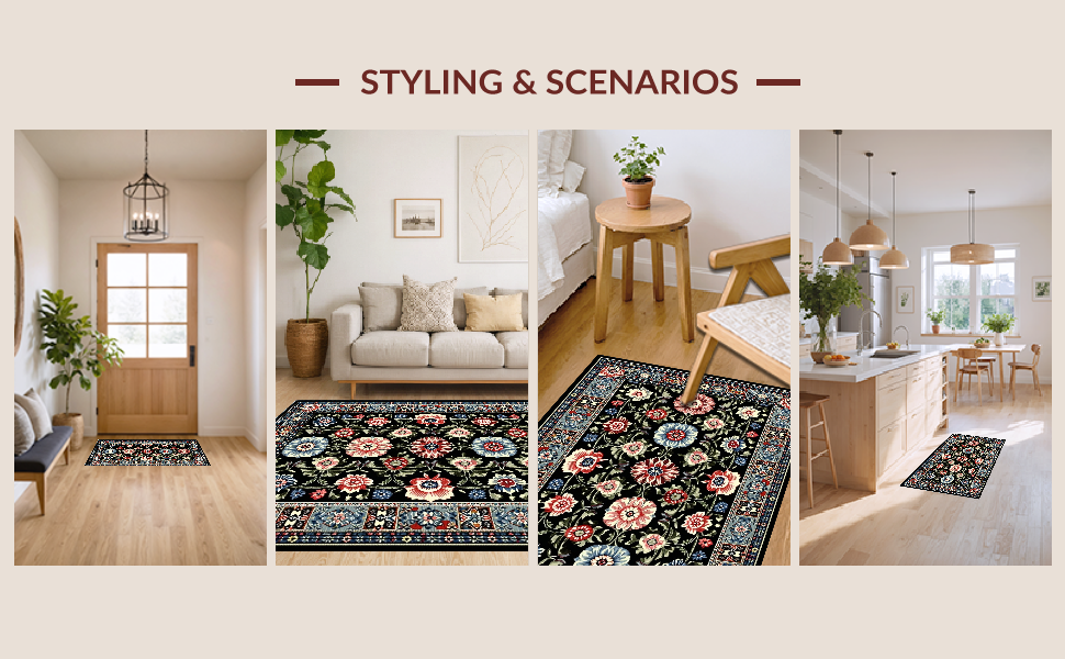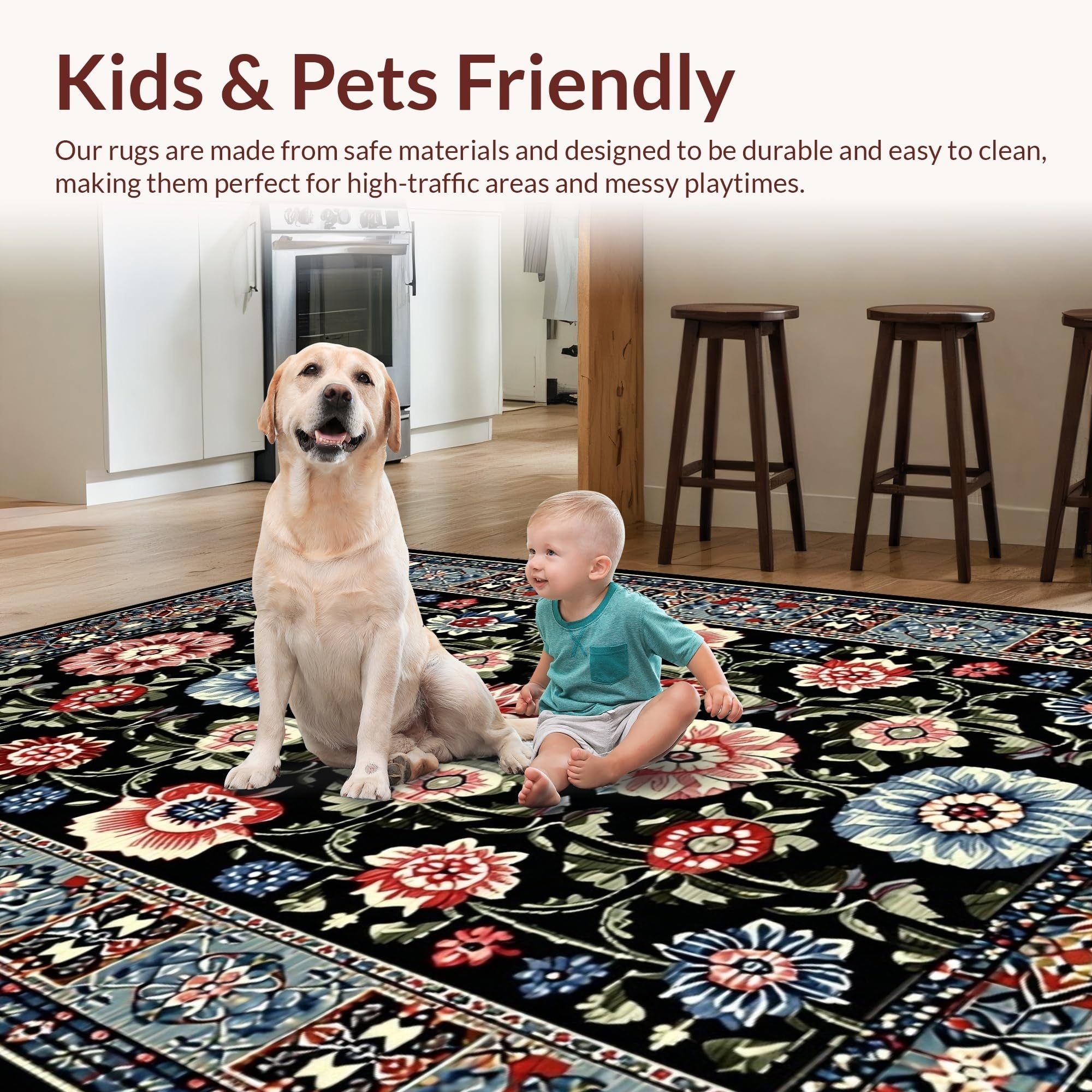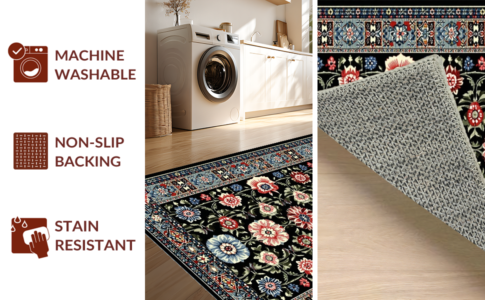Ultra Soft Area Rug, Non Slip, Stain Resistant, Washable Area Rugs for Living Room, Bedroom, Chic Floral Coastal Aesthetic(Black) Overview: