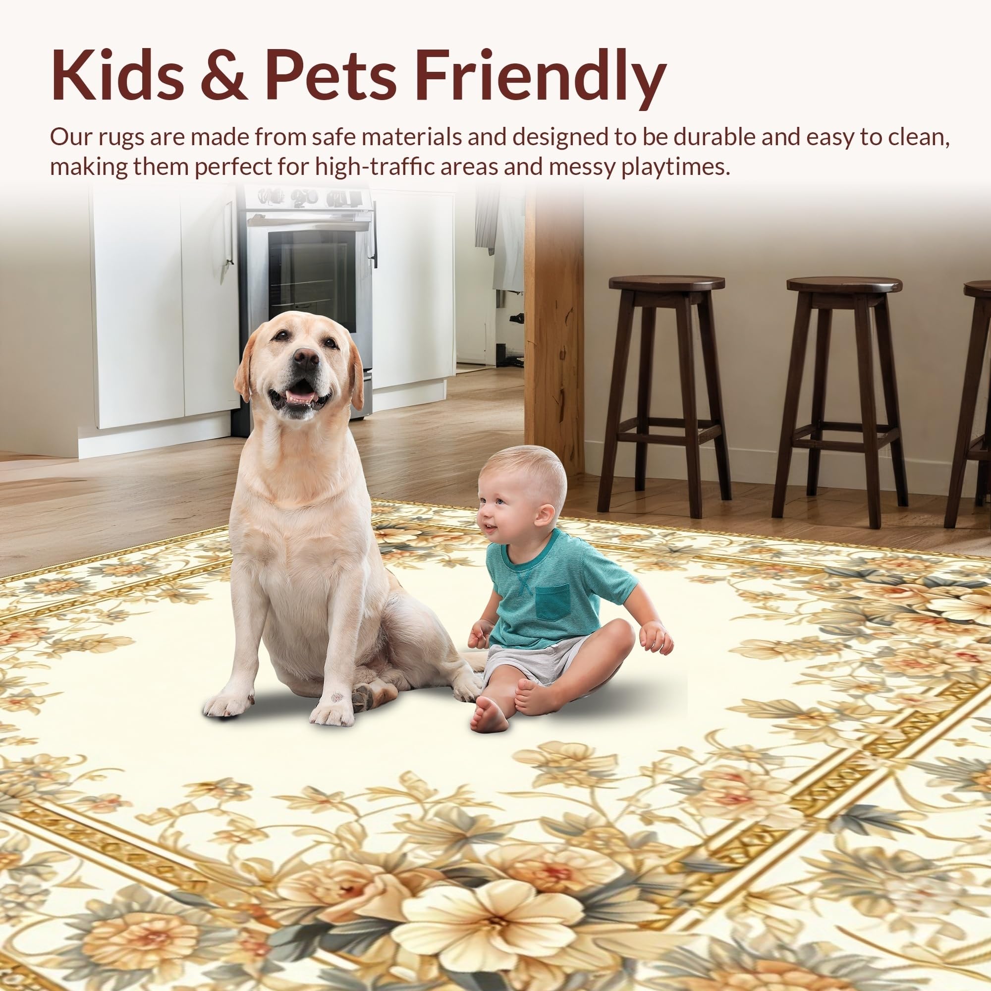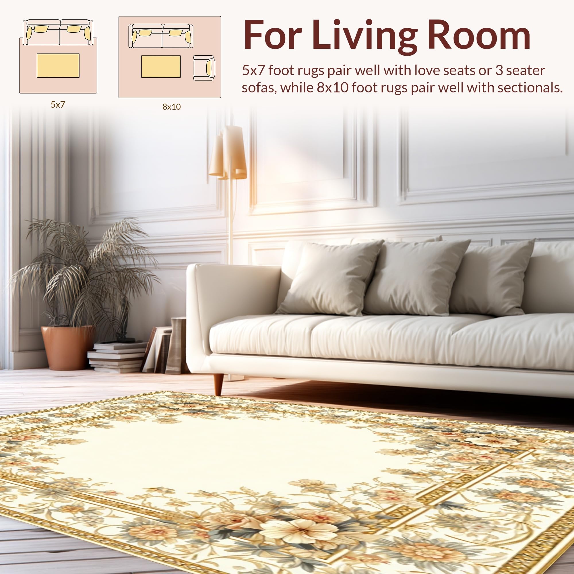 Ultra Soft Area Rug, Non Slip, Stain Resistant, Washable Area Rugs for Living Room, Bedroom, Chic Floral Design Area with Intricate Paisley(Beige) Overview: