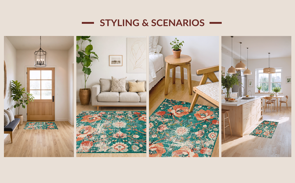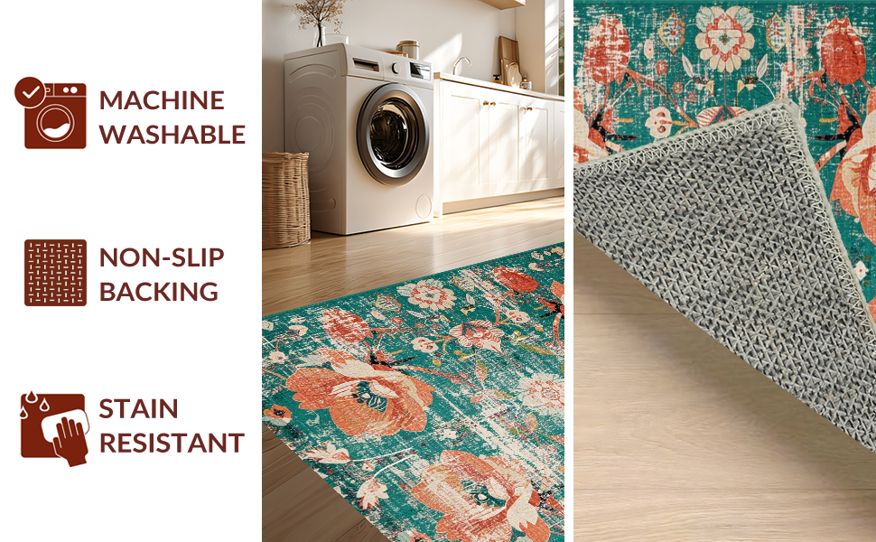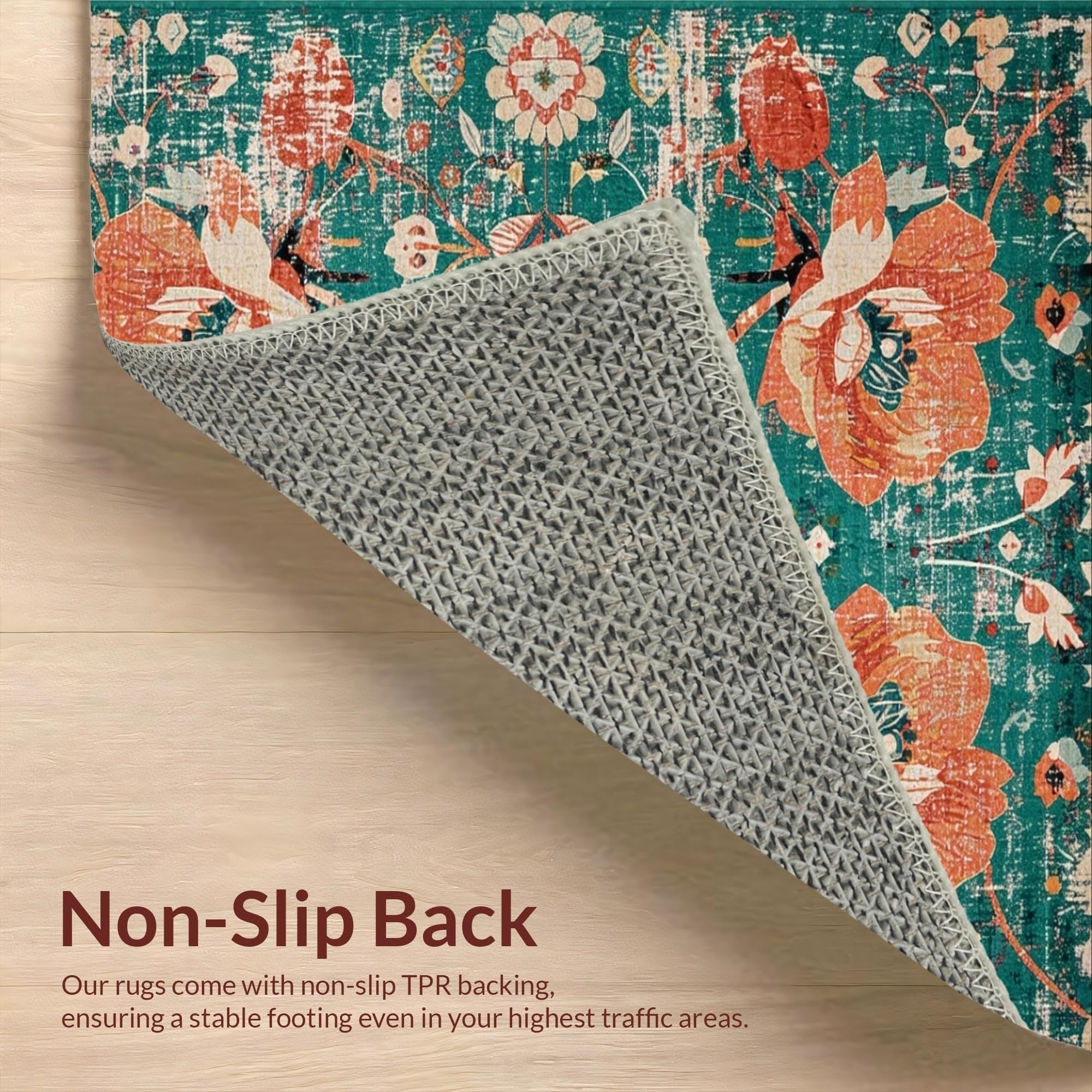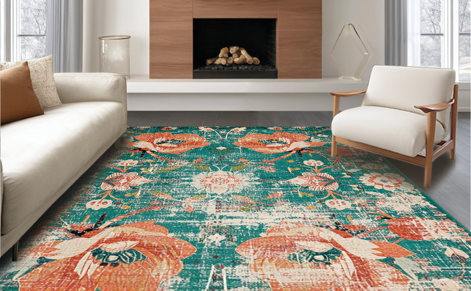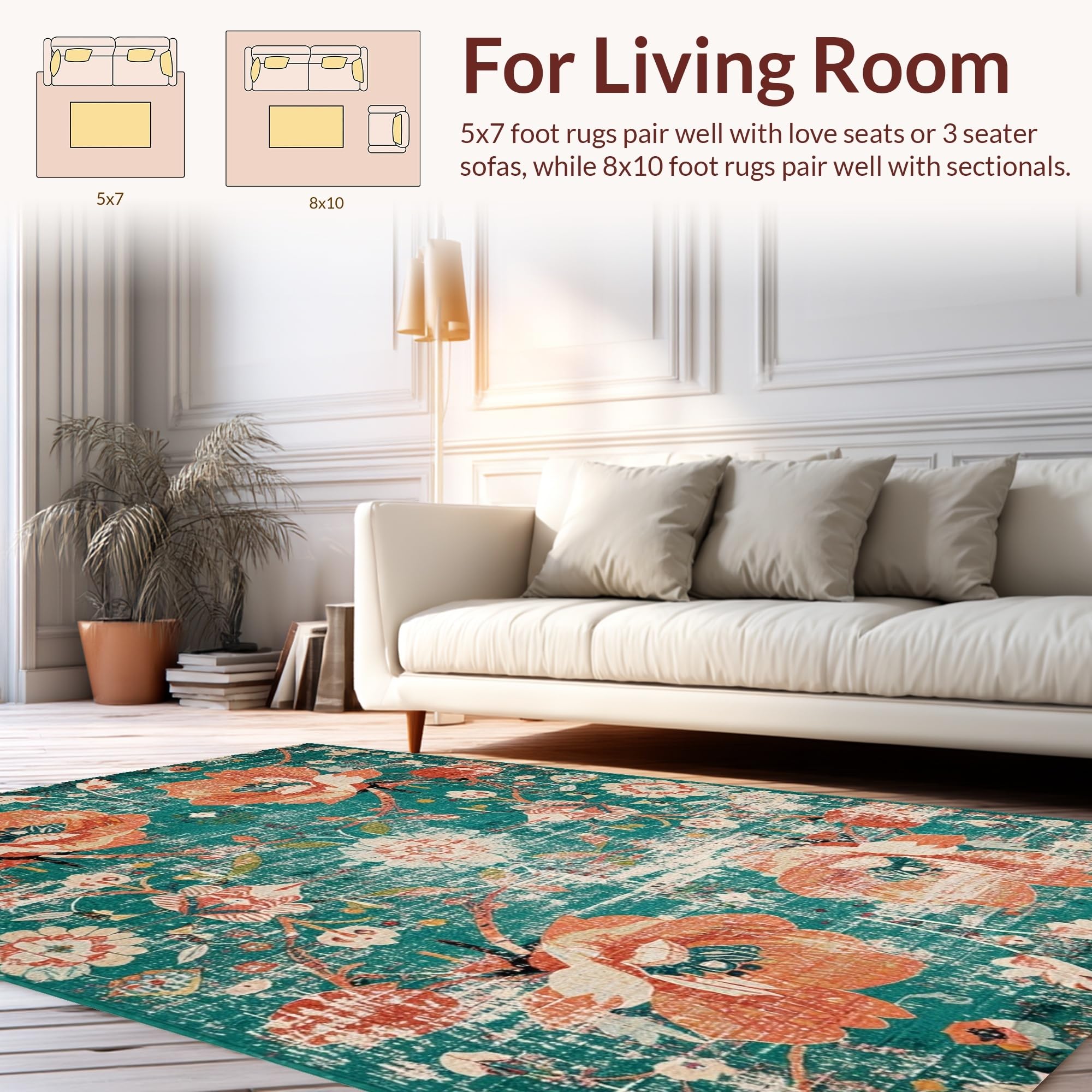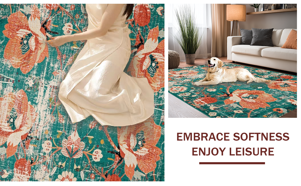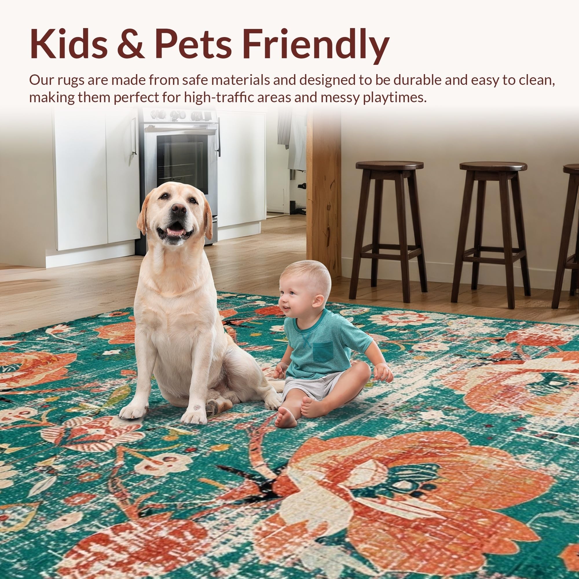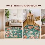 Ultra Soft Area Rug, Non Slip, Stain Resistant, Washable Area Rugs for Living Room, Bedroom, Chic Floral Geometric Fusion(Green) Overview: