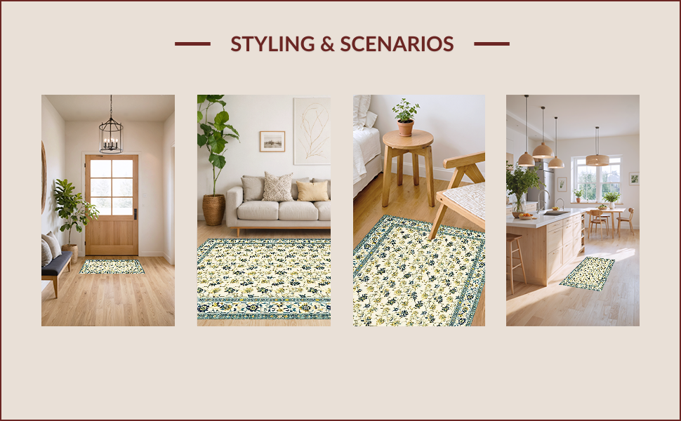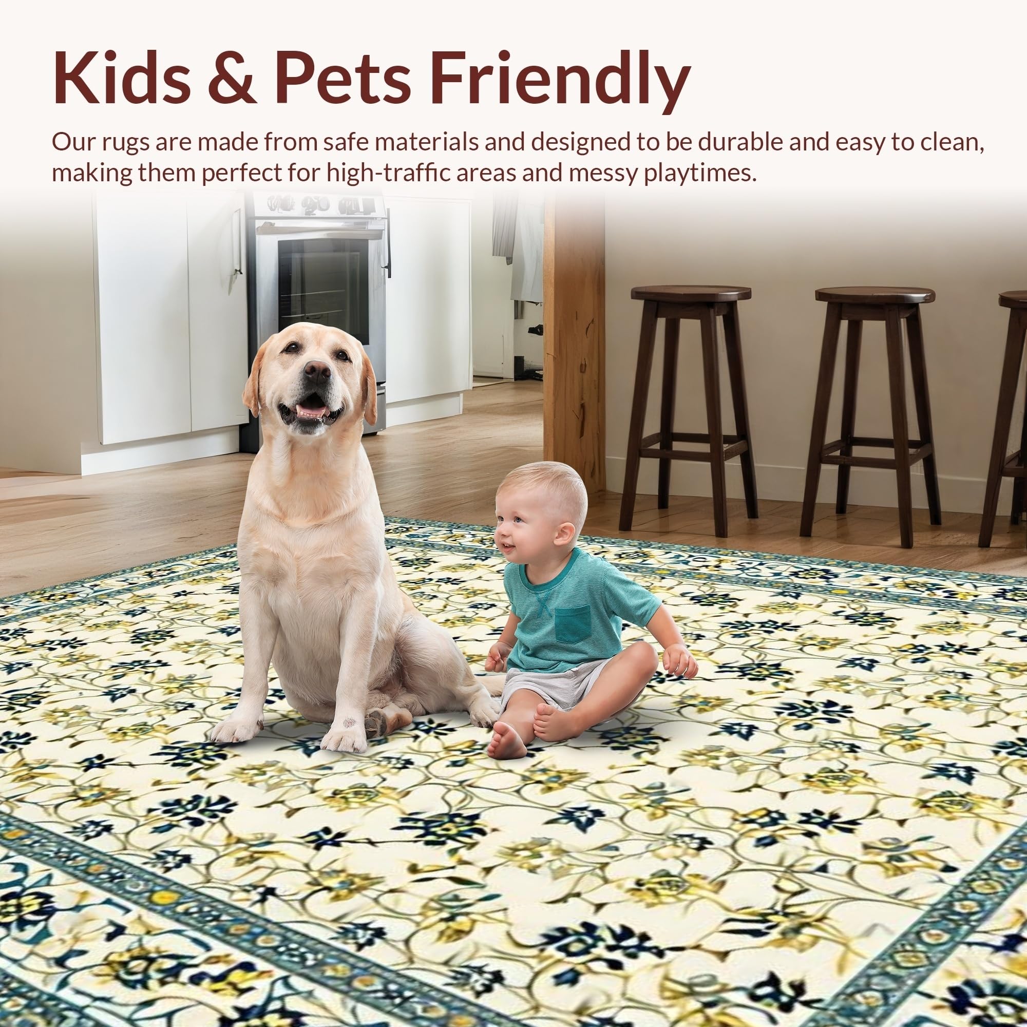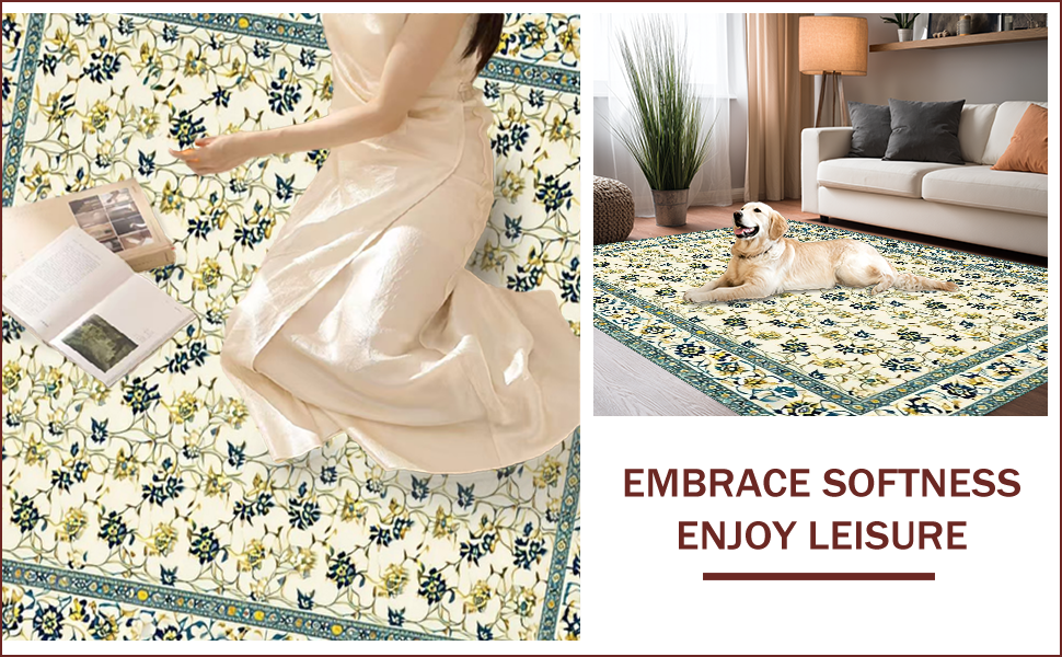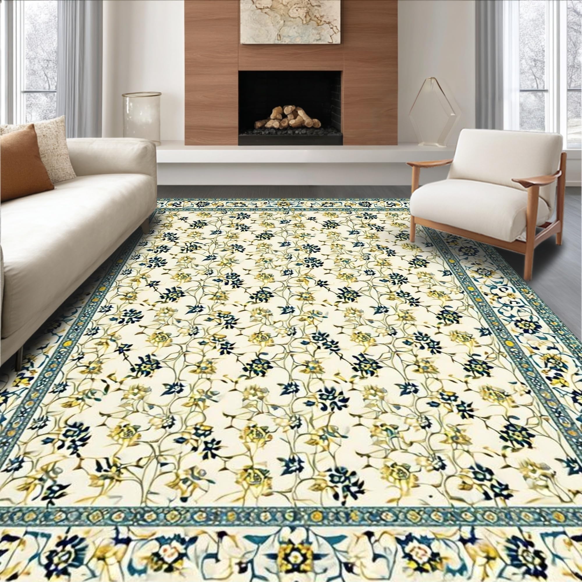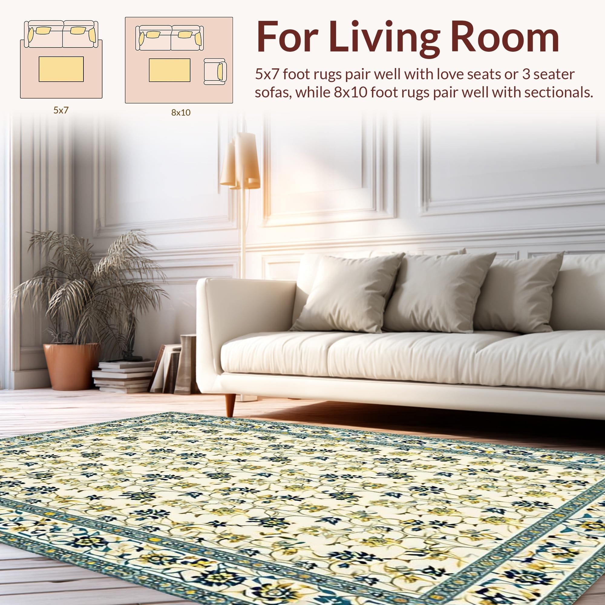 Ultra Soft Area Rug, Non Slip, Stain Resistant, Washable Area Rugs for Living Room, Bedroom, Chic Floral Modern Aesthetic(Ivory) Overview: