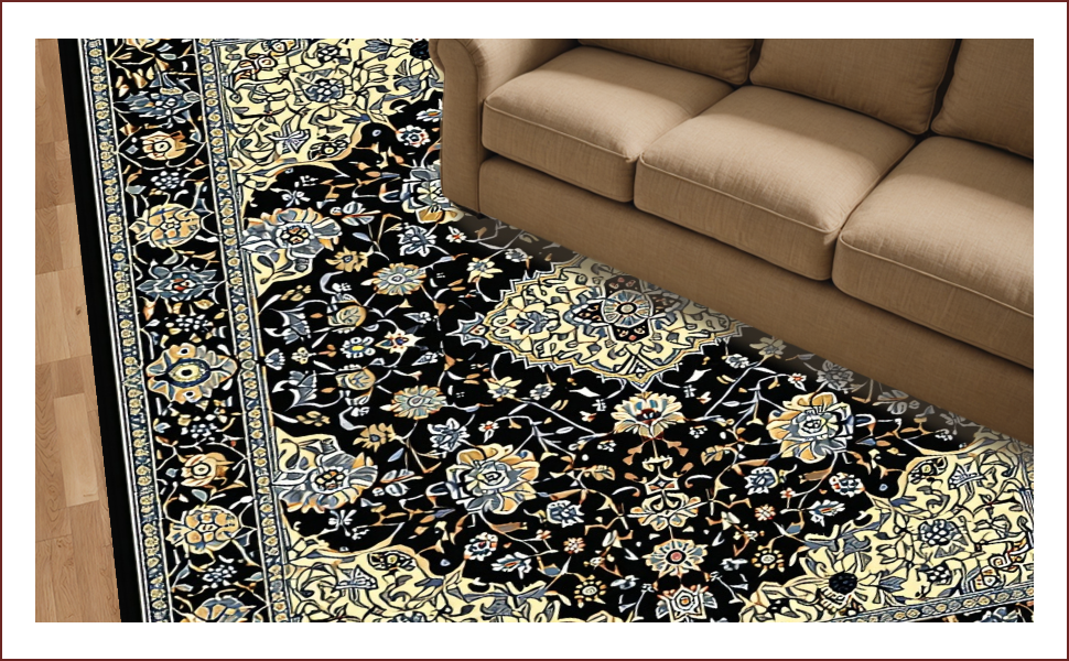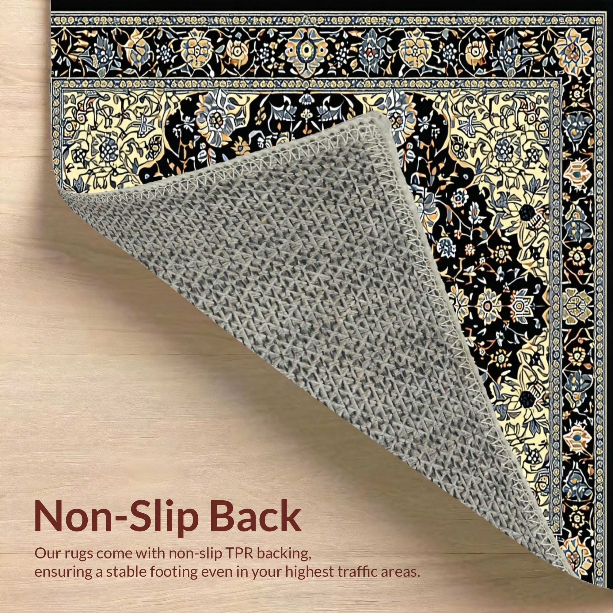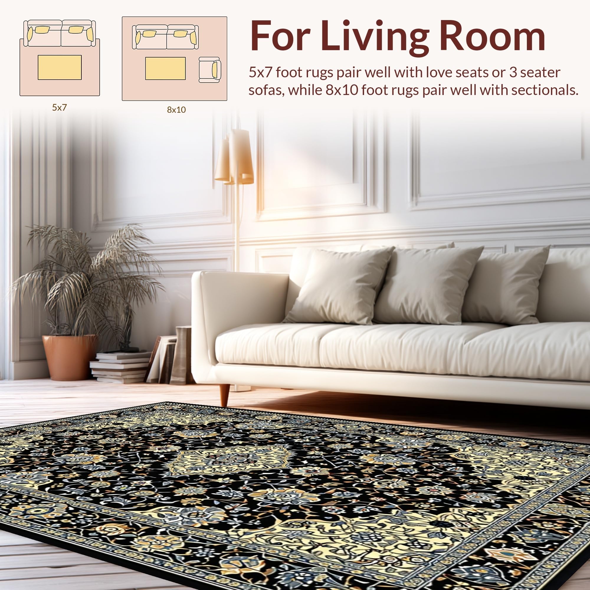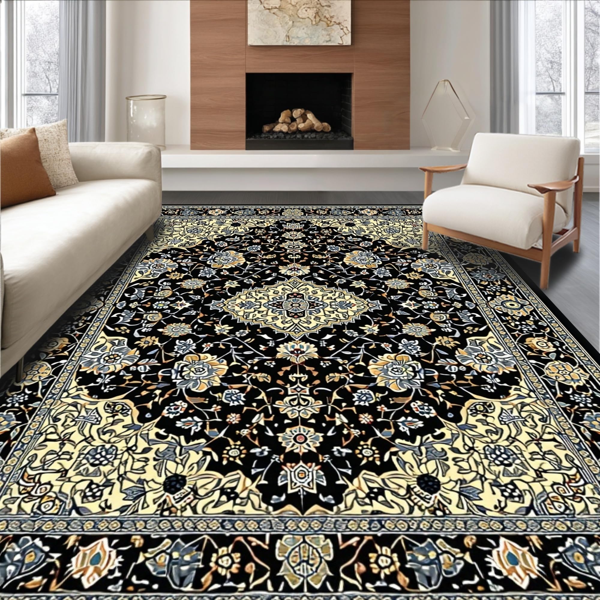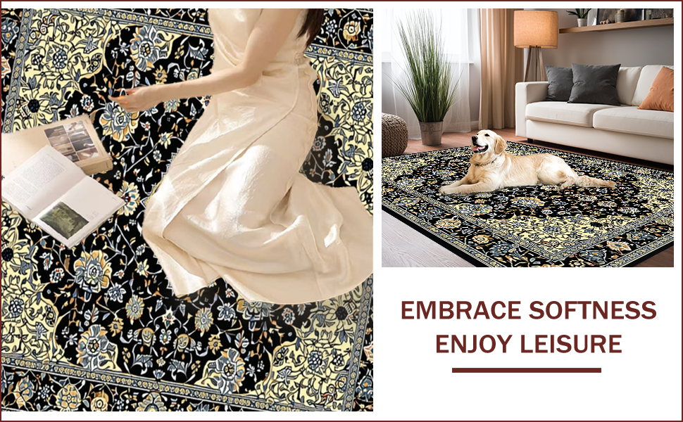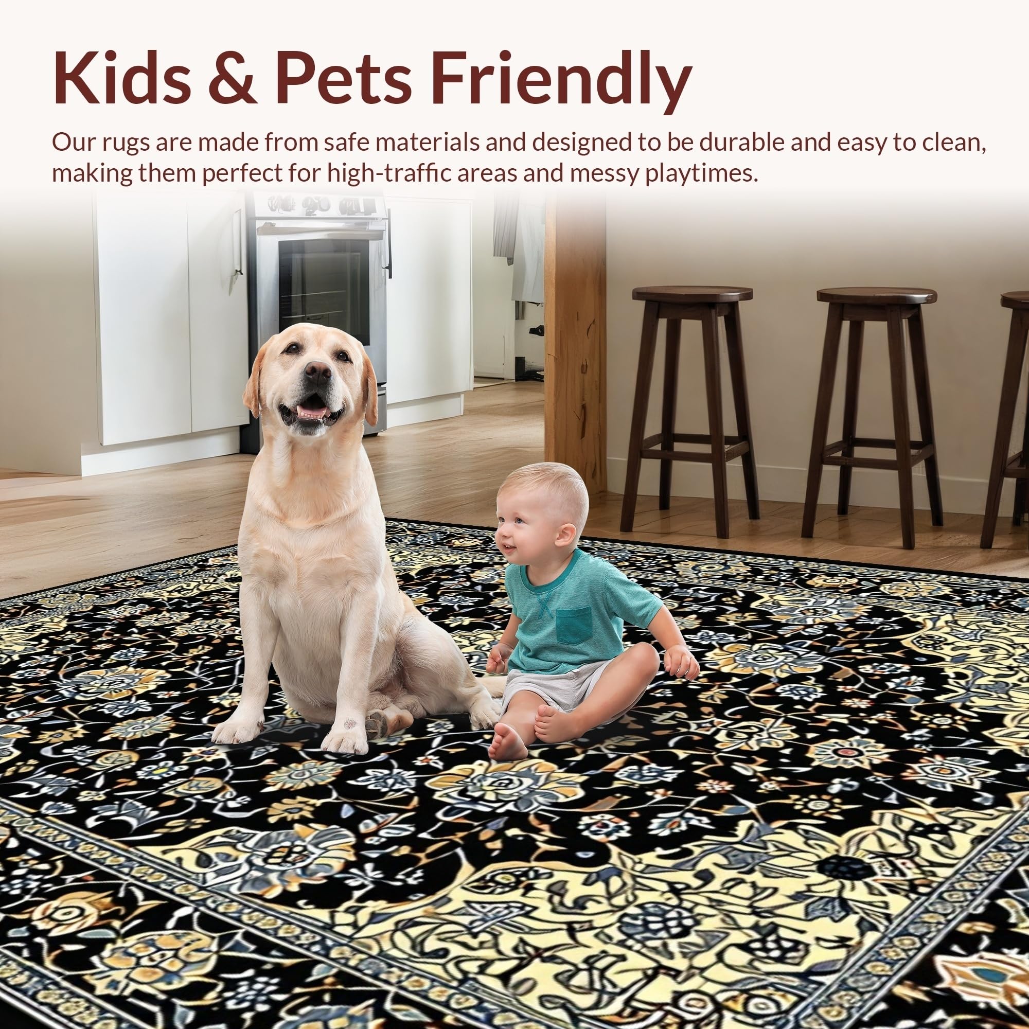 Ultra Soft Area Rug, Non Slip, Stain Resistant, Washable Area Rugs for Living Room, Bedroom, Chic Floral Paisley Elegance(Black) Overview: