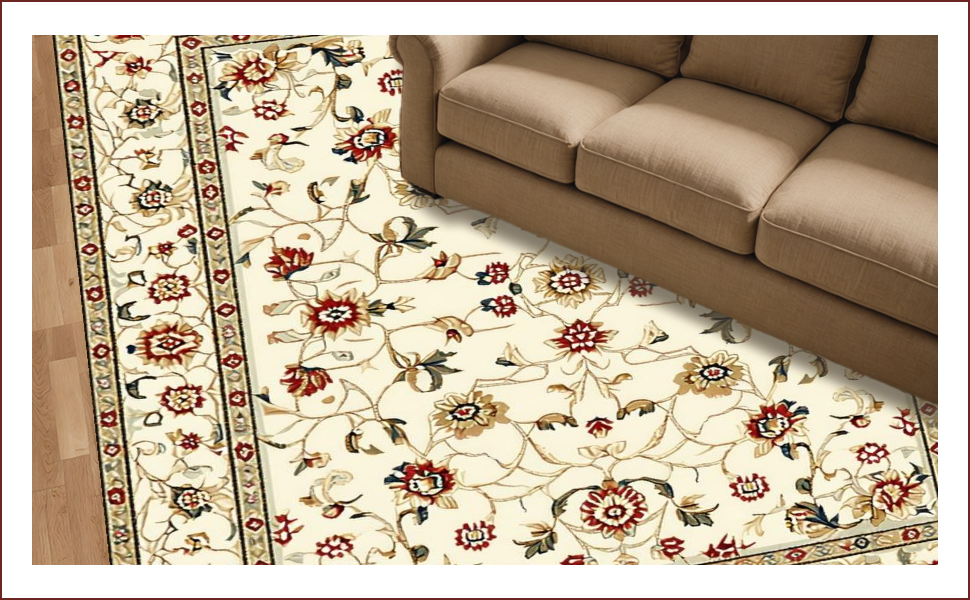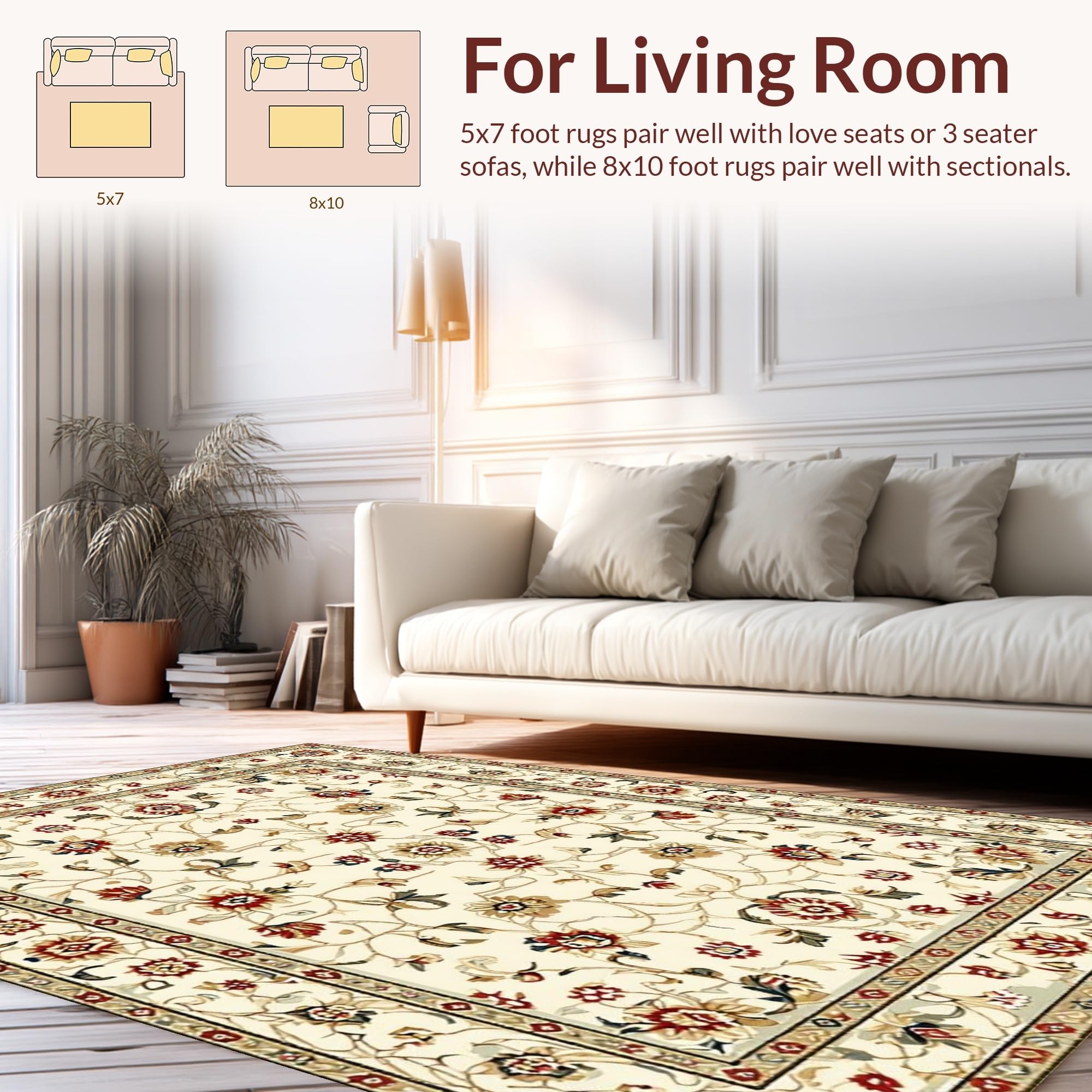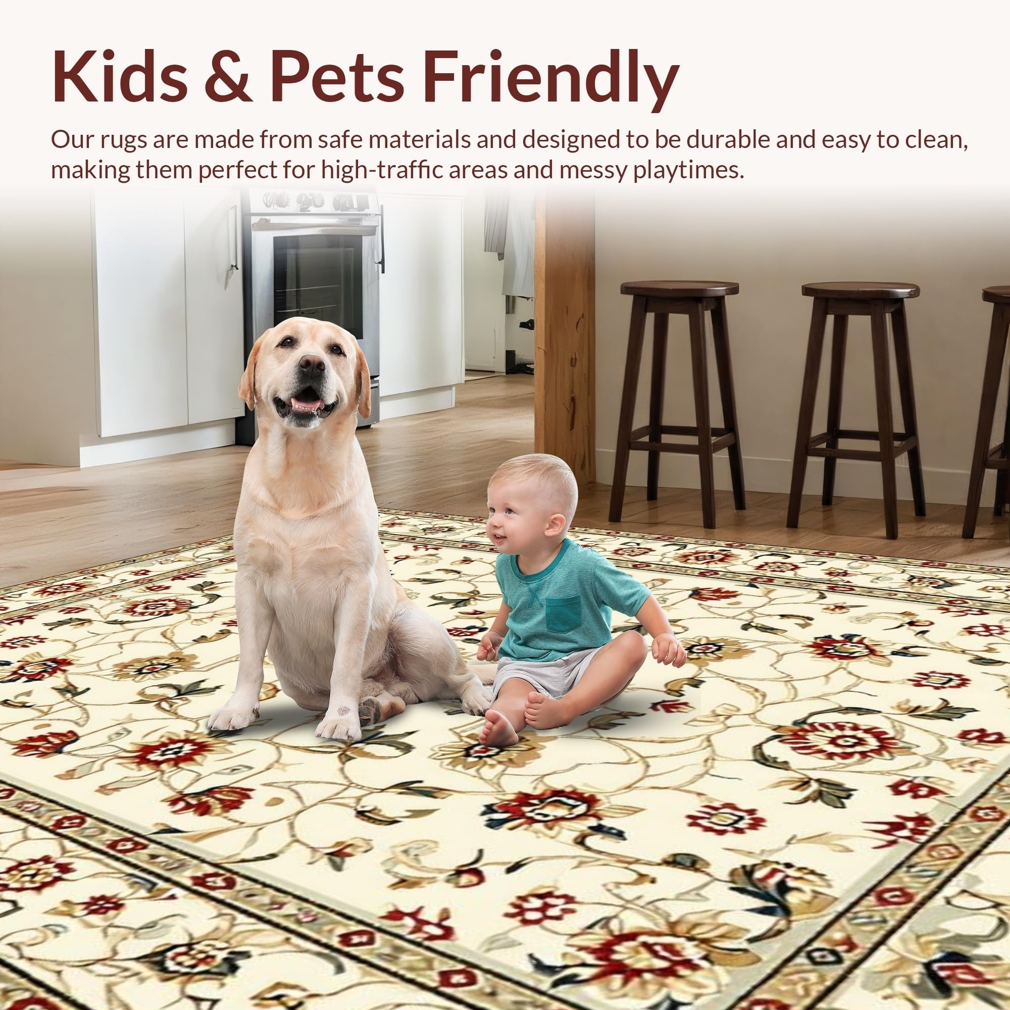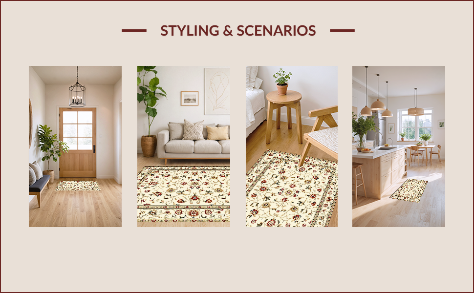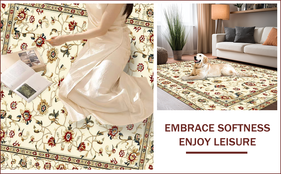 Ultra Soft Area Rug, Non Slip, Stain Resistant, Washable Area Rugs for Living Room, Bedroom, Chic Floral Vintage Charm(Beige) Overview:
