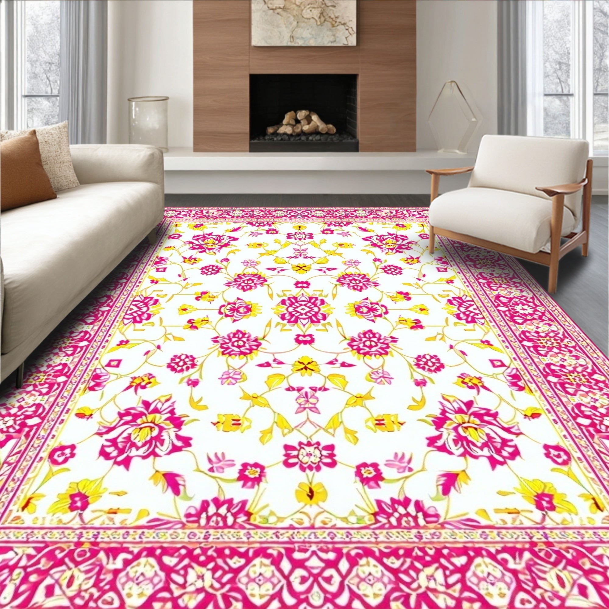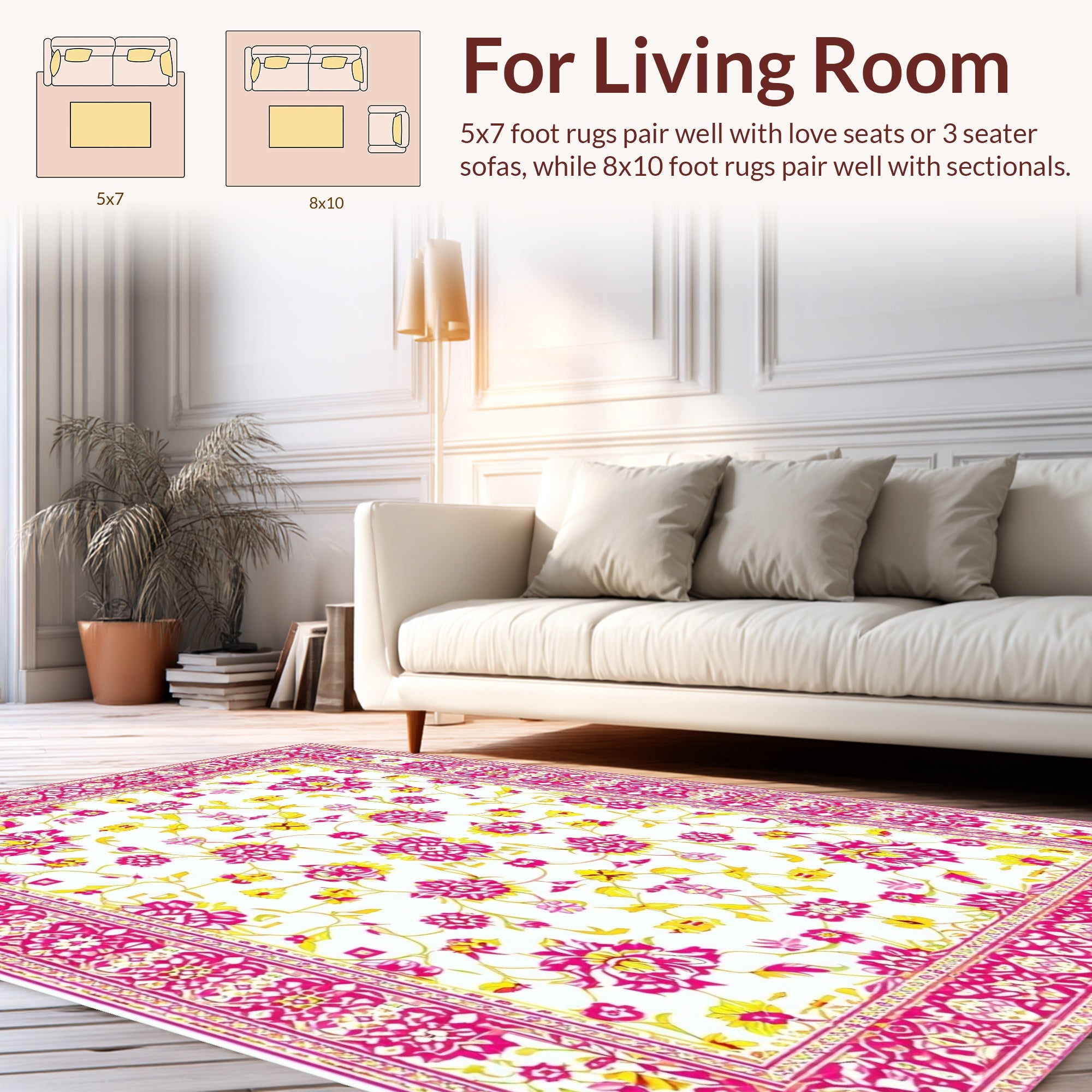 Flatwoven High Traffic Area Rug, Chic Floral Vintage Elegance, Non Slip, Stain Resistant, Washable Area Rugs for Living Room, Bedroom (White) Overview: