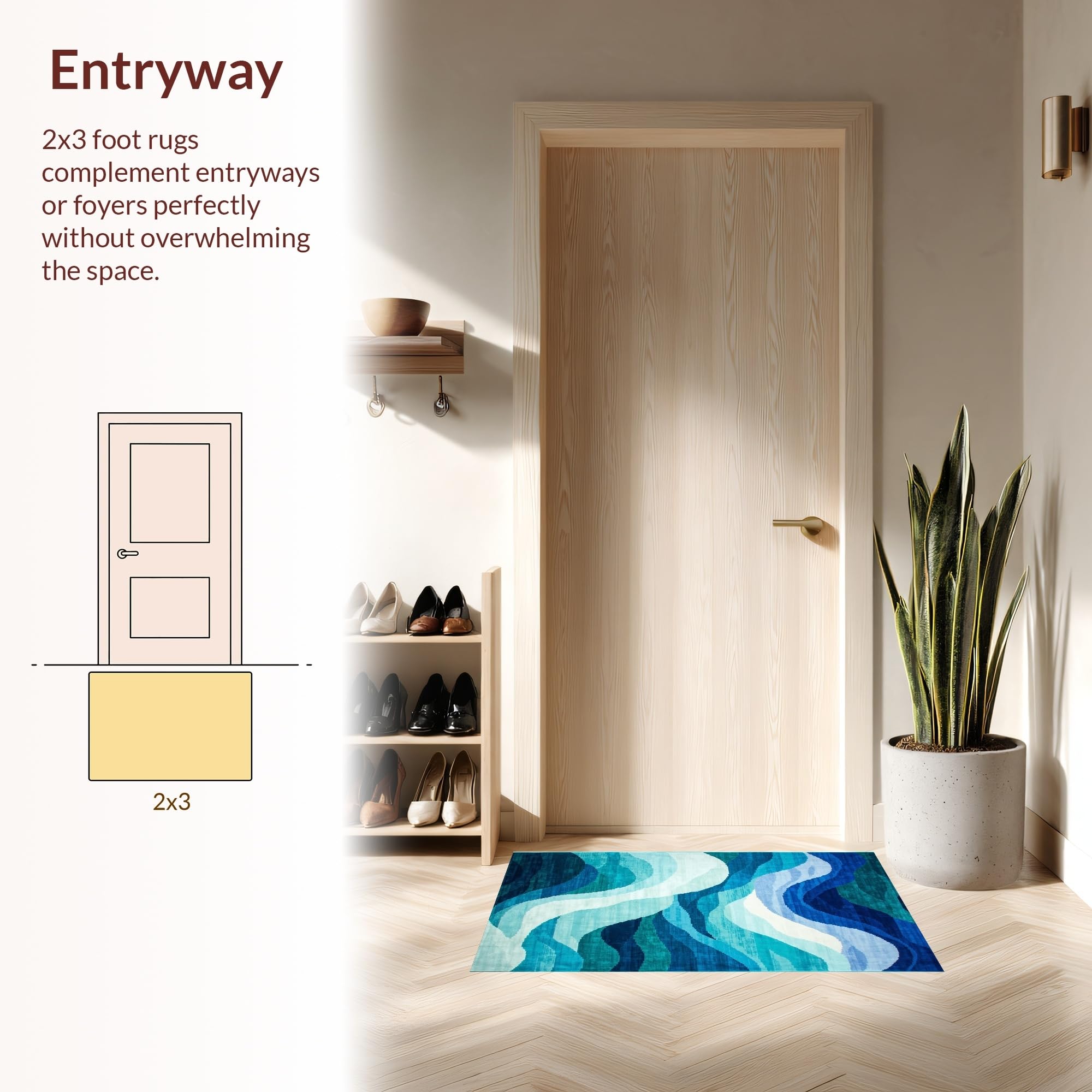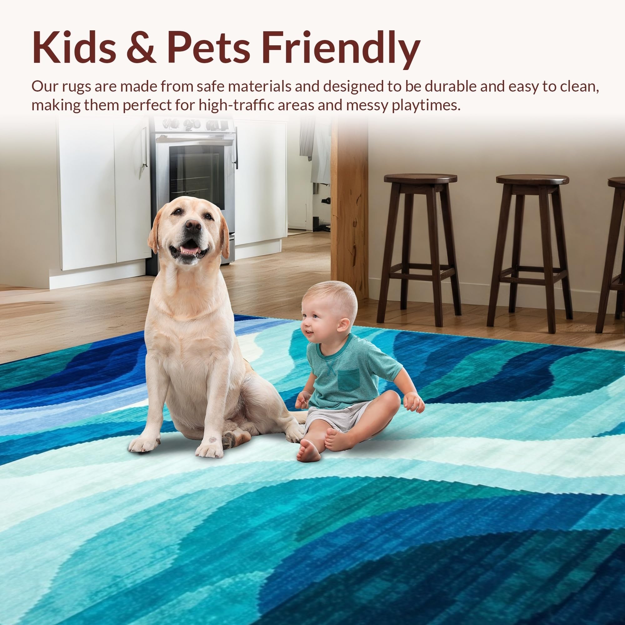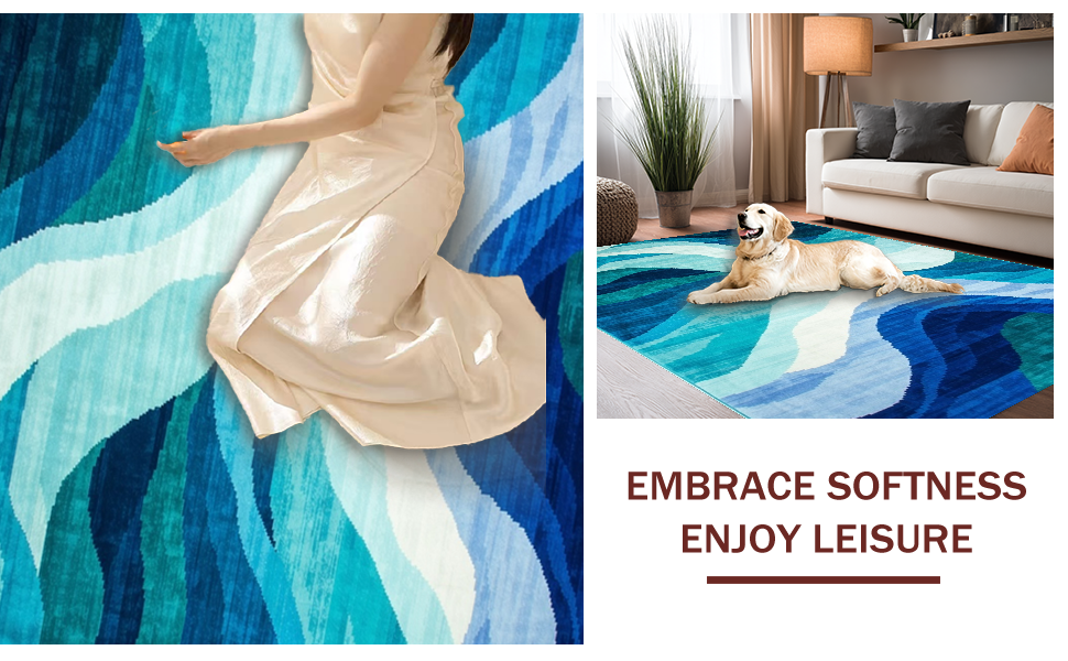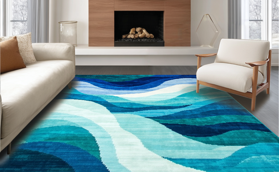 Ultra Soft Area Rug, Non Slip, Stain Resistant, Washable Area Rugs for Living Room, Bedroom, Chic Fluid Wave Arrangement(Blue) Overview: