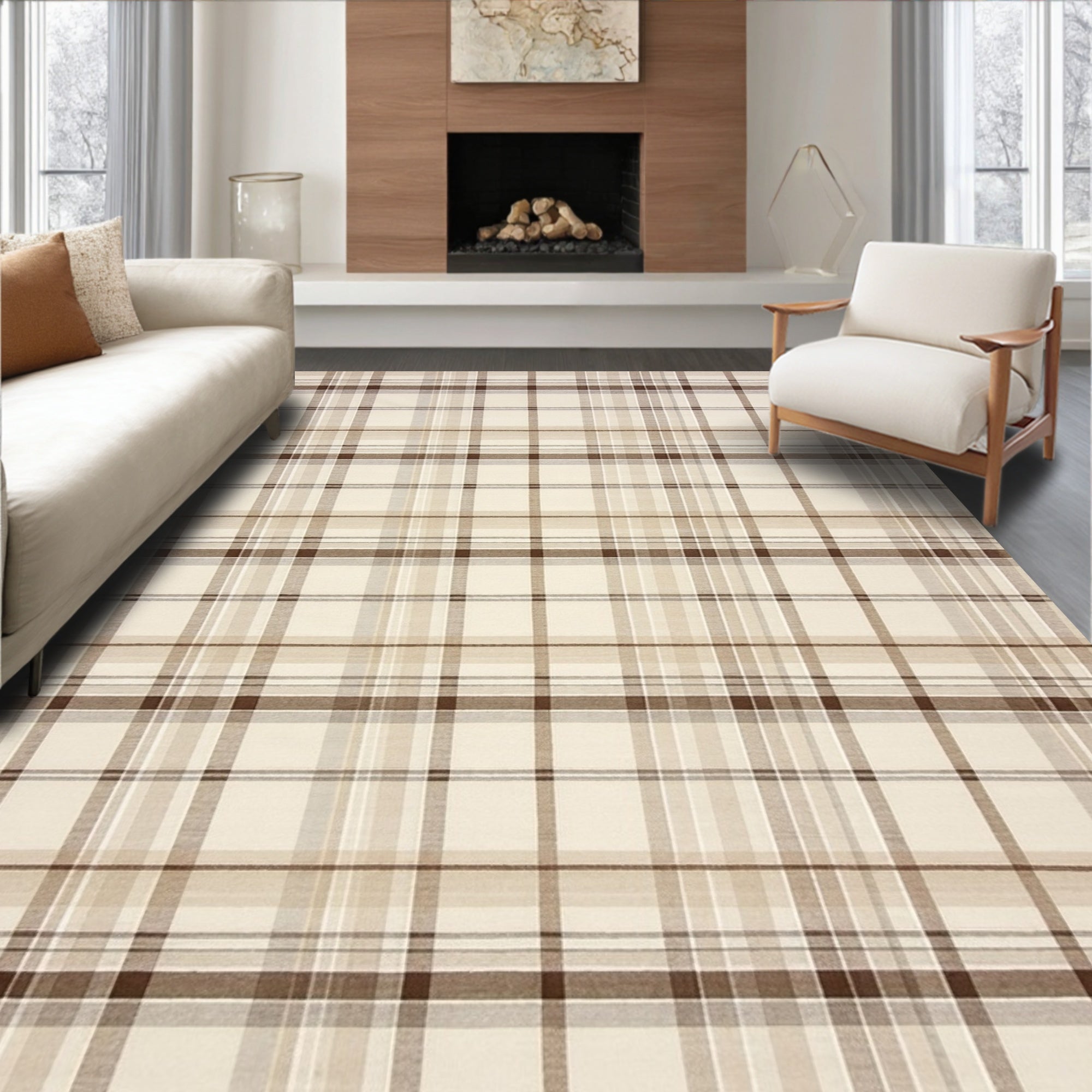 Ultra Soft Area Rug, Non Slip, Stain Resistant, Washable Area Rugs for Living Room, Bedroom, Chic Geometric Area With Modern Plaid Design In Beige And Cream(Beige) Overview: