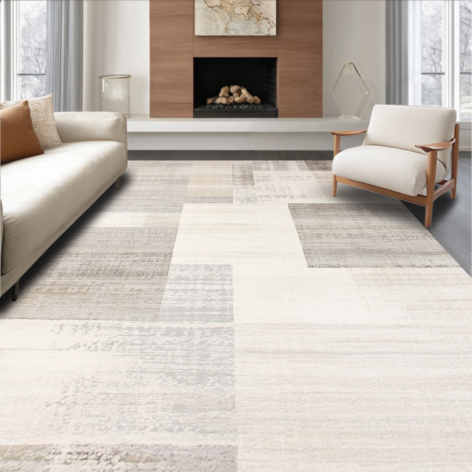 Ultra Soft Area Rug, Non Slip, Stain Resistant, Washable Area Rugs for Living Room, Bedroom, Chic Geometric Beige with Abstract Patterned Distress Effects(Gray) Overview: