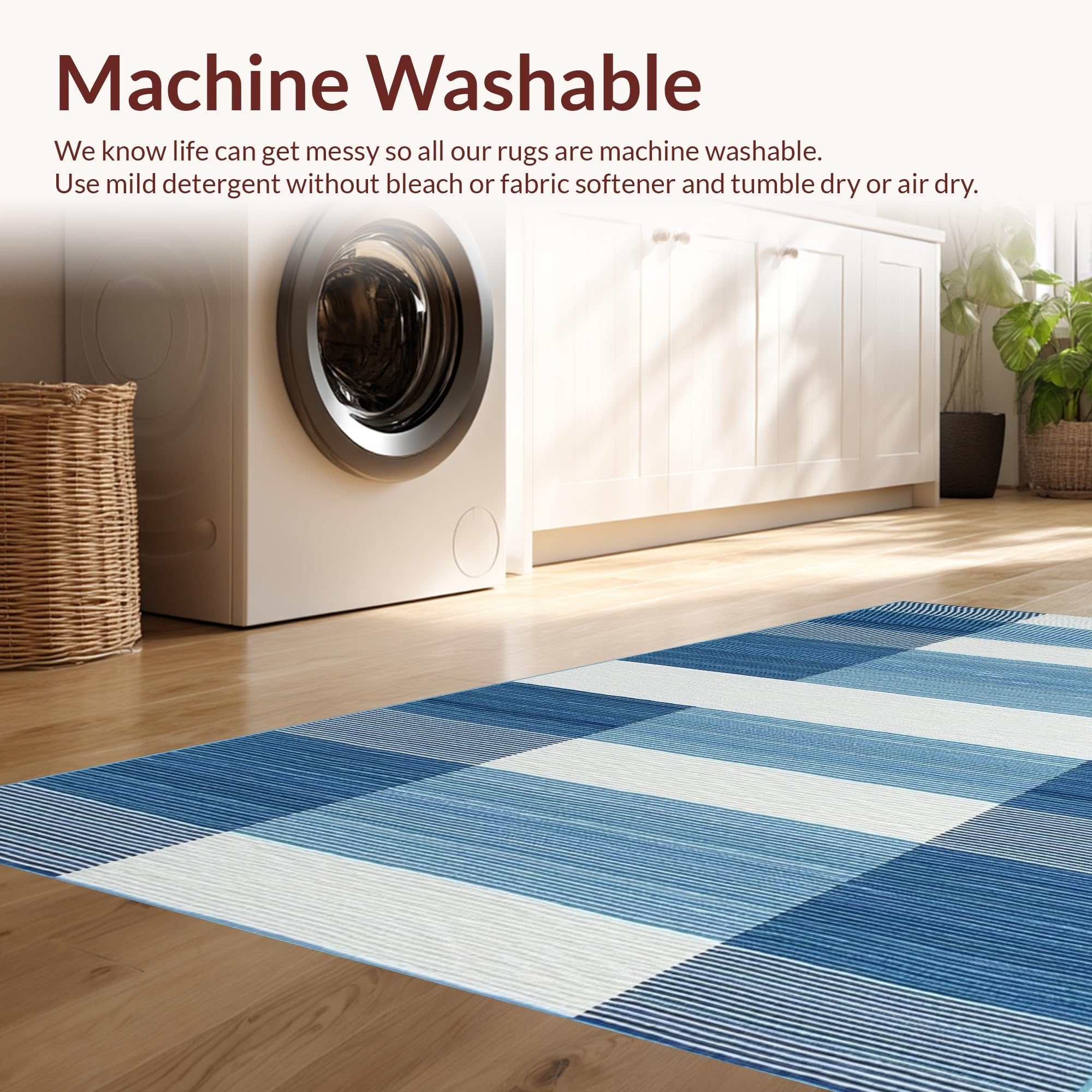 - Machine Washable: Our rugs can be easily thrown in the wash machine.
