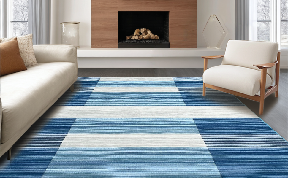Ultra Soft Area Rug, Non Slip, Stain Resistant, Washable Area Rugs for Living Room, Bedroom, Chic Geometric Blue Tones(Blue) Overview: