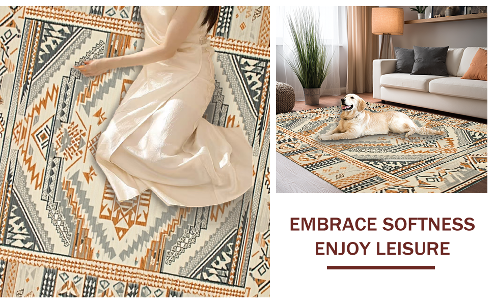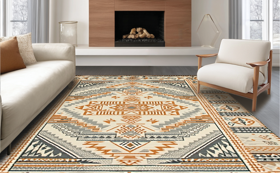 Ultra Soft Area Rug, Non Slip, Stain Resistant, Washable Area Rugs for Living Room, Bedroom, Chic Geometric Coastal Vibe(Beige) Overview: