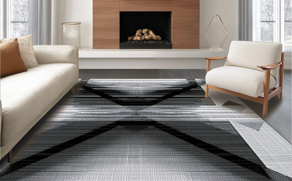 Ultra Soft Area Rug, Non Slip, Stain Resistant, Washable Area Rugs for Living Room, Bedroom, Chic Geometric Diamond Motif(Gray) Overview: