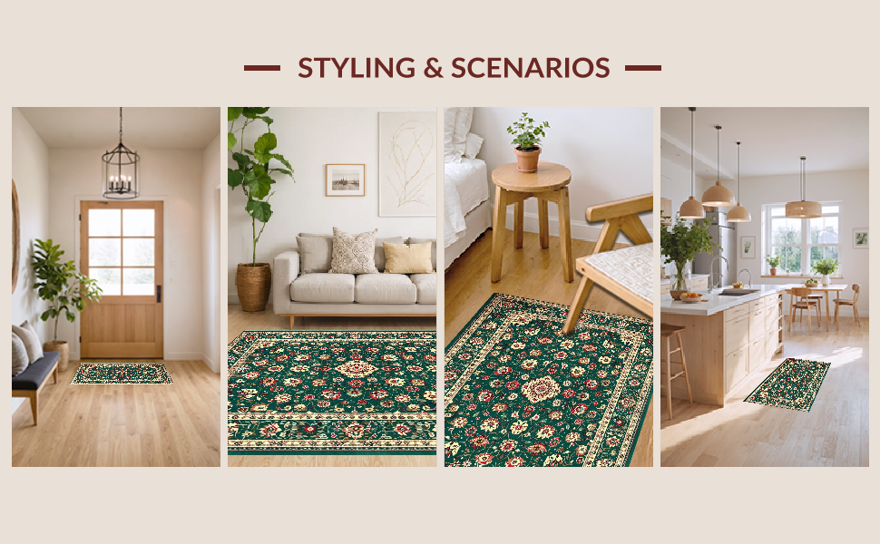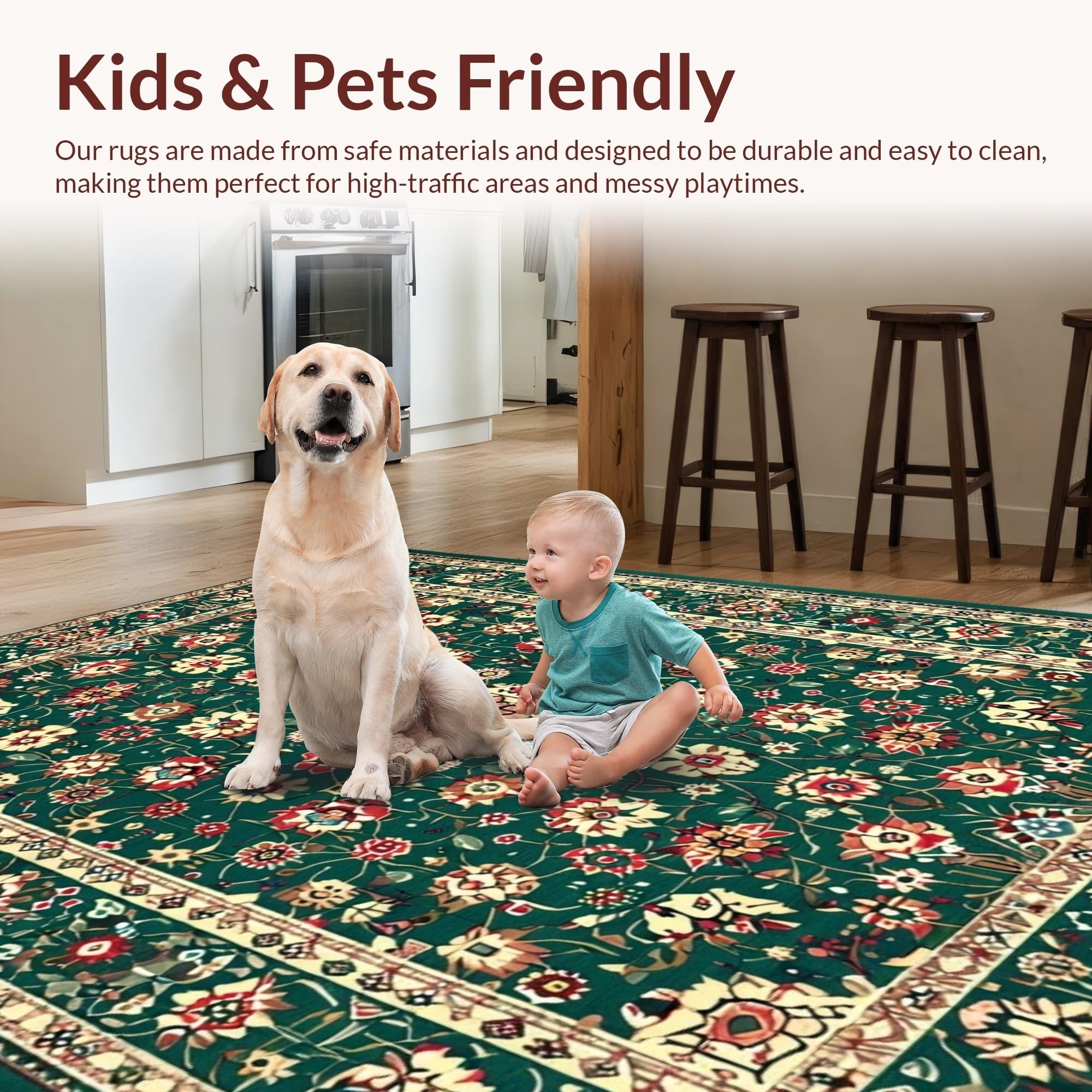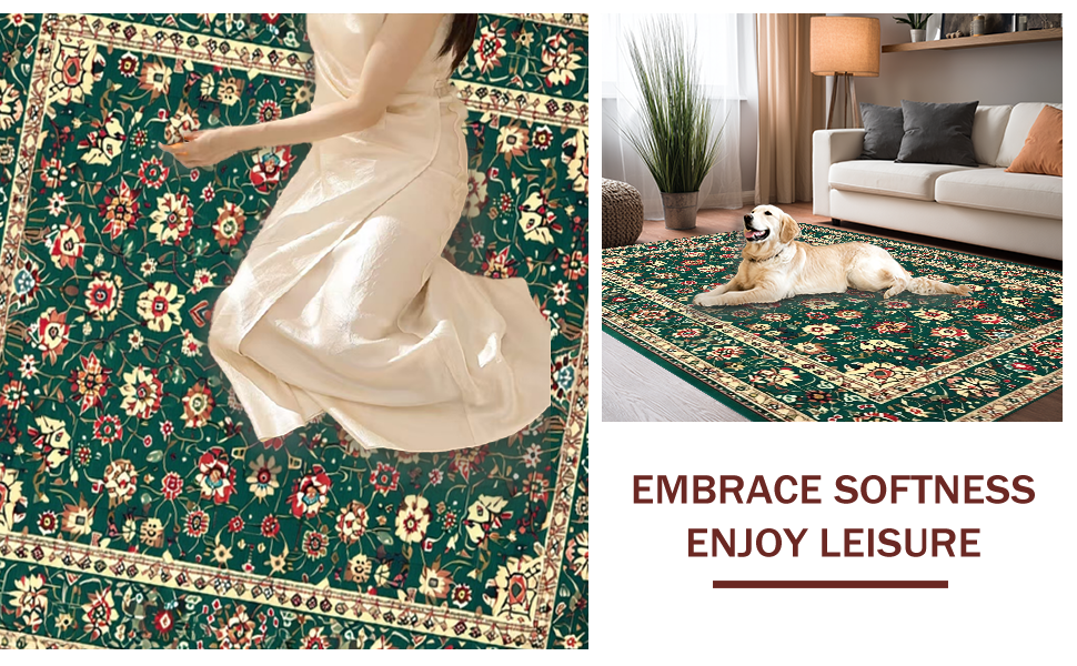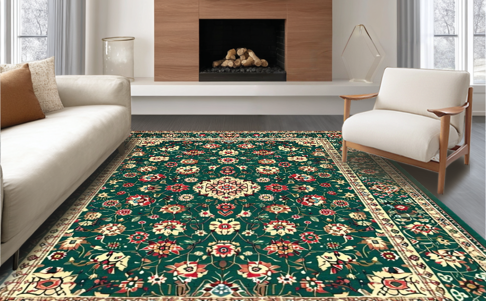 Ultra Soft Area Rug, Non Slip, Stain Resistant, Washable Area Rugs for Living Room, Bedroom, Chic Geometric Green Patterns(Green) Overview: