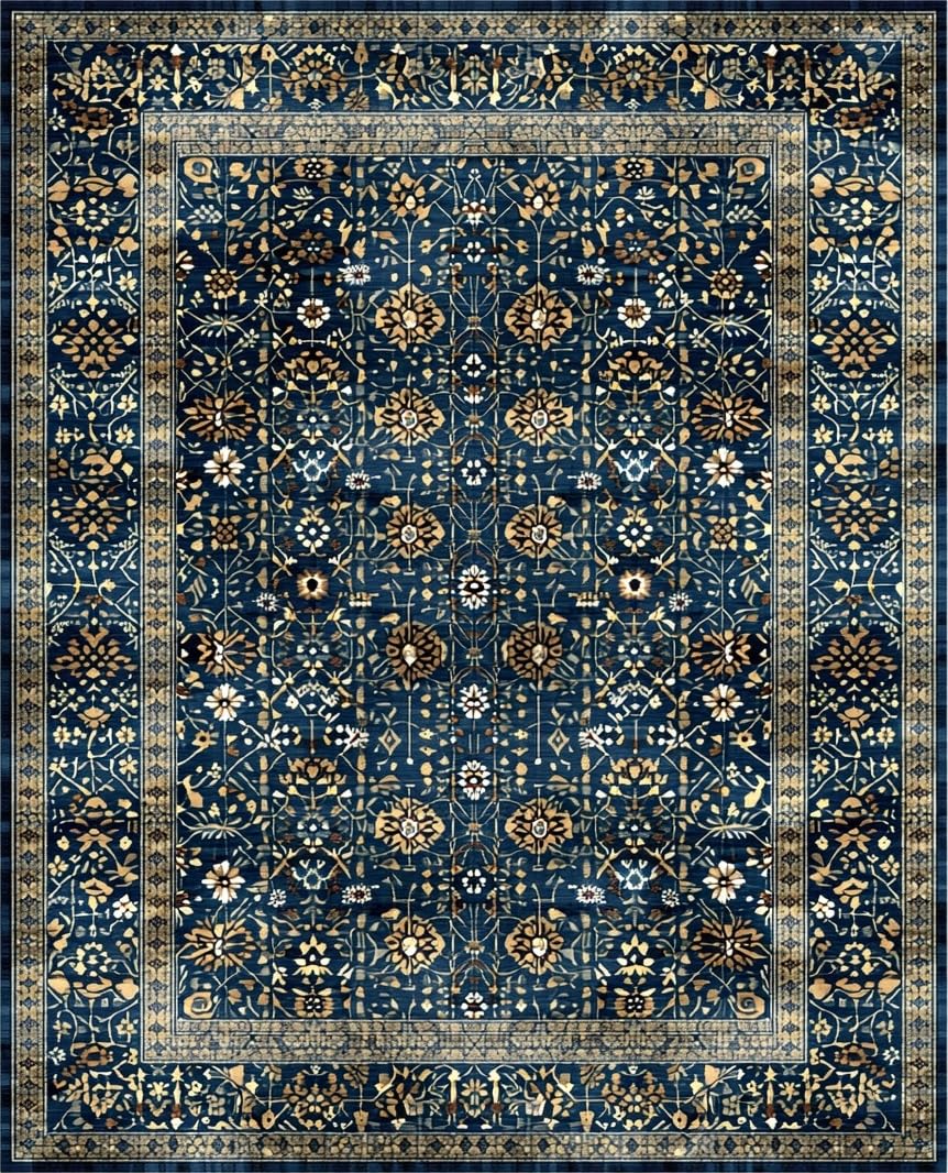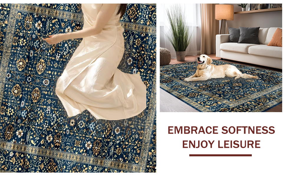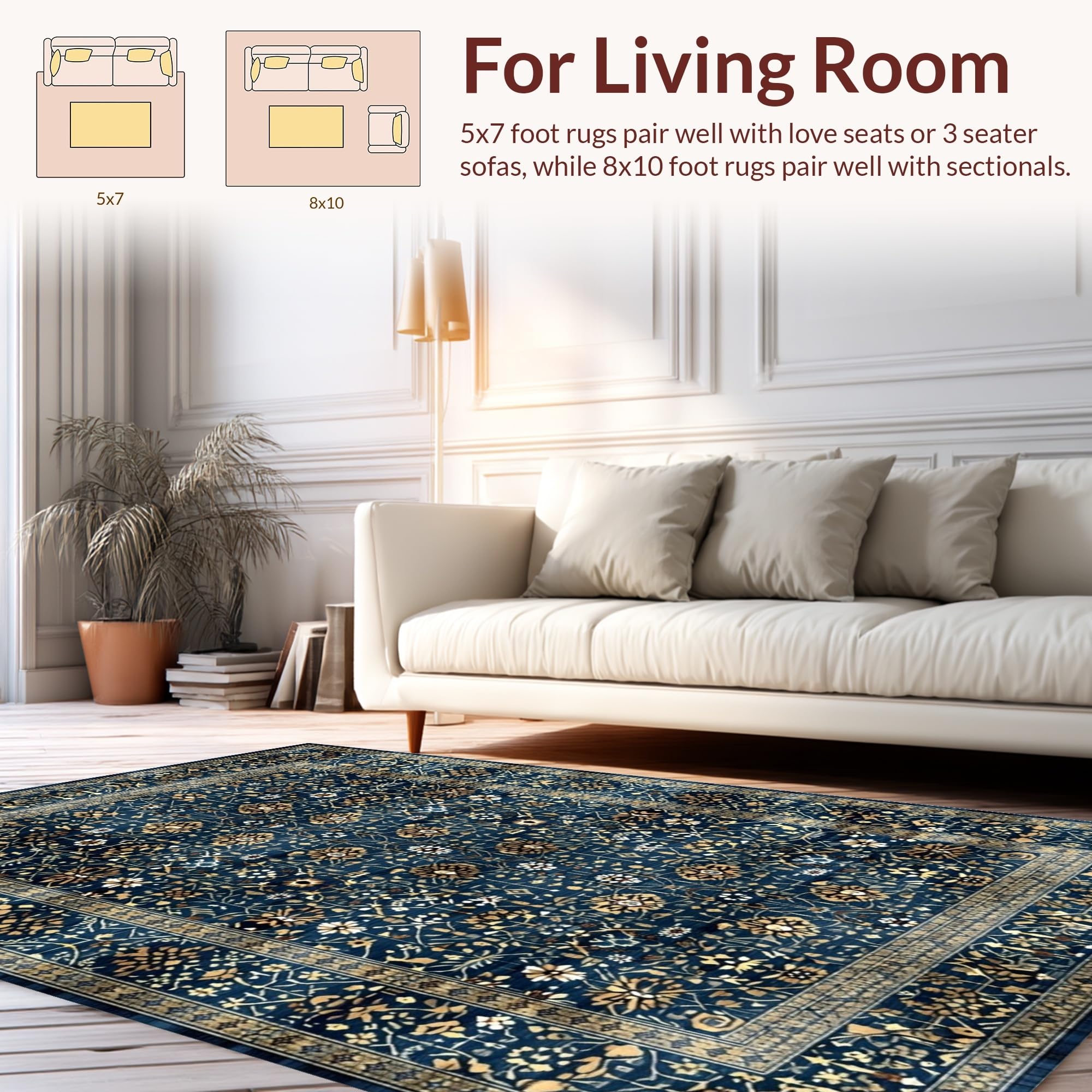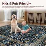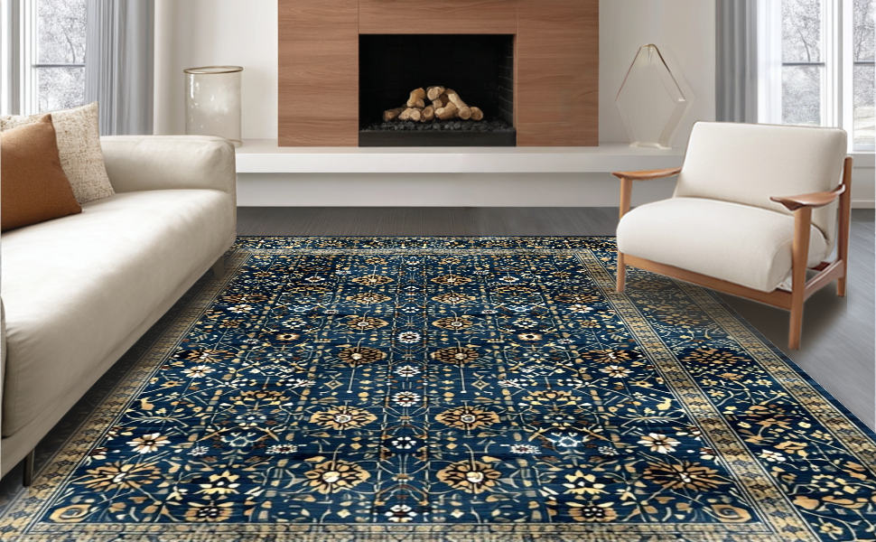 Ultra Soft Area Rug, Non Slip, Stain Resistant, Washable Area Rugs for Living Room, Bedroom, Chic Geometric Medallion Aesthetic(Blue) Overview: