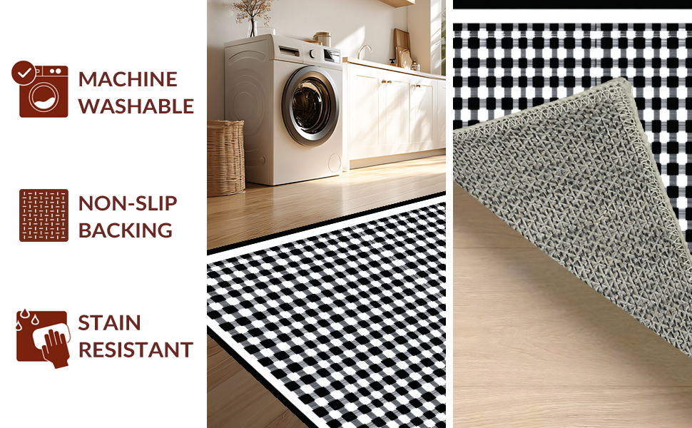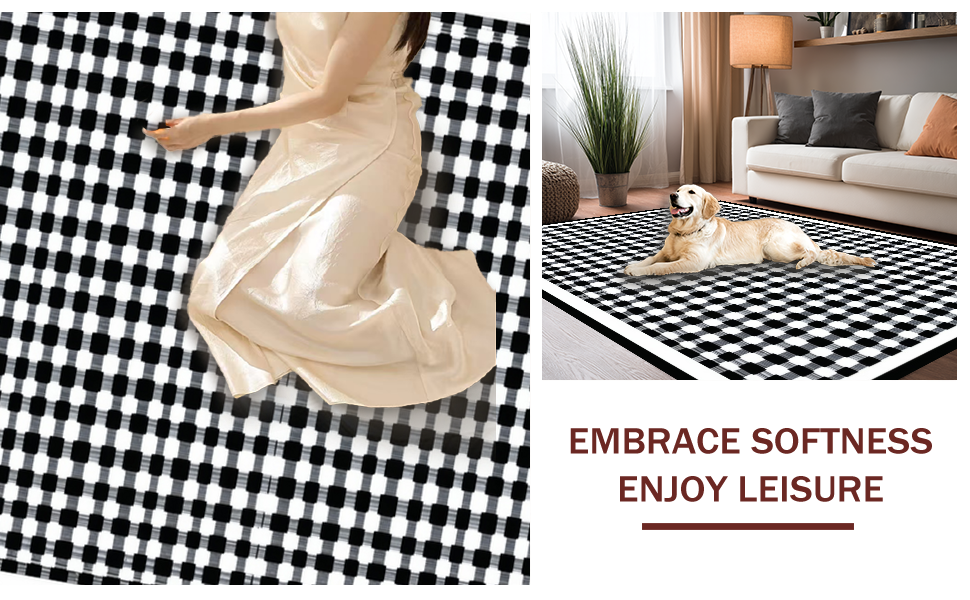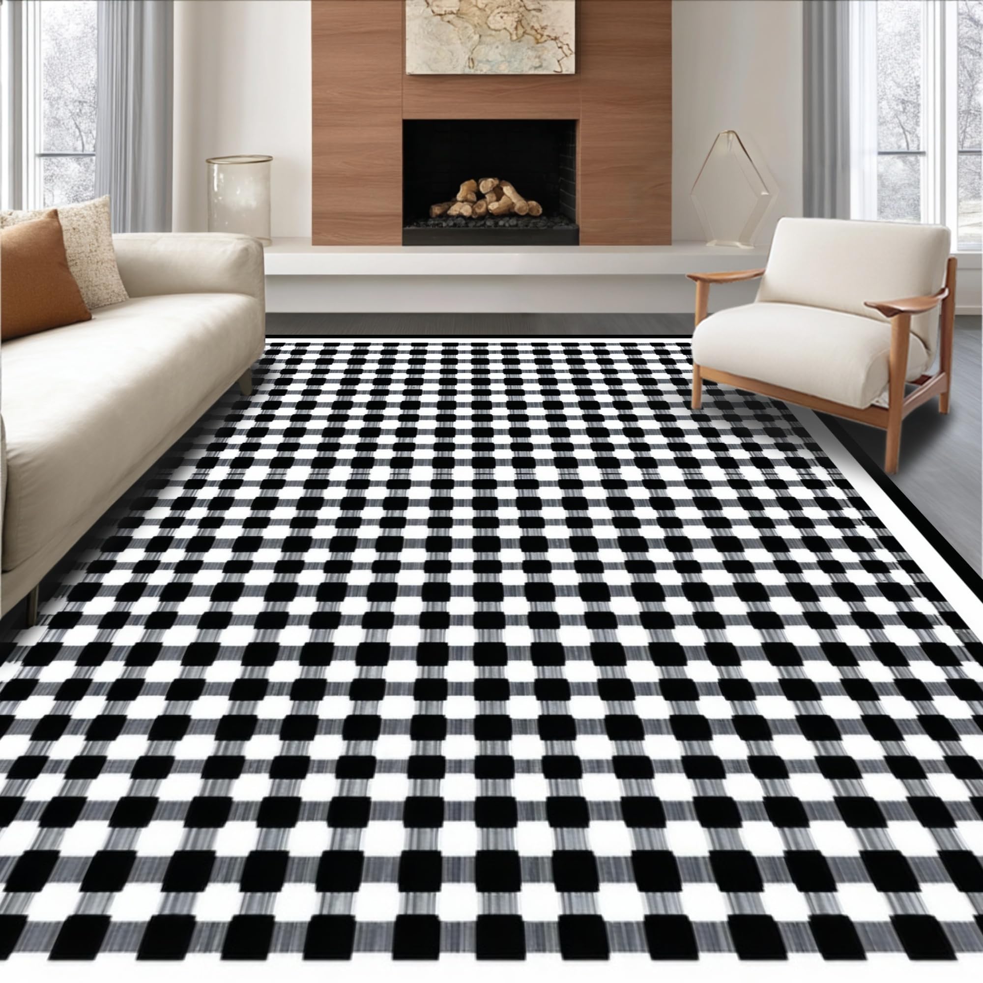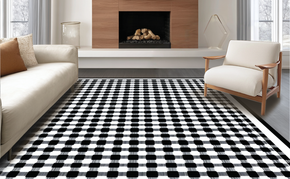 Ultra Soft Area Rug, Non Slip, Stain Resistant, Washable Area Rugs for Living Room, Bedroom, Chic Geometric Monochrome Design(Black) Overview: